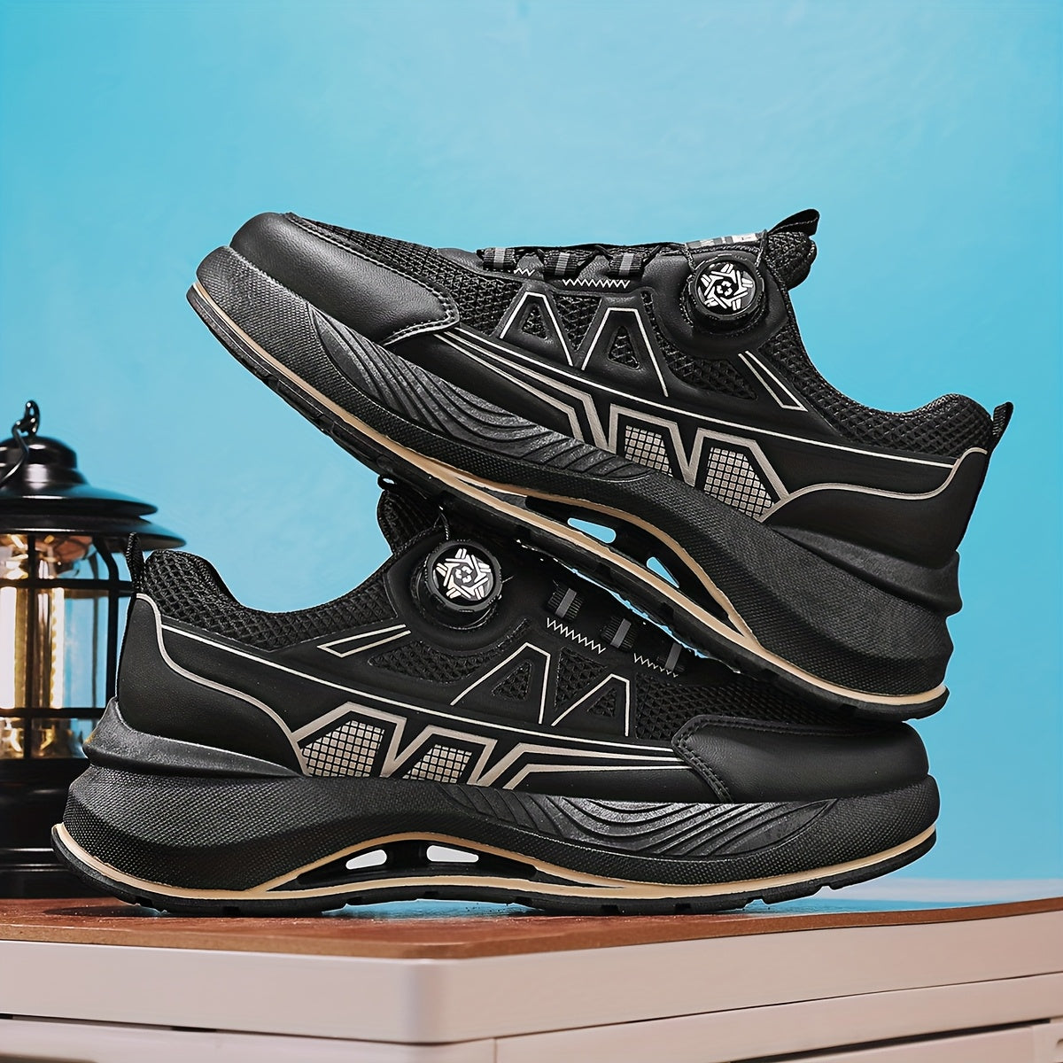 Men's 2025 New Casual Athletic Running Shoes - Thick-Sole Hiking Basketball Sneakers with Breathable PU/Fabric Upper, Durable PVC Outsole, Beige/Black Colorway for Outdoor, Streetwear Everyday Comfort, Round Toe Design