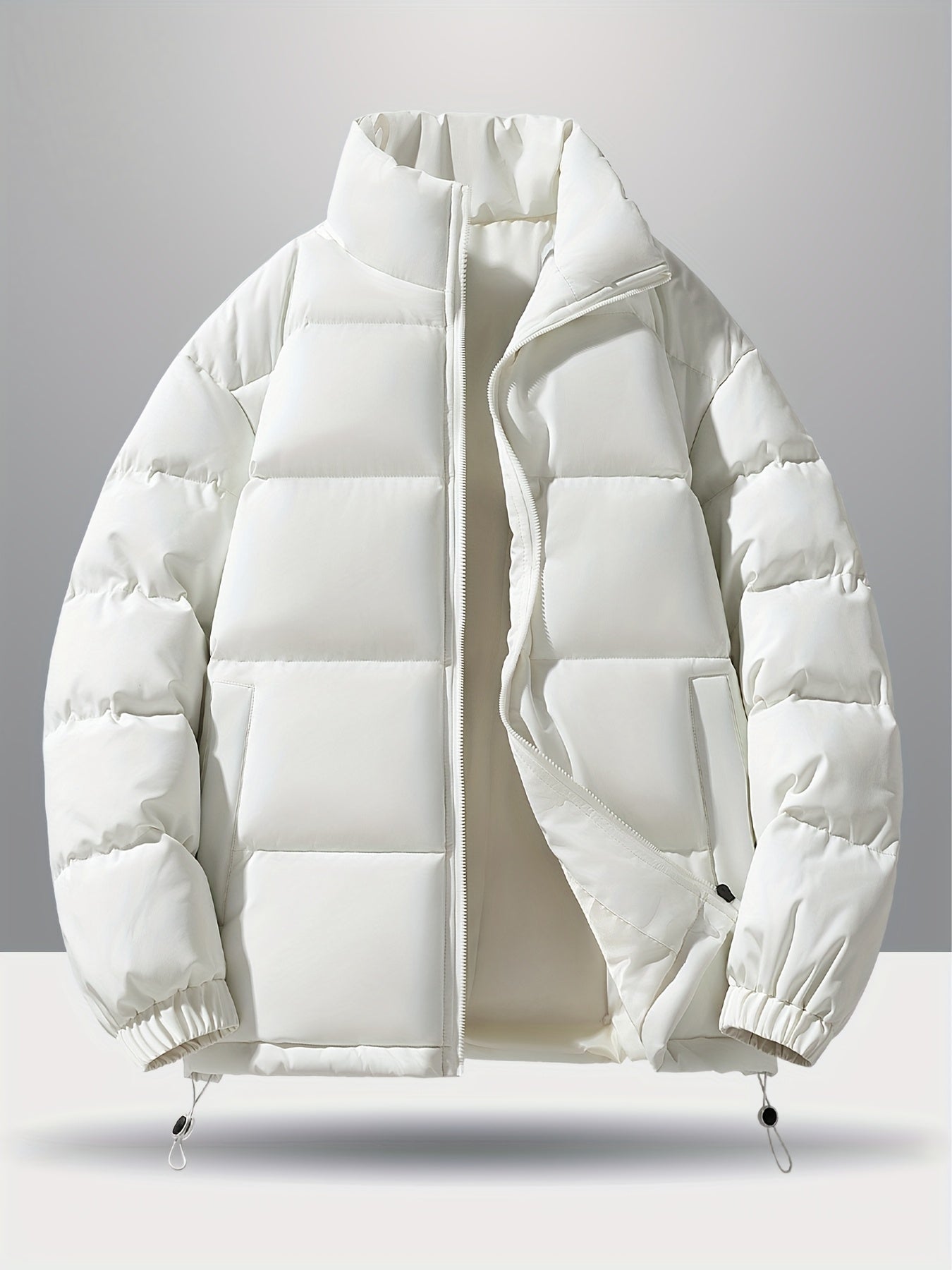 Men'S 2025 New Casual Jacket - Black, Stand Collar, Zip-Up, Long Sleeve, Polyester Filled, Winter Coat with Adjustable Drawstring Hood