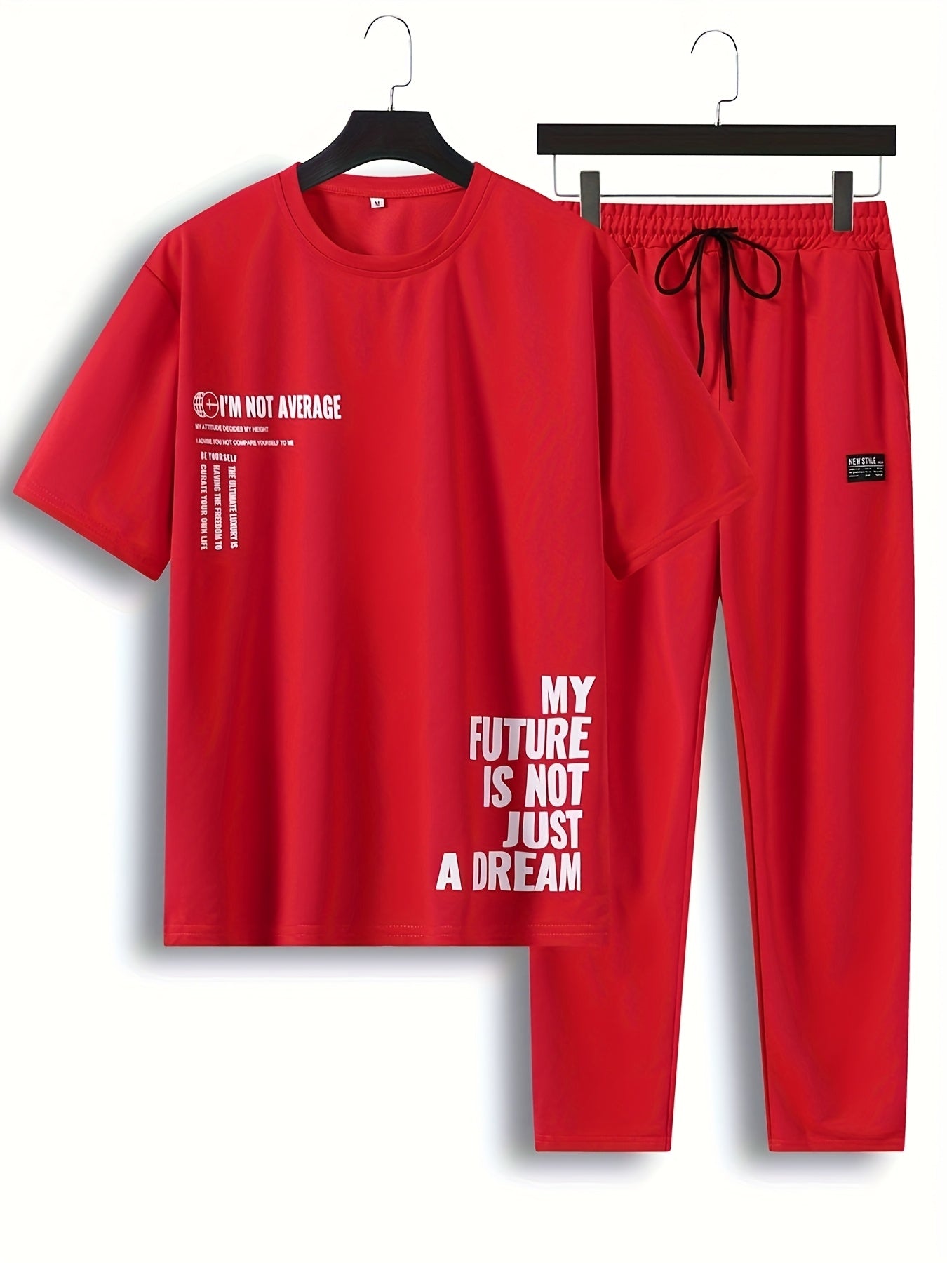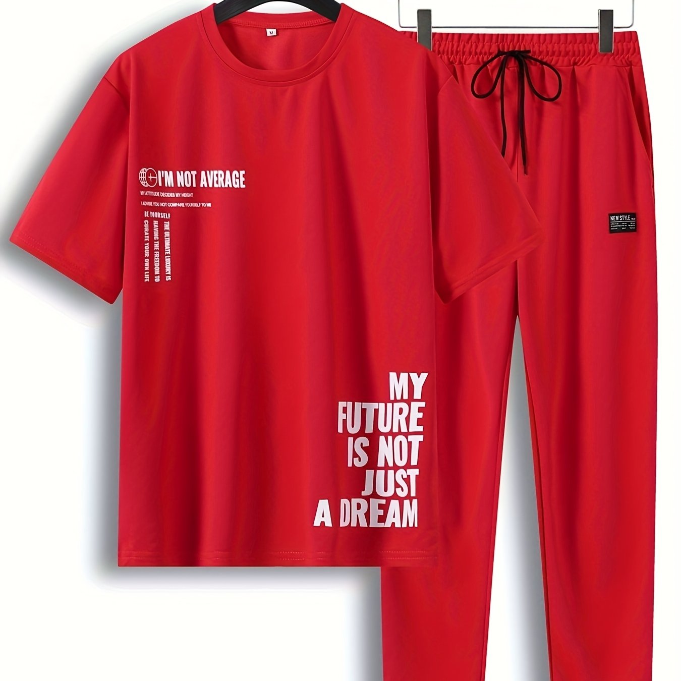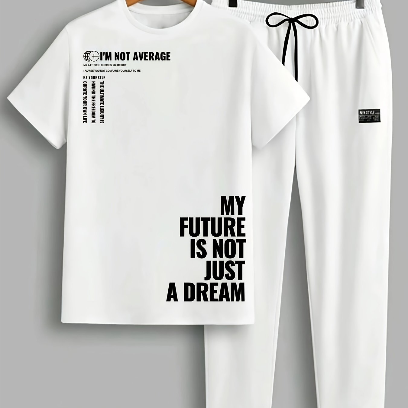 Men's 2pcs Summer MY FUTURE IS NOT JUST A DREAM Casual T-Shirt and Pants Set - Suitable for Casual Sports Outing - Starry OB