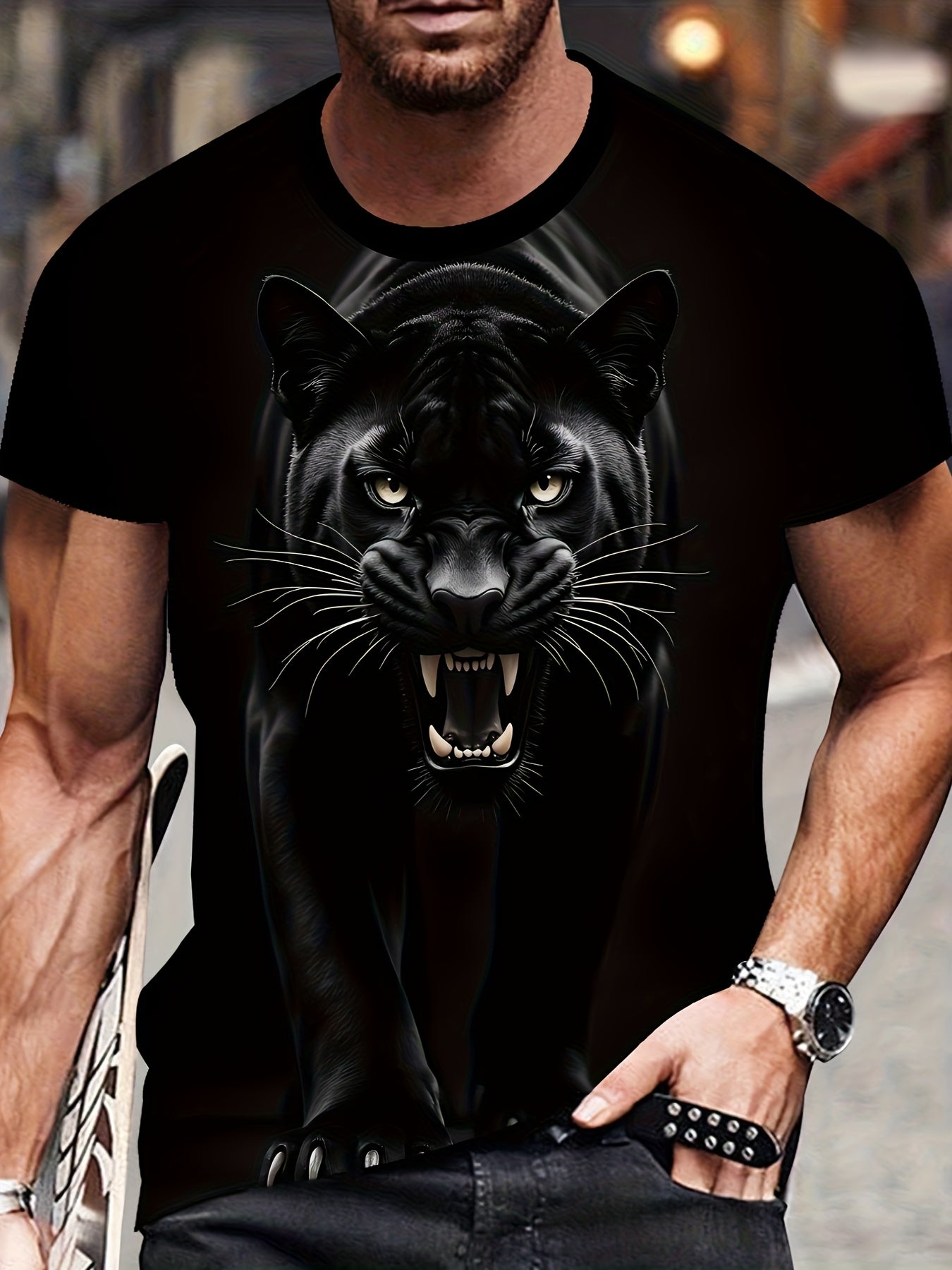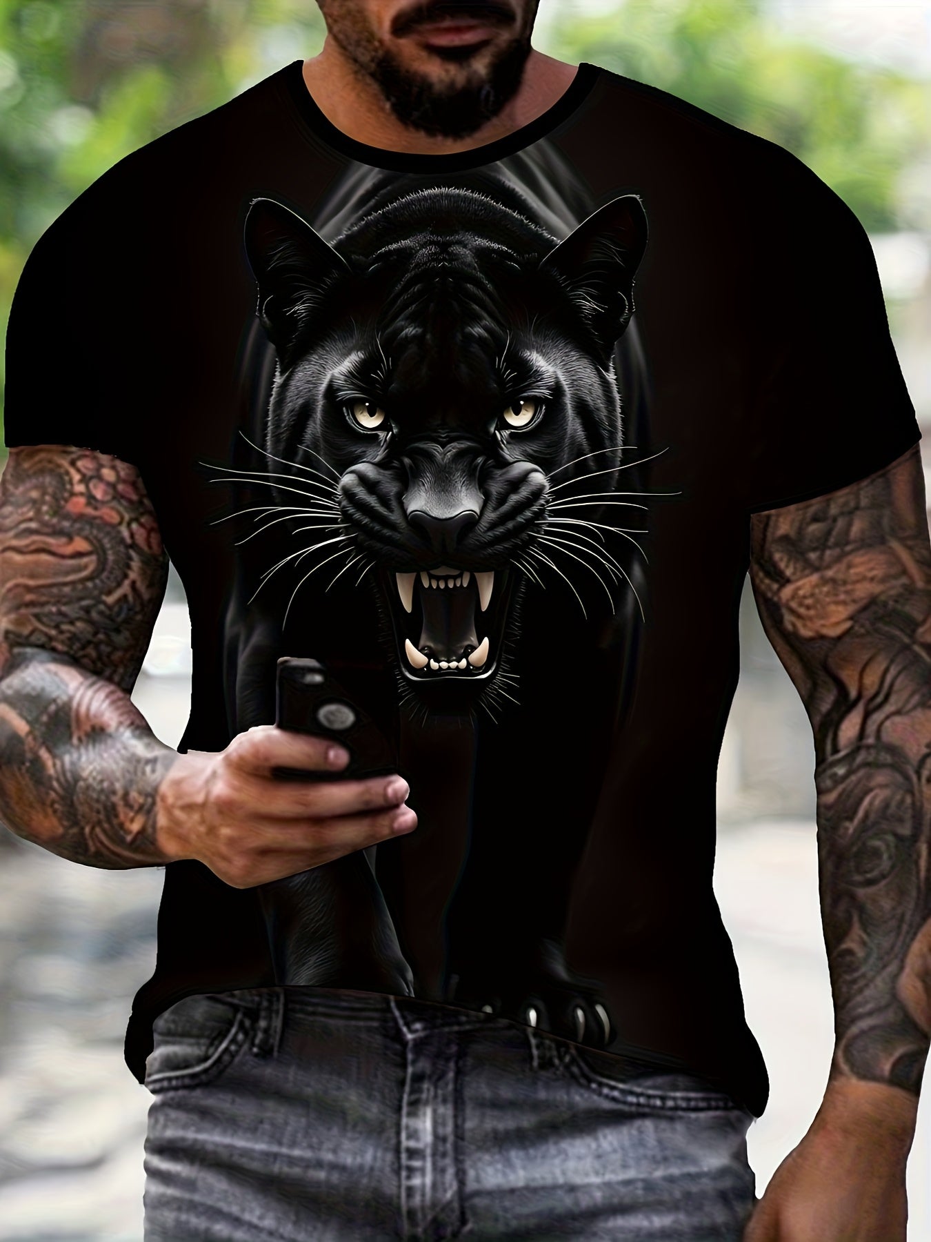 Men's 3D Animal Print T-Shirt, Black Leopard Pattern, New Fashion Trendy Casual Comfortable Tee, Stylish Short Sleeve Top for Summer Daily Wear