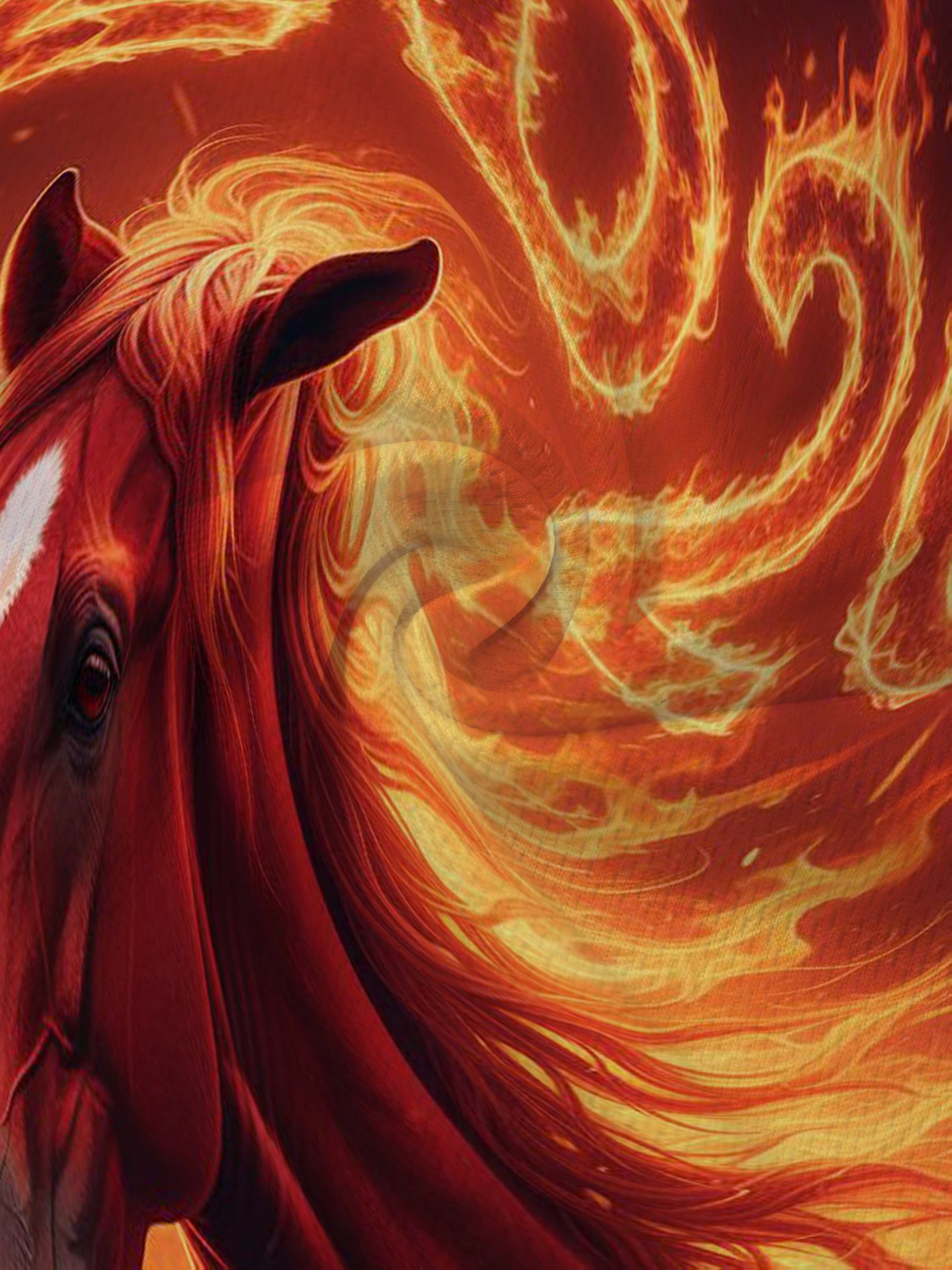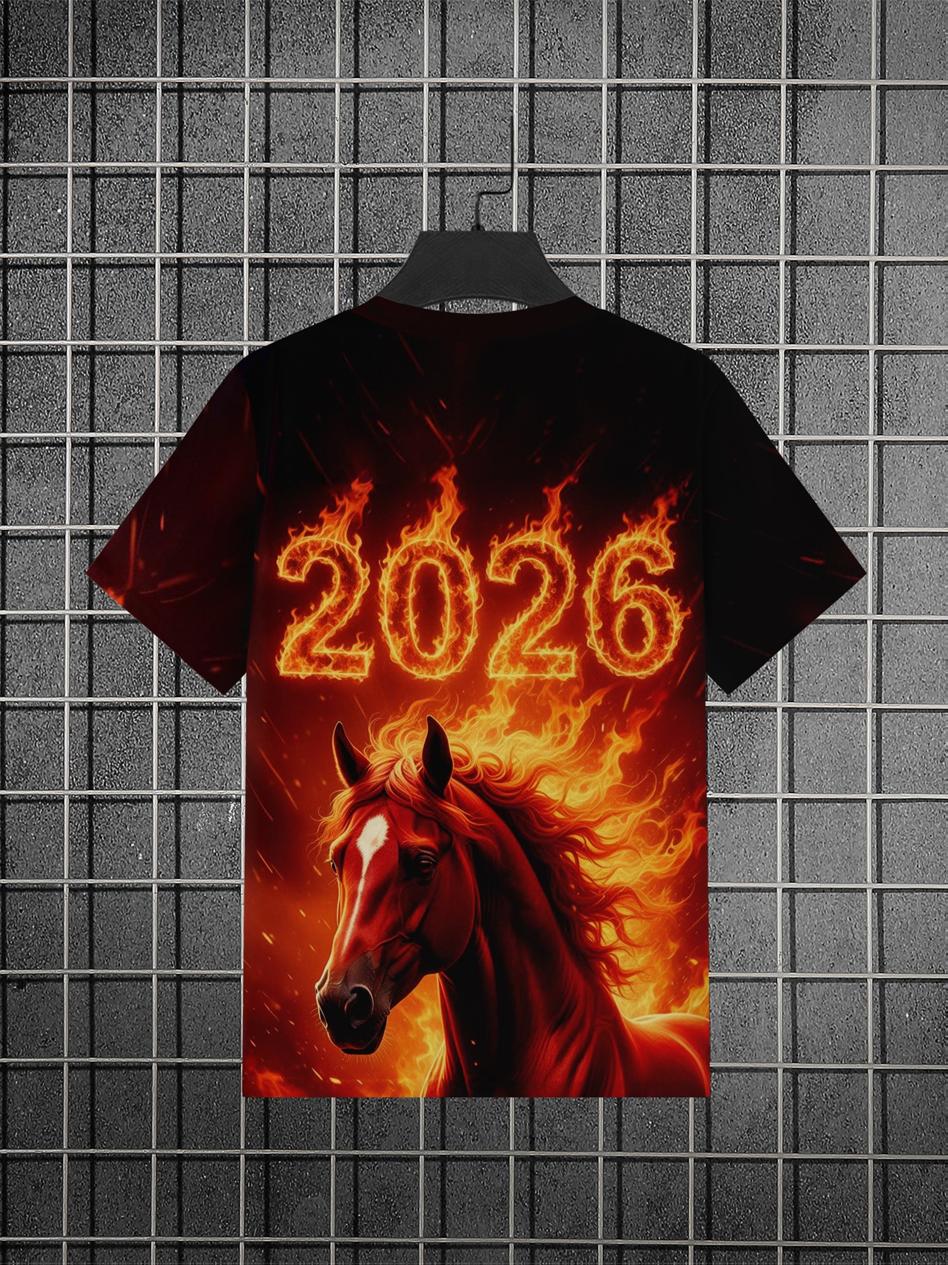 Men's 3D Horse & Flame Graphic T-Shirt with 2026 Number Design - Red & Black Casual Summer Tee, Regular Fit