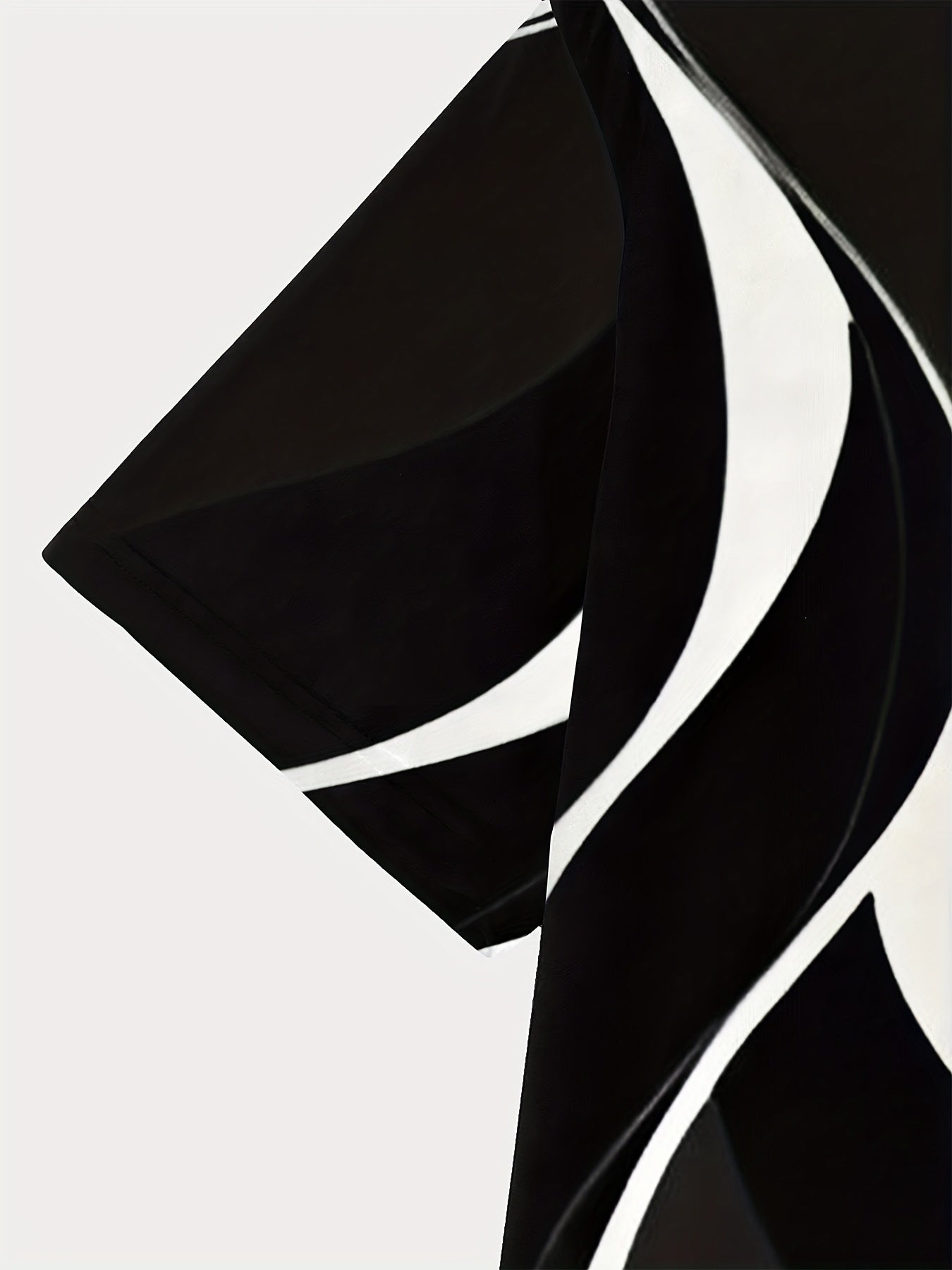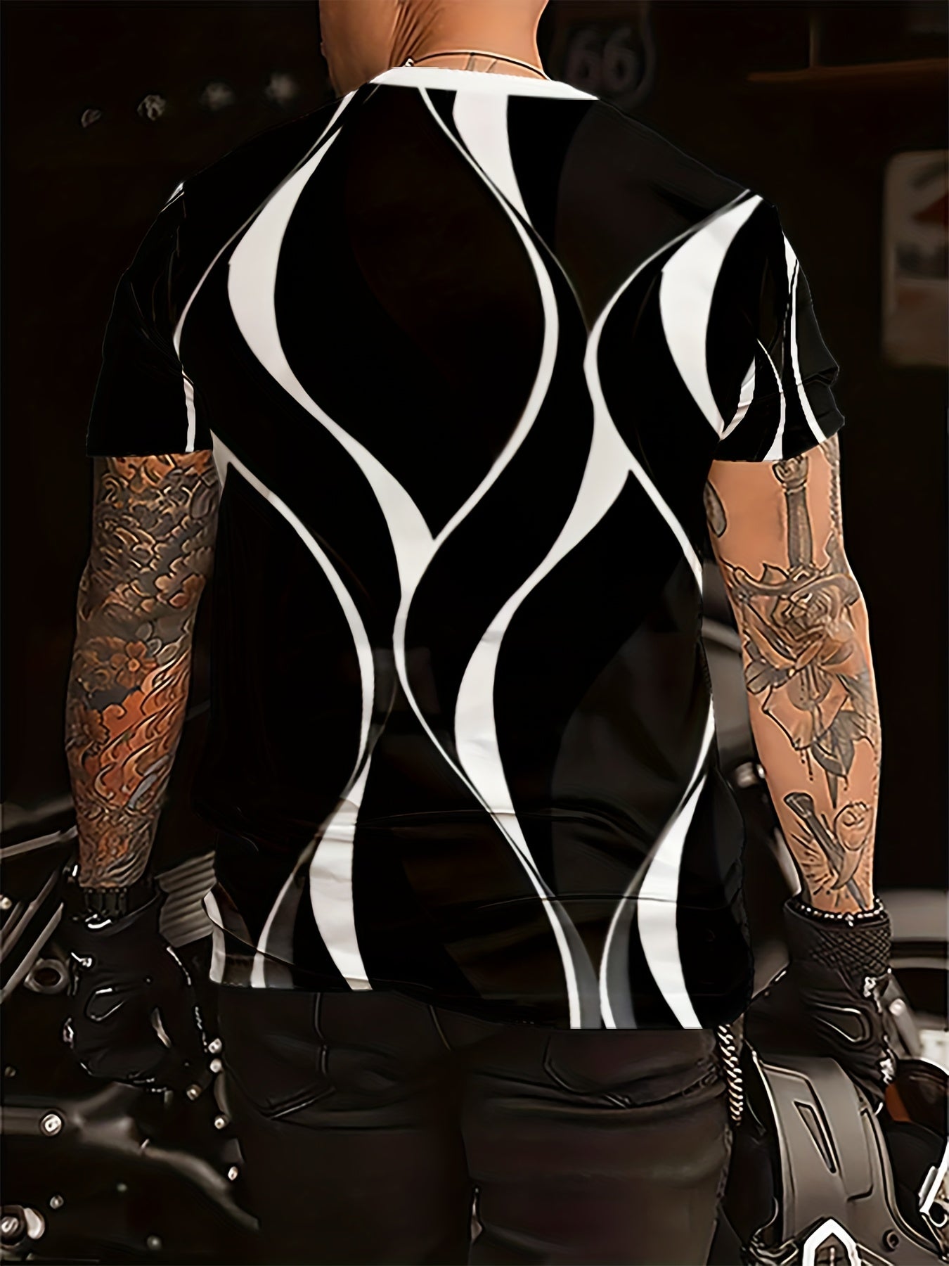 Men'S 3D Lightning Print T-Shirt, Casual Crew Neck Short Sleeve Tee, Summer Knit Polyester Blend Top, Slight Stretch, Black White Geometric Pattern, Regular Fit, Fashionable Tshirt Modern Casual Style Polyester Blend