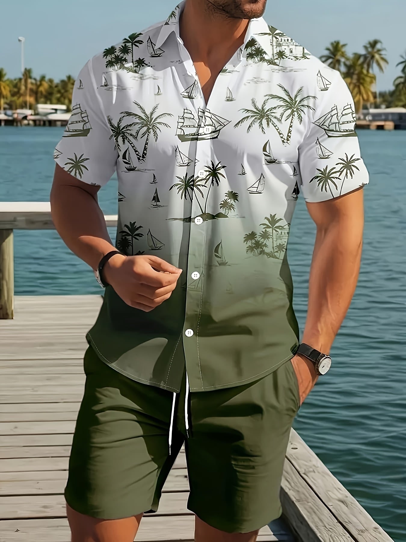 Men's 3D Printed Lapel Casual Shirt and Shorts Set