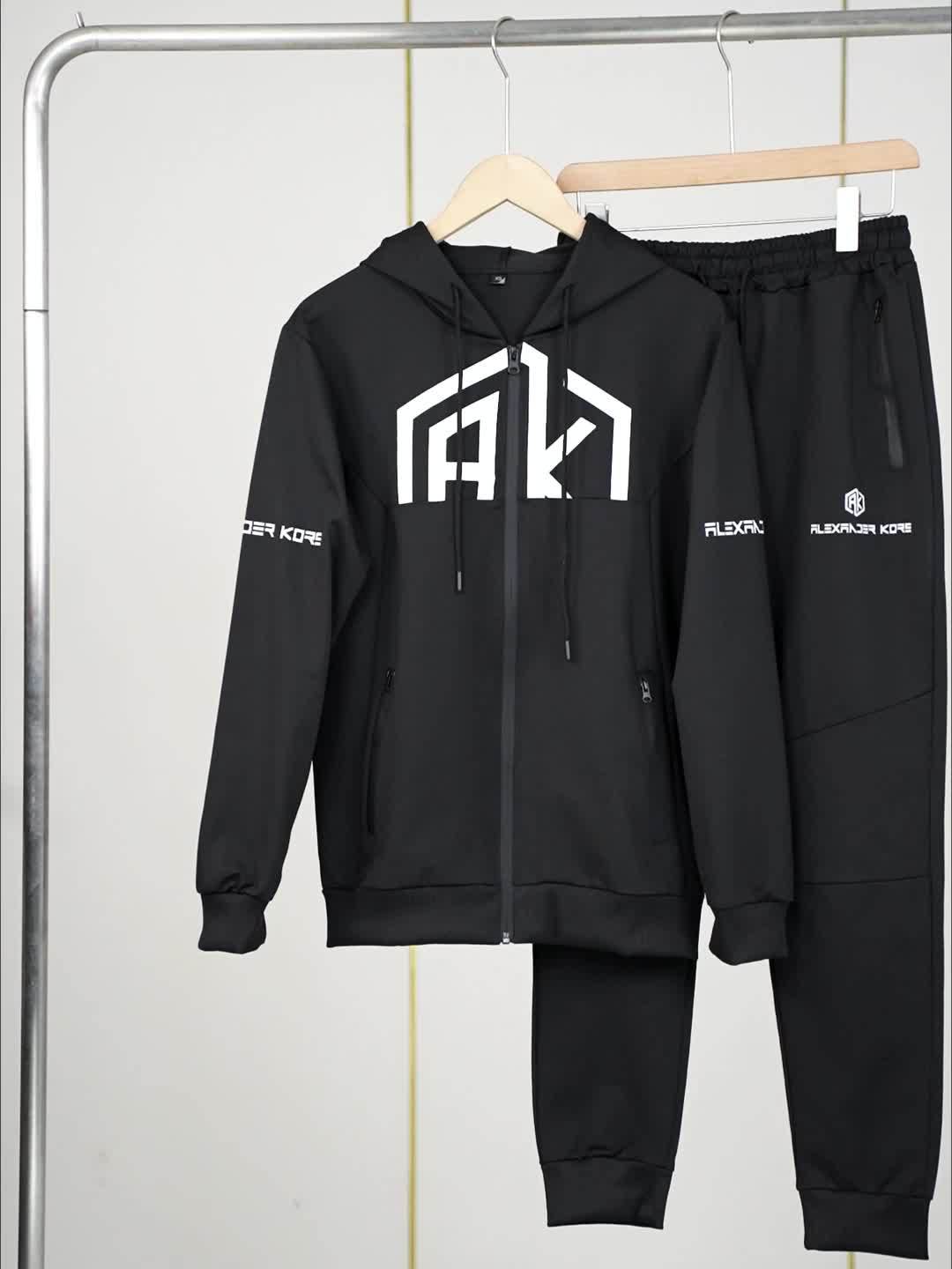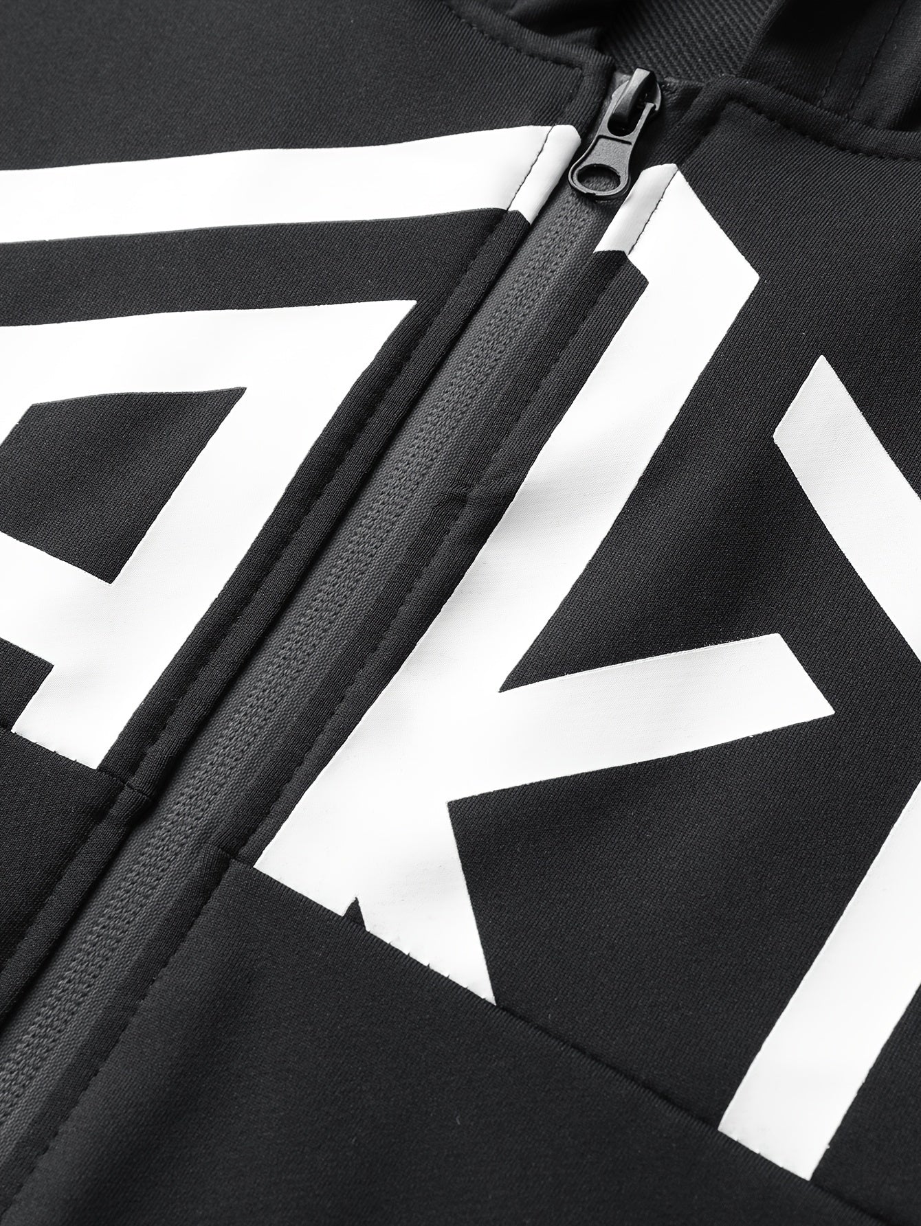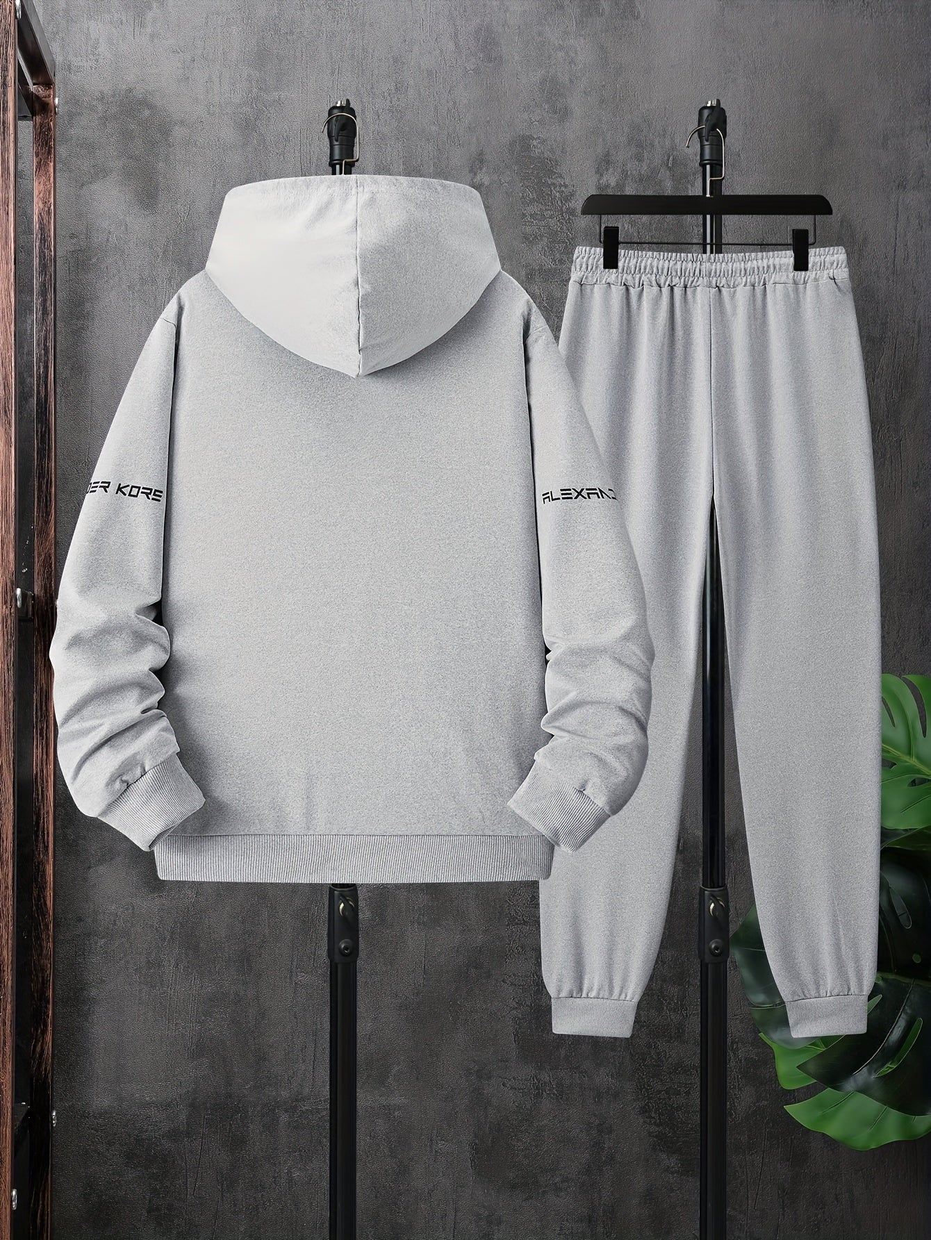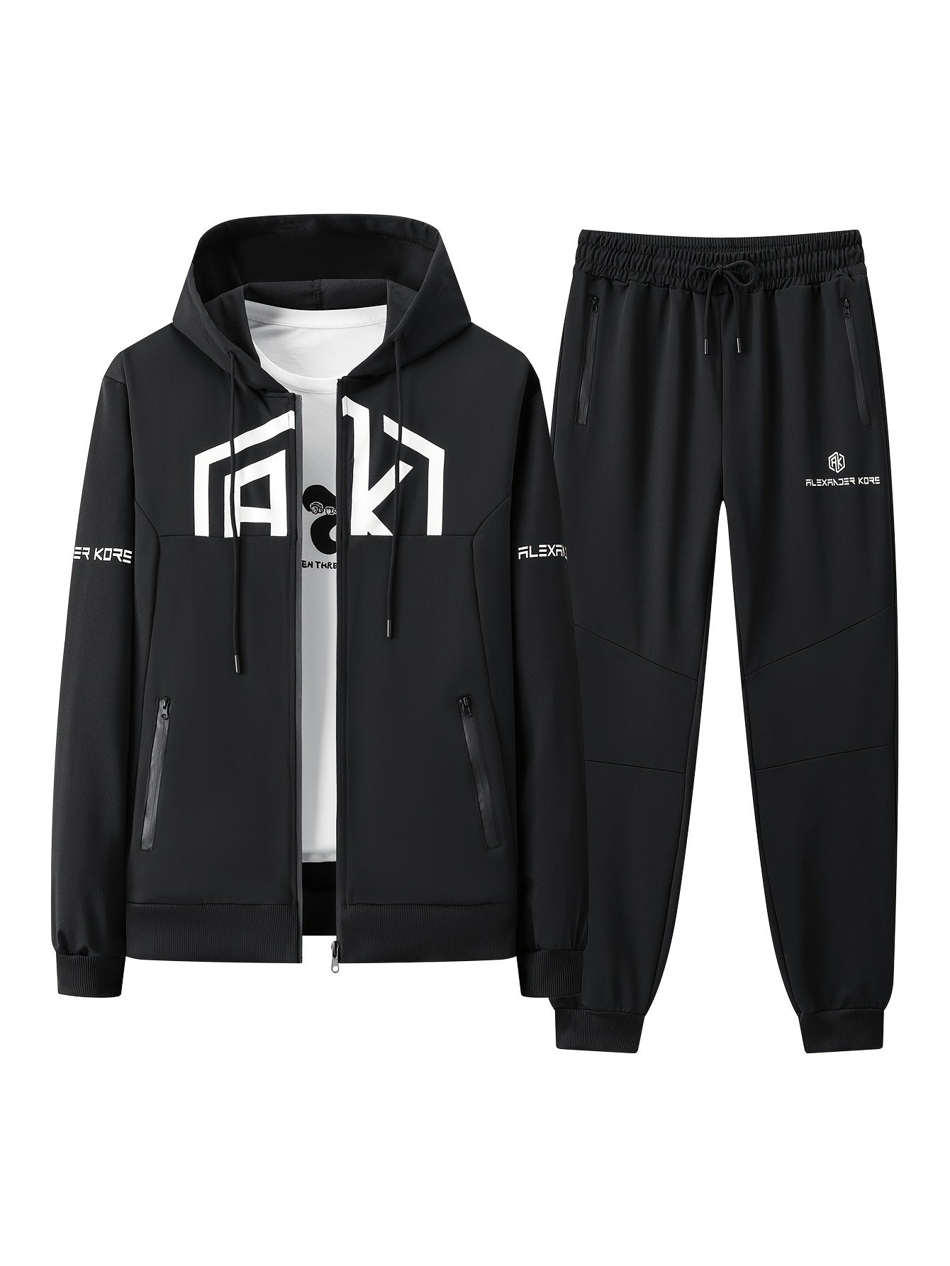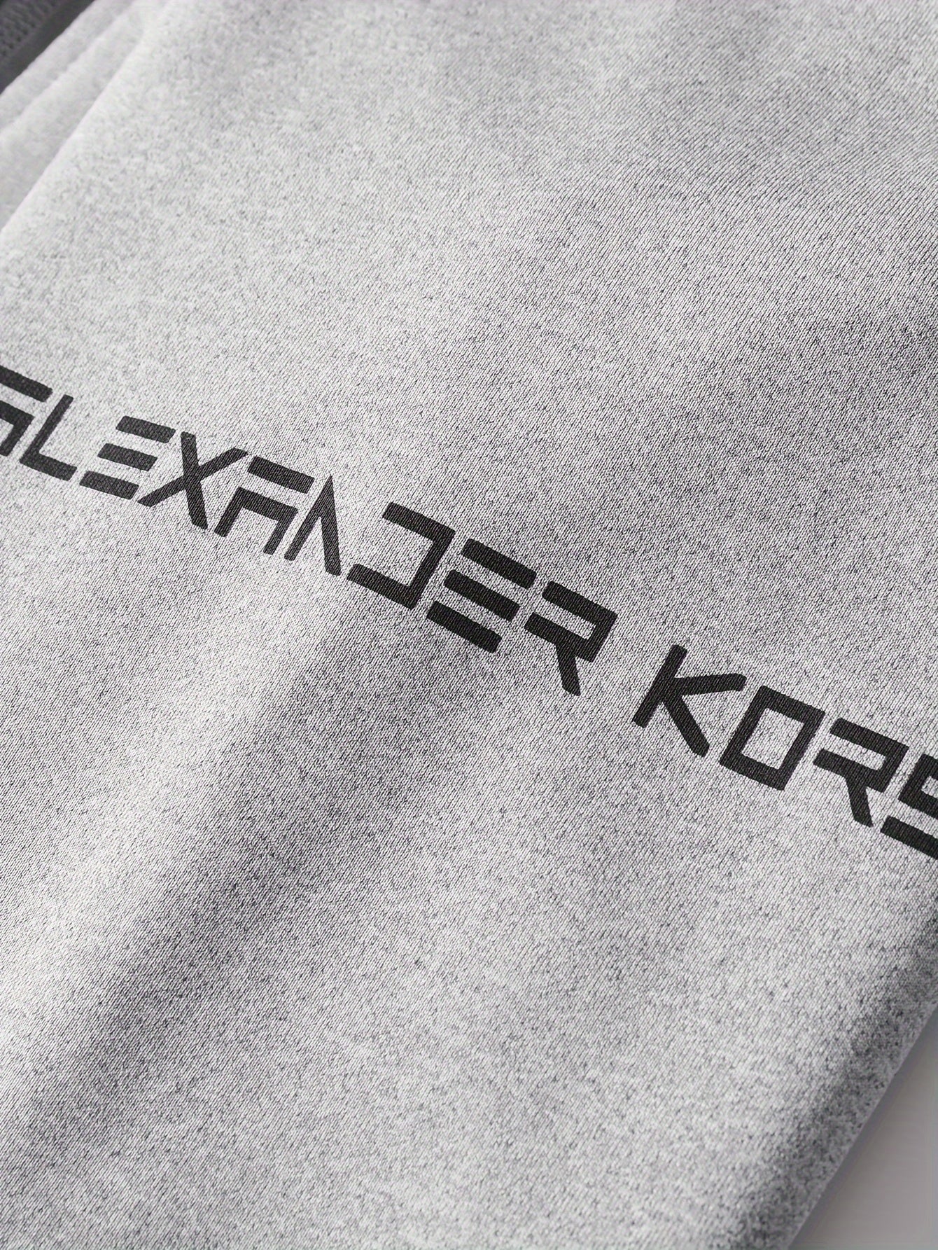 Men's AK Letter Print Long Sleeves Hoodies With Zipper Detail & Long Pants Two-piece Set, Slight Stretch Comfortable Clothing For Spring And Autumn