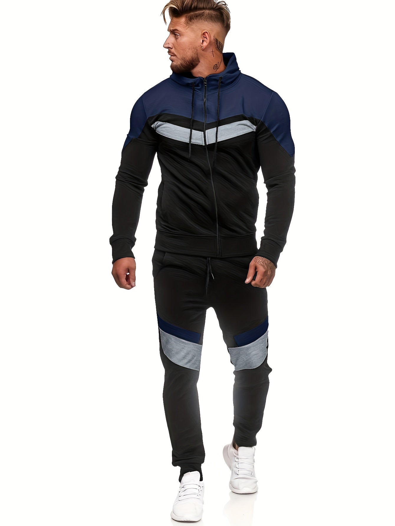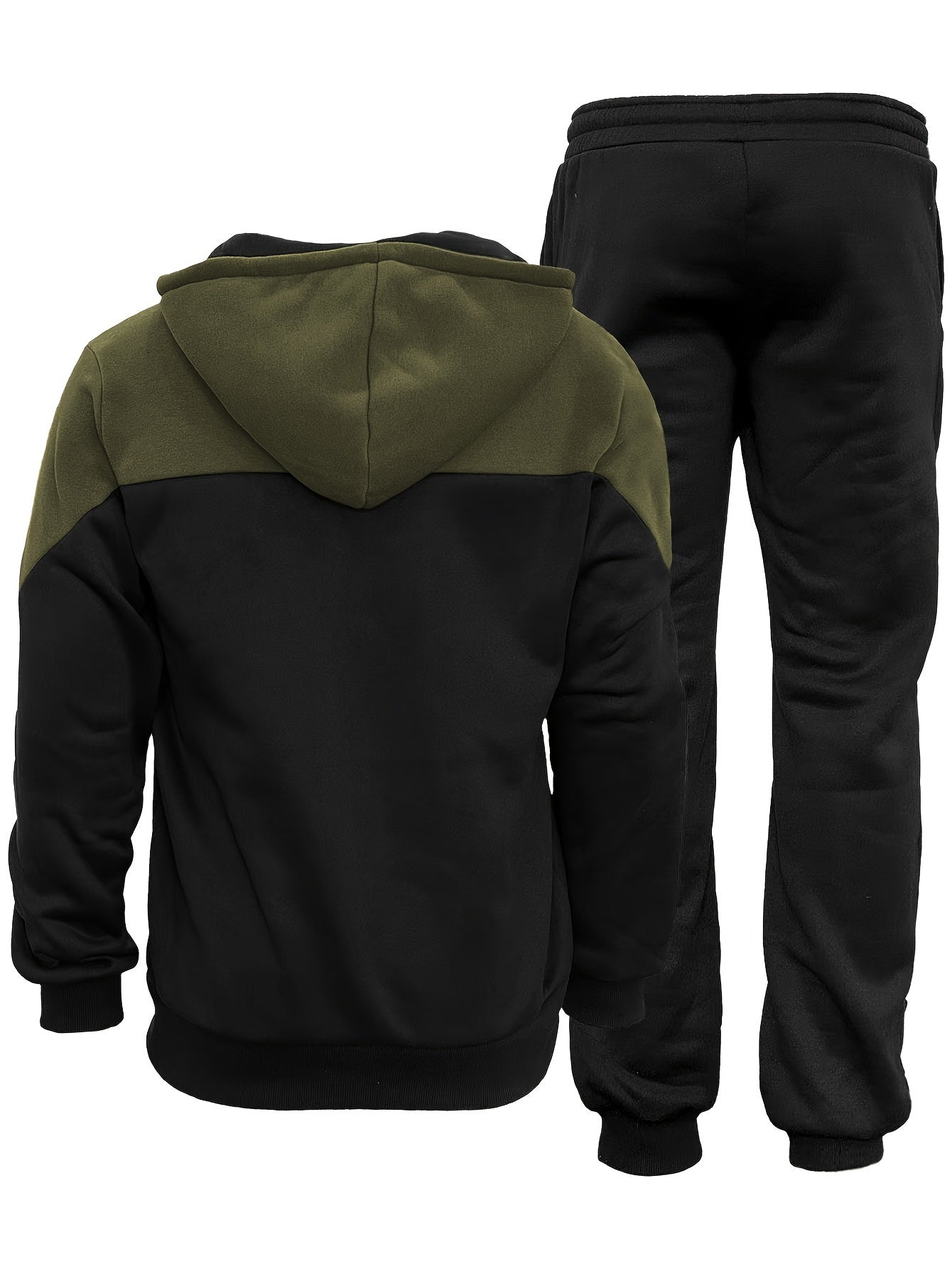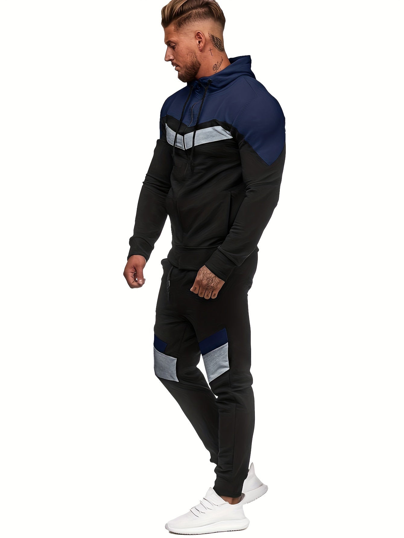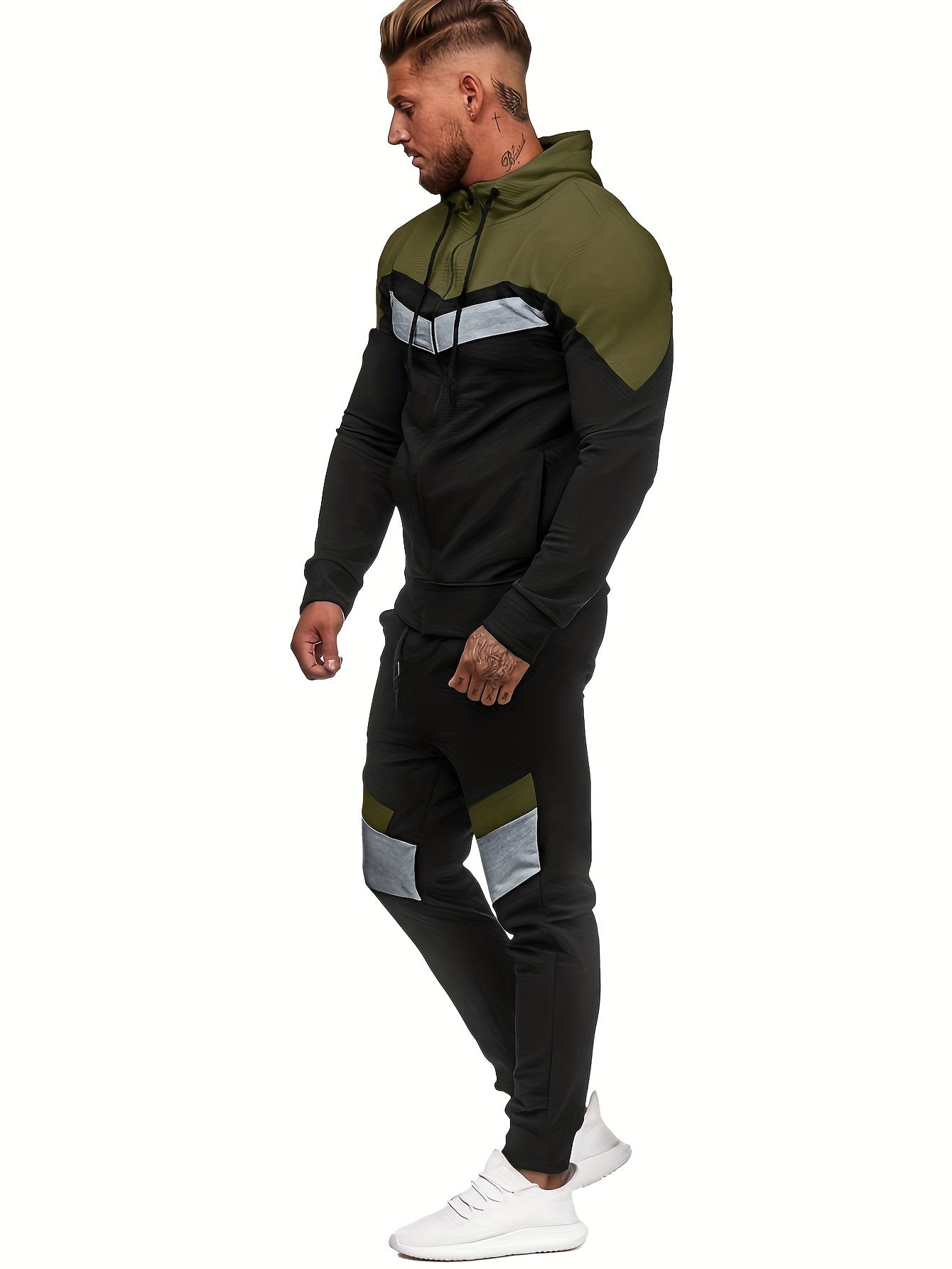 Men'S Autumn and Winter Fleece Sweatshirt Set with Hooded Drawstring Patchwork Sweatpants Casual Sporty Style Long Sleeve Jacket