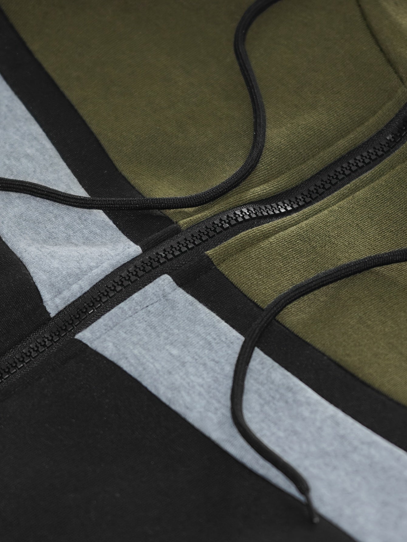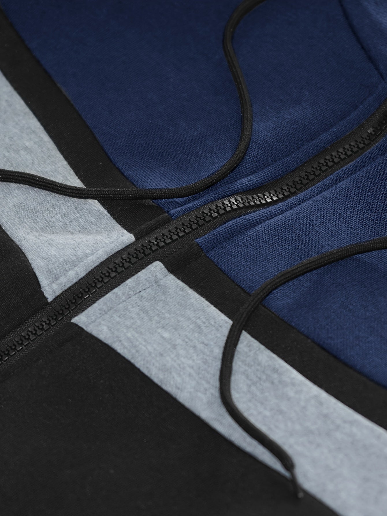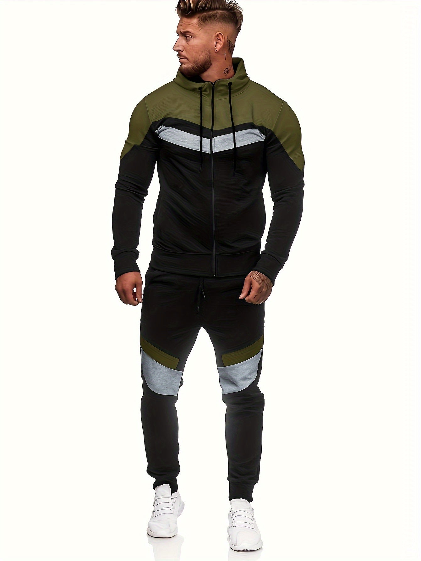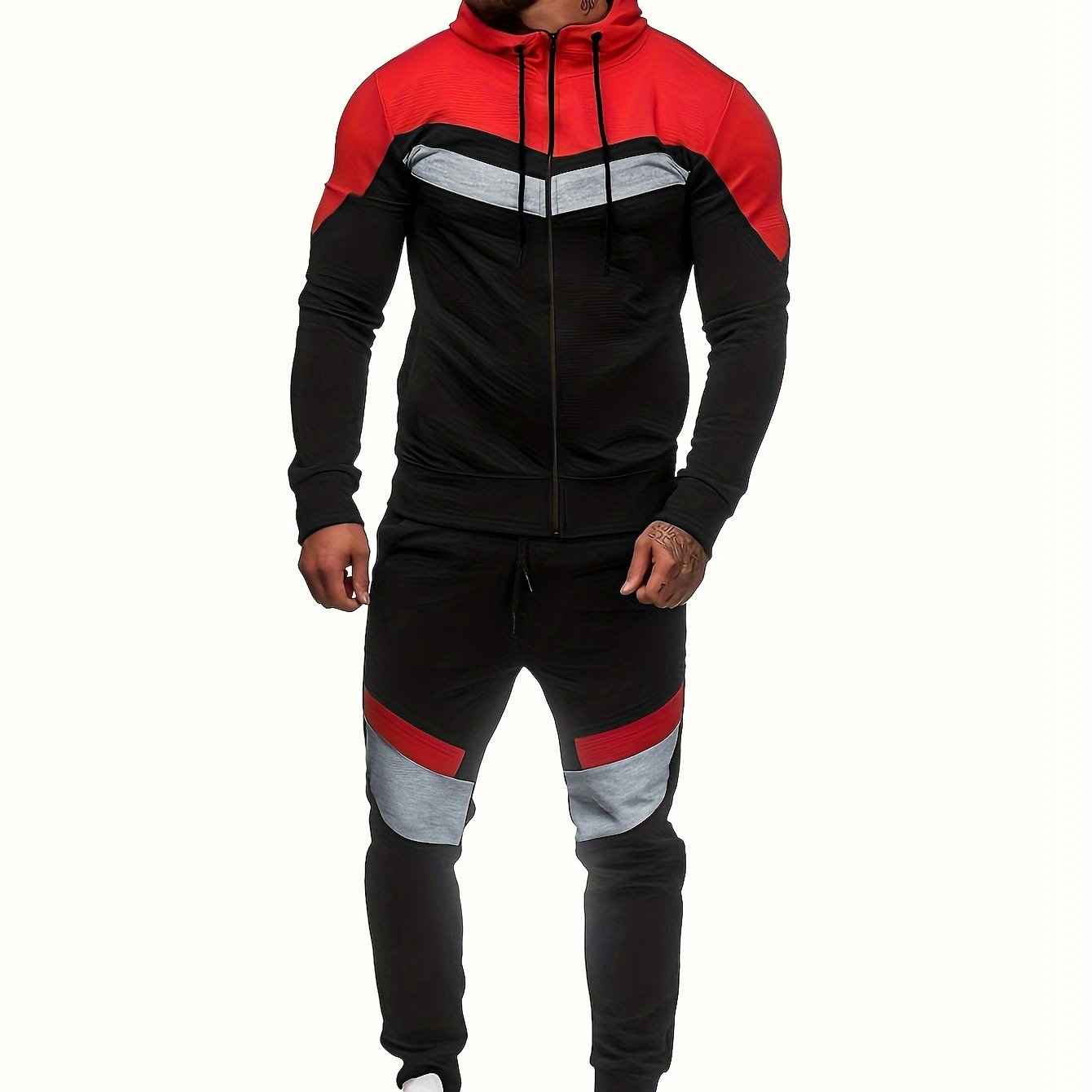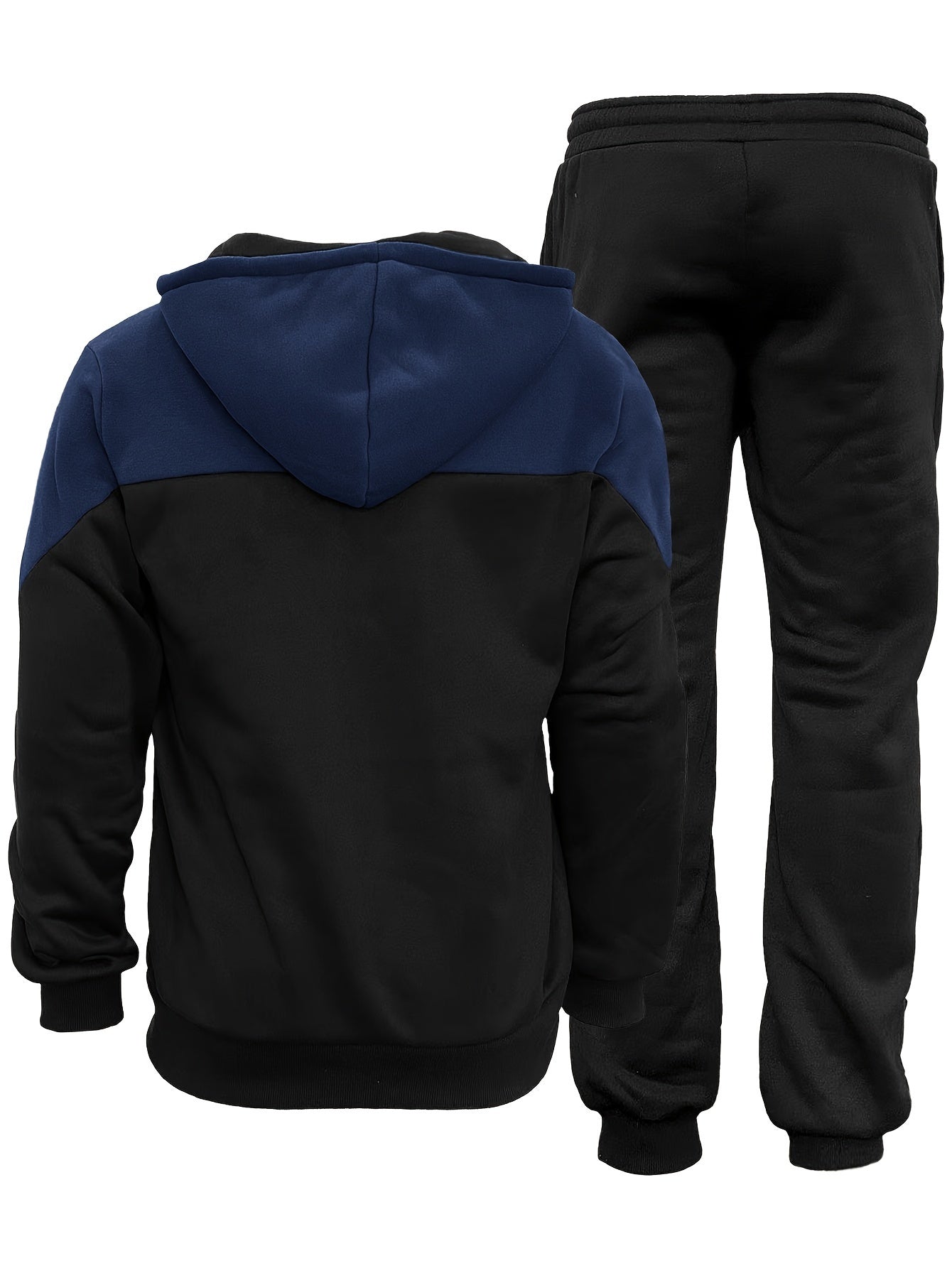 Men'S Autumn and Winter Fleece Sweatshirt Set with Hooded Drawstring Patchwork Sweatpants Casual Sporty Style Long Sleeve Jacket