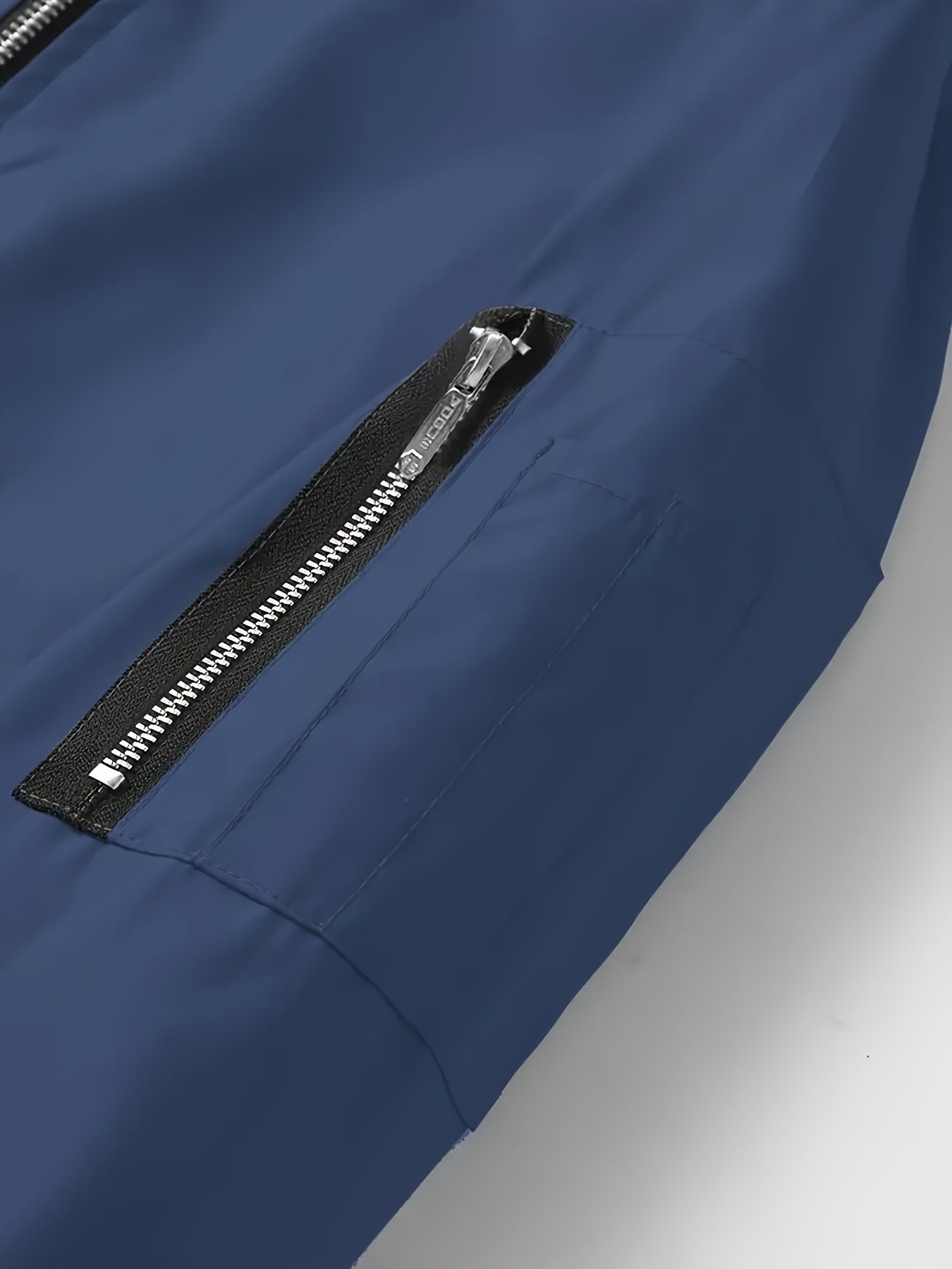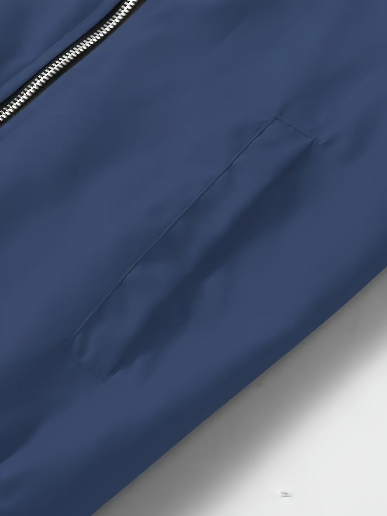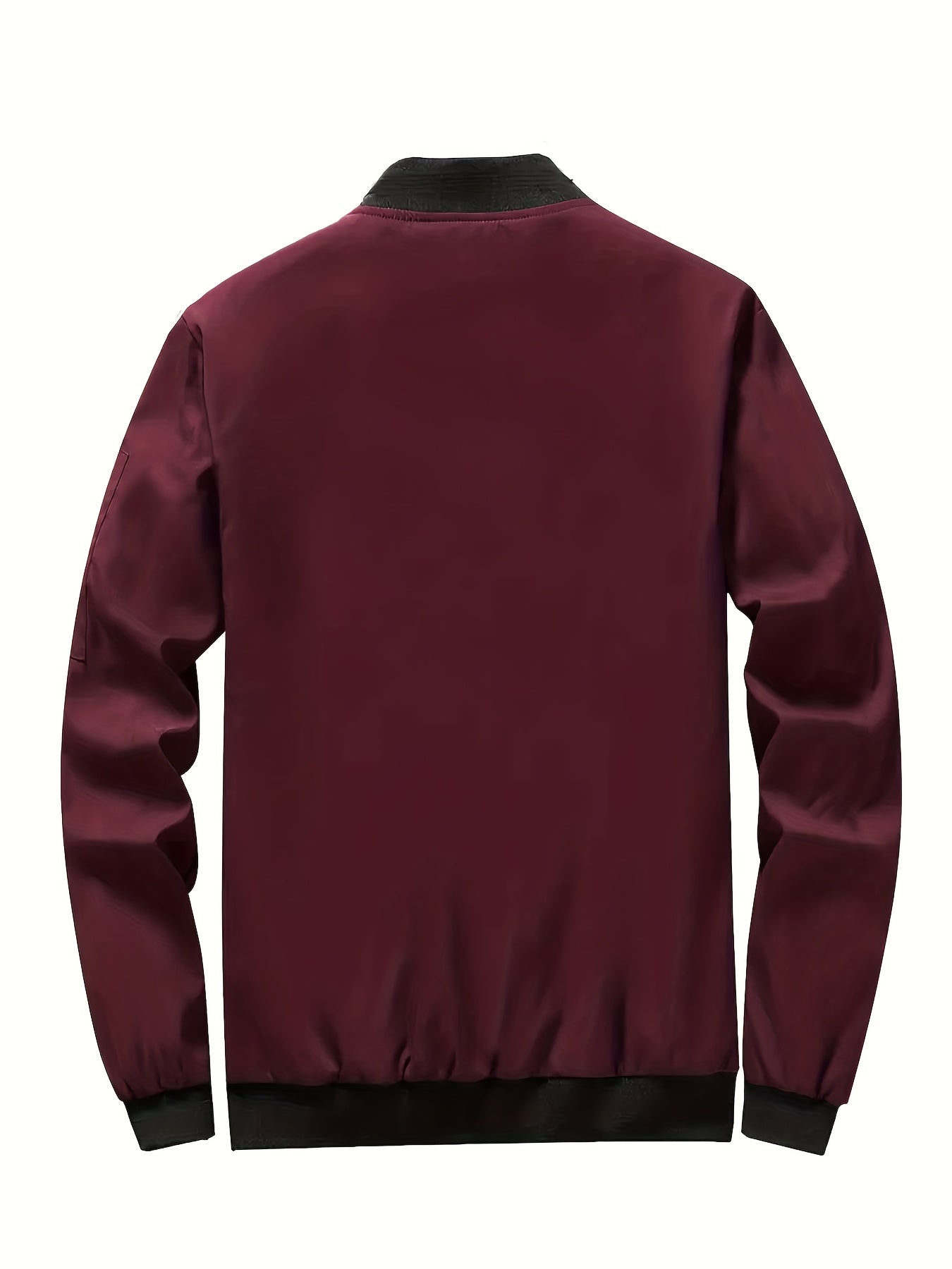 Men's Baseball Jacket - All-Season Zip-Up Coat with Zippered Pockets, Machine Washable Outerwear for Casual & Formal Events - Navy Jacket, Sleek Appearance