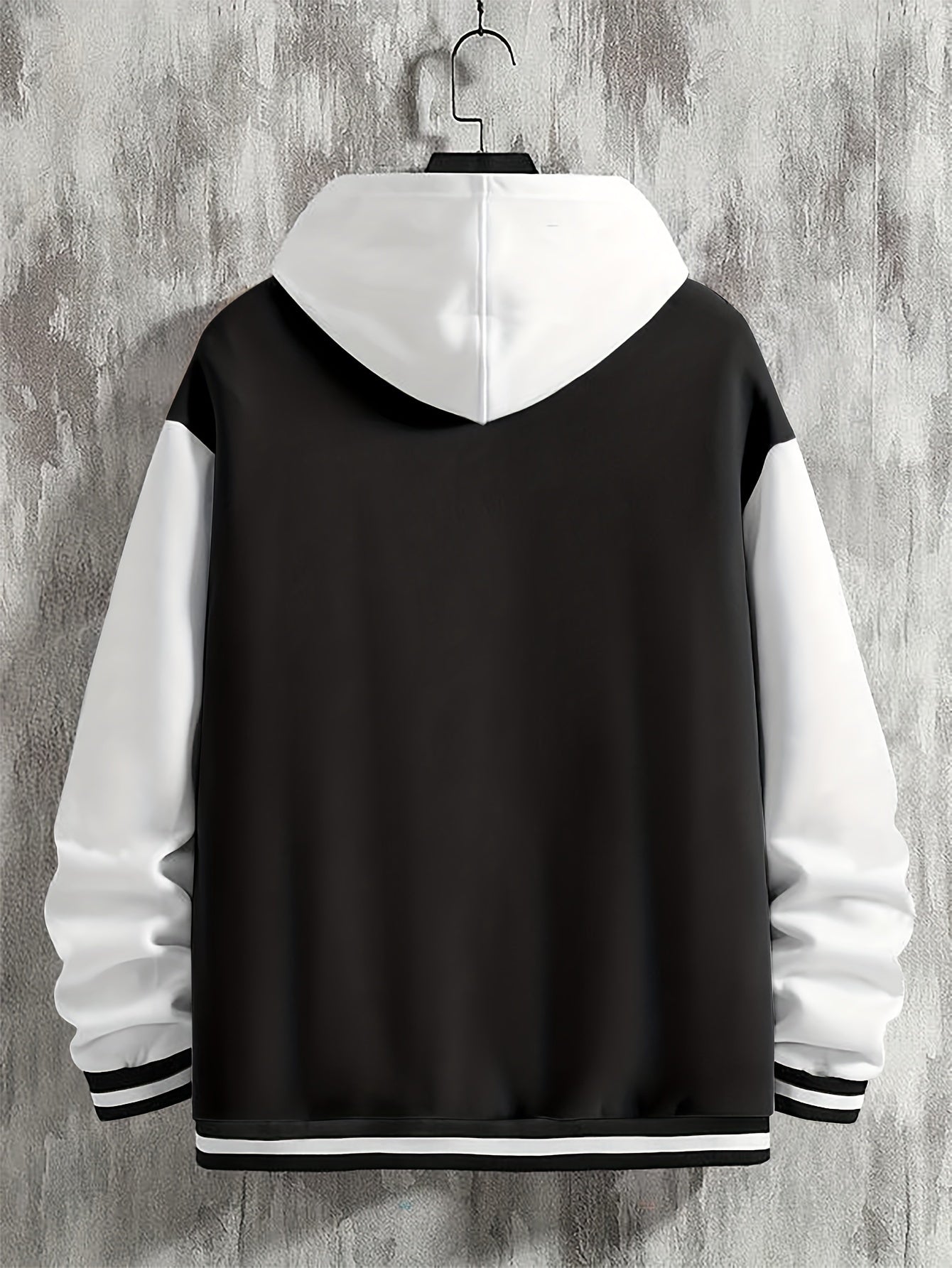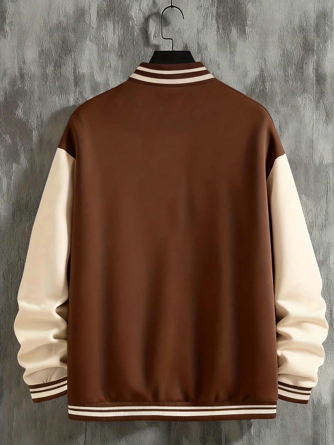 Men'S Baseball Jacket with Letter B Lettering - Navy & Golden Accent Casual Streetwear, Button-Front Closure, Regular Fit Fall/Winter Outerwear, Baseball Jacket