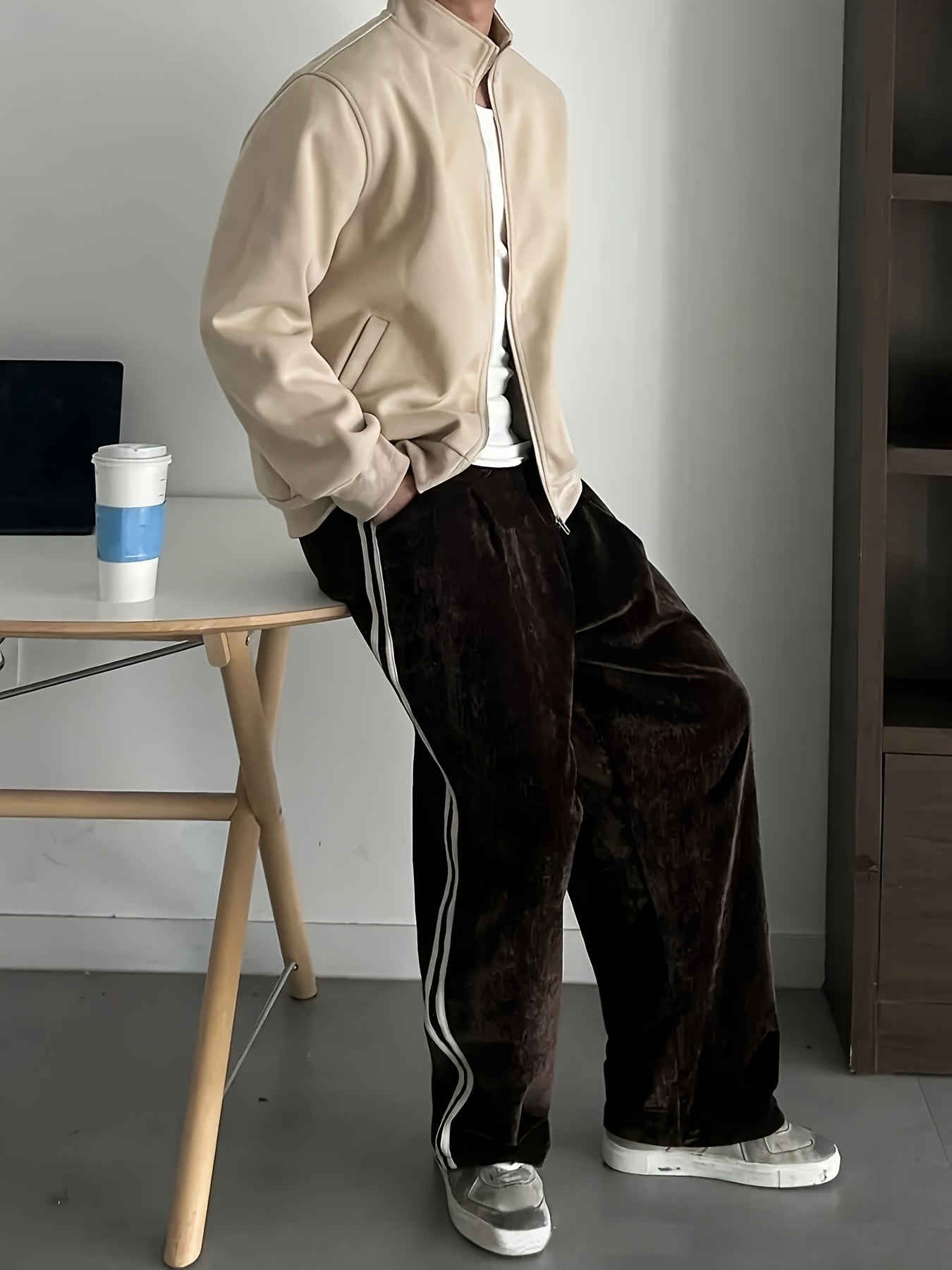 Men's Beige Jacket - Lightweight Warm Coat with Zippered Pockets, Beige Casual Outerwear for Everyday & Formal Events, Spring/Fall Layering Essential - Ideal Gift for Him, Seasonal Fashion, Sleek Silhouette, Comfortable Fit,