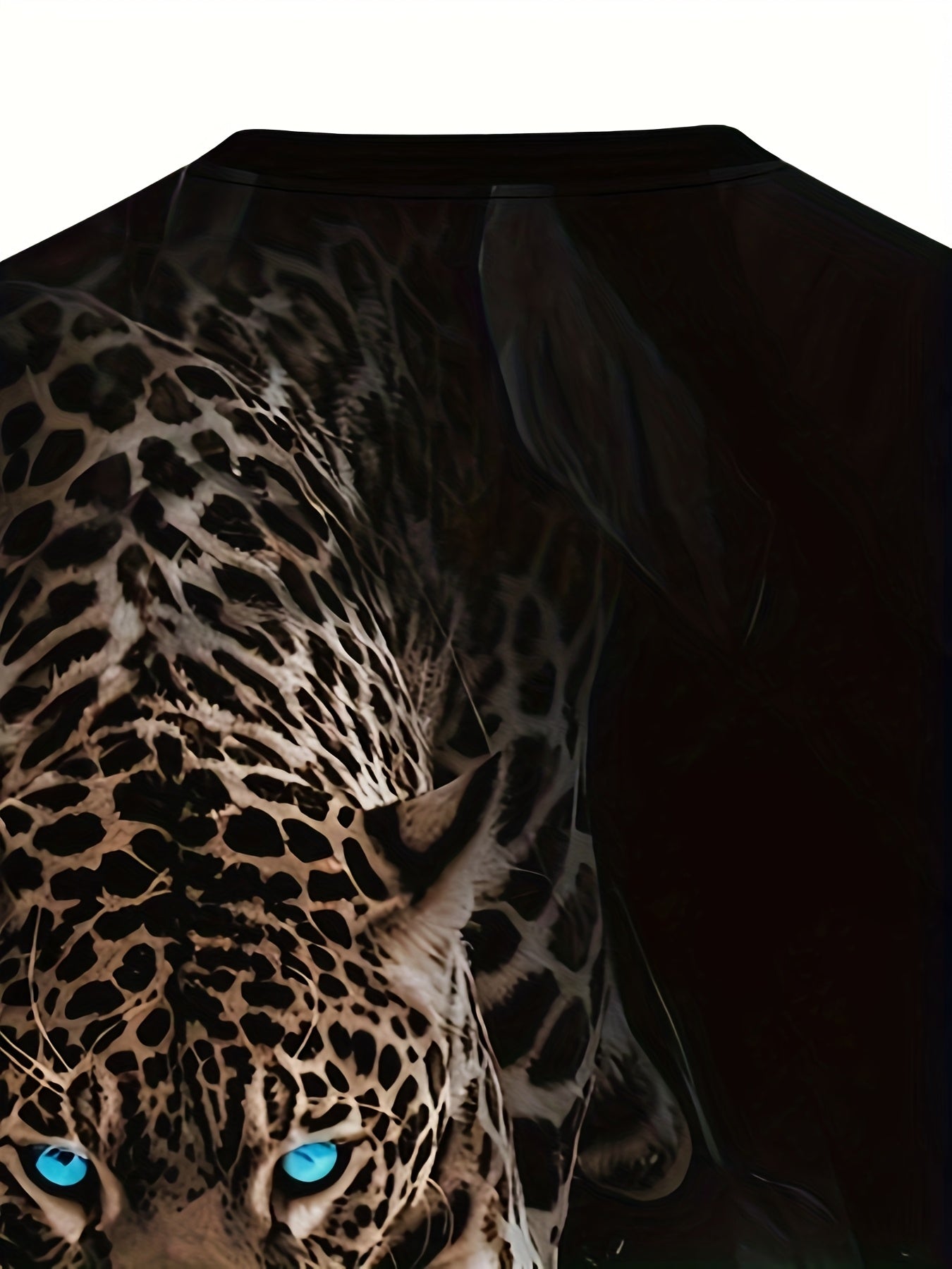 Men's Black T-Shirt with Bold Leopard Face Graphic - Short Sleeve Round Neck Casual Shirt, Lightweight Summer Top for Gym, Everyday Formal Outfits - Machine Washable Bold Animal Print Tee, Comfortable Fit