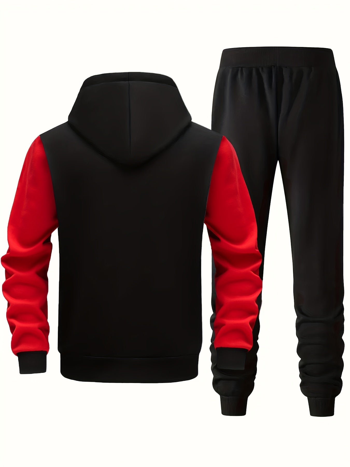 Men'S Bold Print Urban Streetwear Pullover Hoodie & Pants Set - Black & Red with "Saint" Design, Polyester, Long Sleeve, Regular Fit, Spring/Fall Casual Wear, Casual Streetwear Outfit|Bold Print Hoodie|Stretchy Fabric