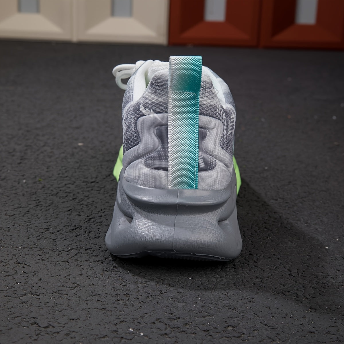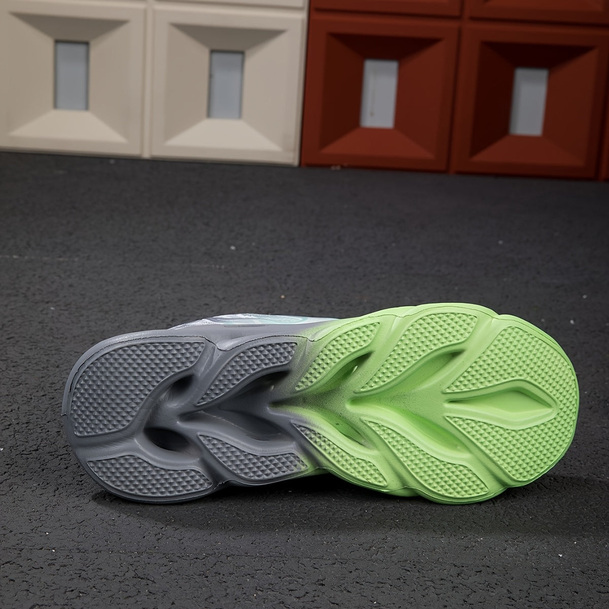 Men's Breathable Athletic Sneakers - Non-Slip, Stylish Black White Gradient Geometric Design, Comfortable Casual Shoes with Elastic Sole for Casual Attire