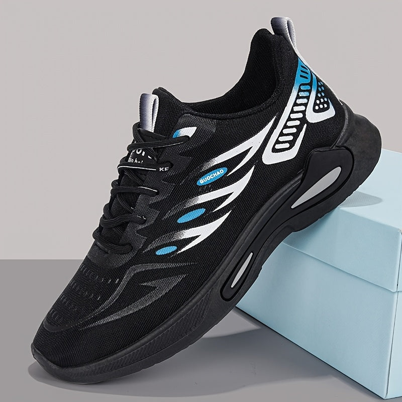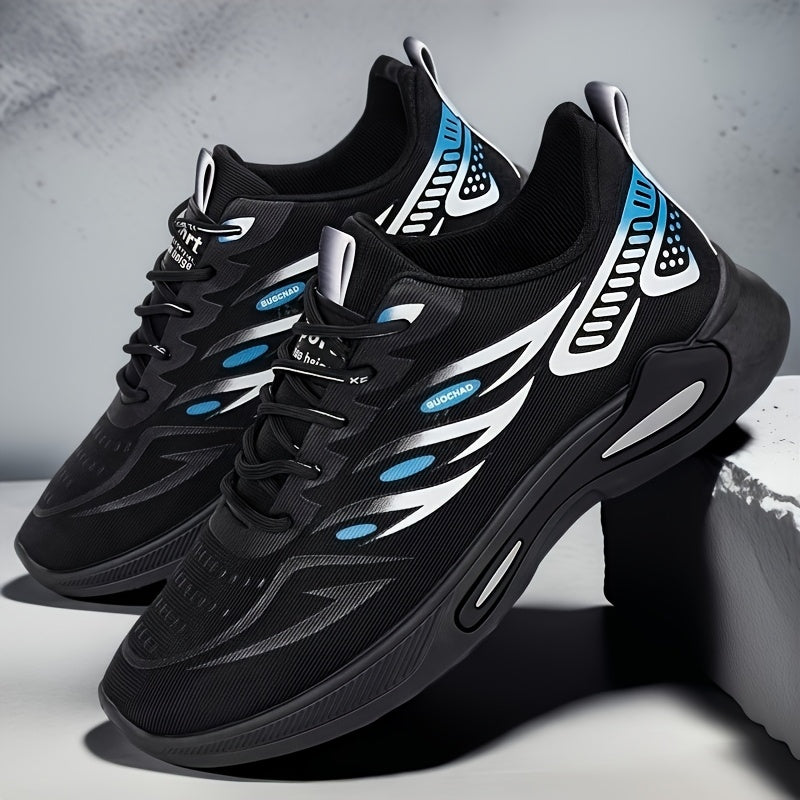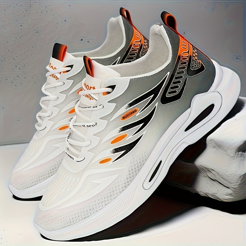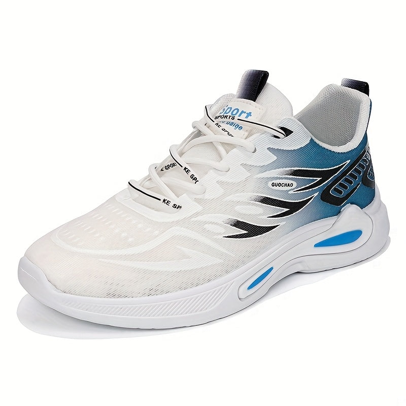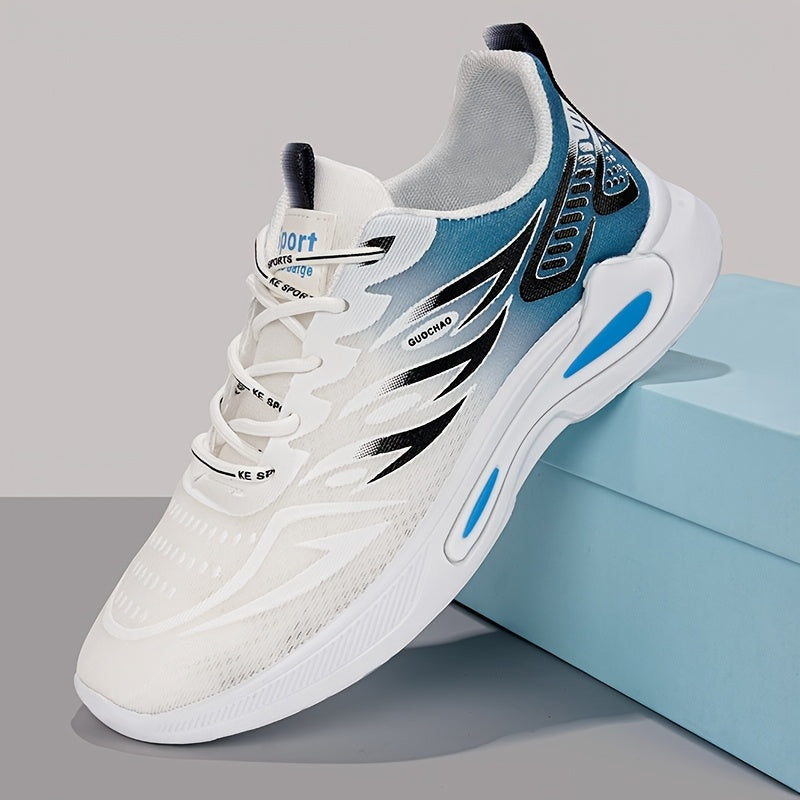 Men's Breathable Athletic Sneakers - Stylish Color Block Design with Blue Accents, Lightweight Running Shoes for Outdoor Activities and Casual Wear, Rubber Sole Footwear, Fabric Upper