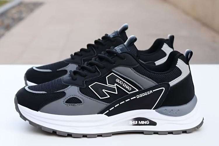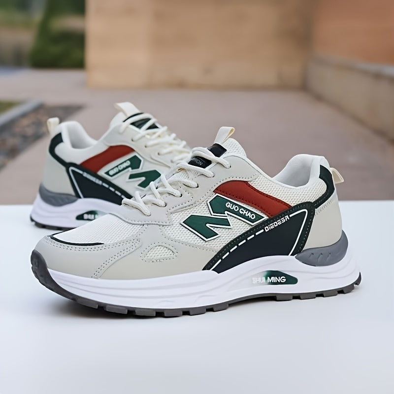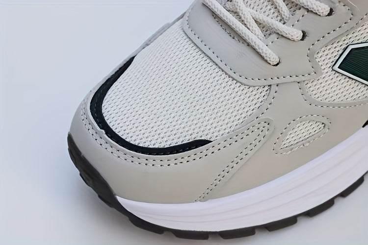 Men's Breathable Mesh Running Sneakers - Durable, Anti-Slip, Odor-Resistant Casual Shoes with Rubber Sole for Spring Fall, Low-Top Lace-Up Design in White, Black Green