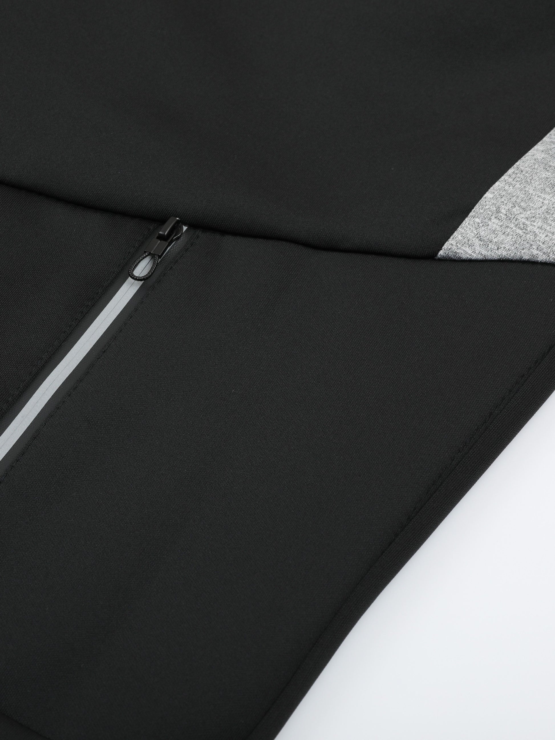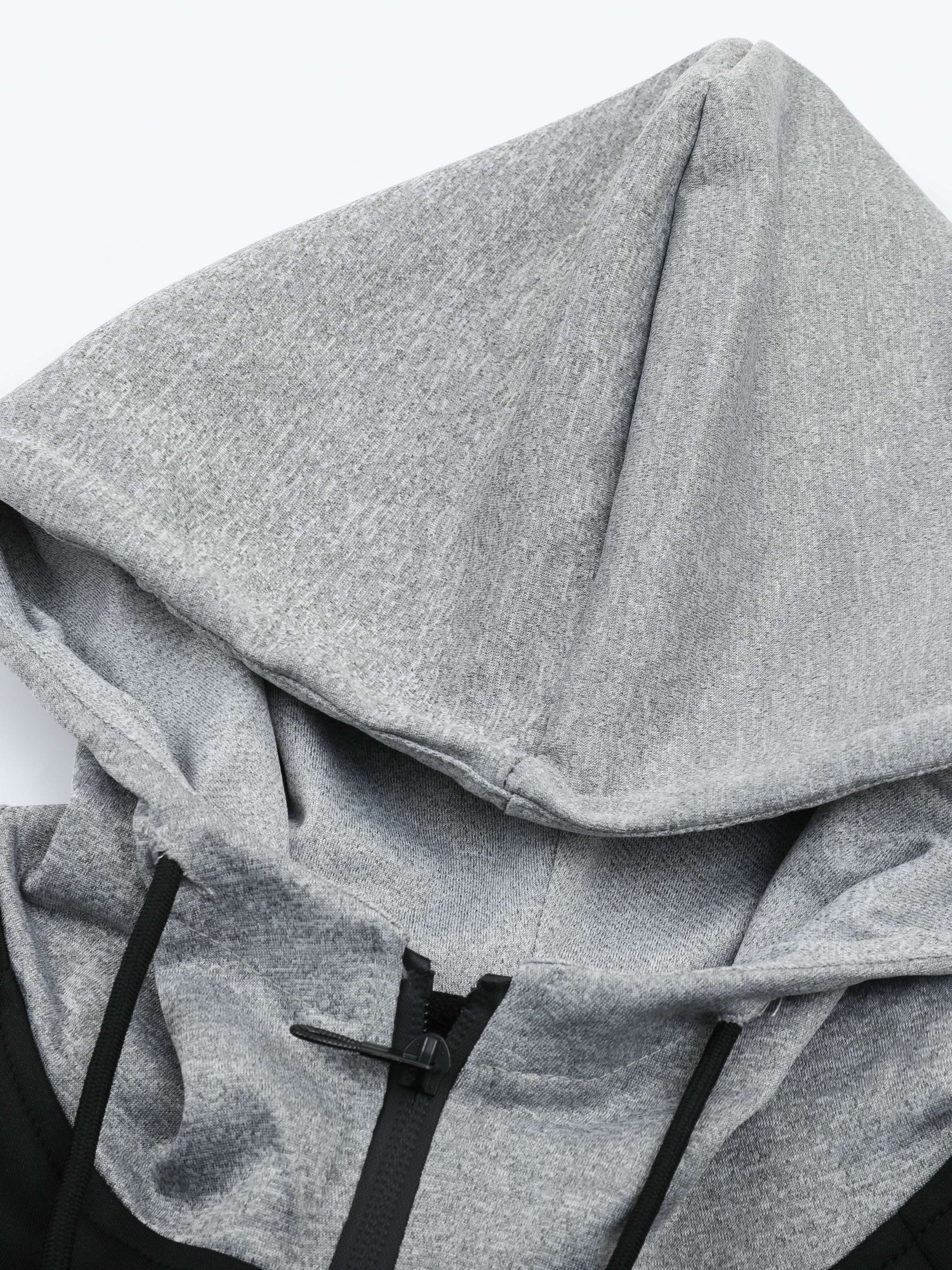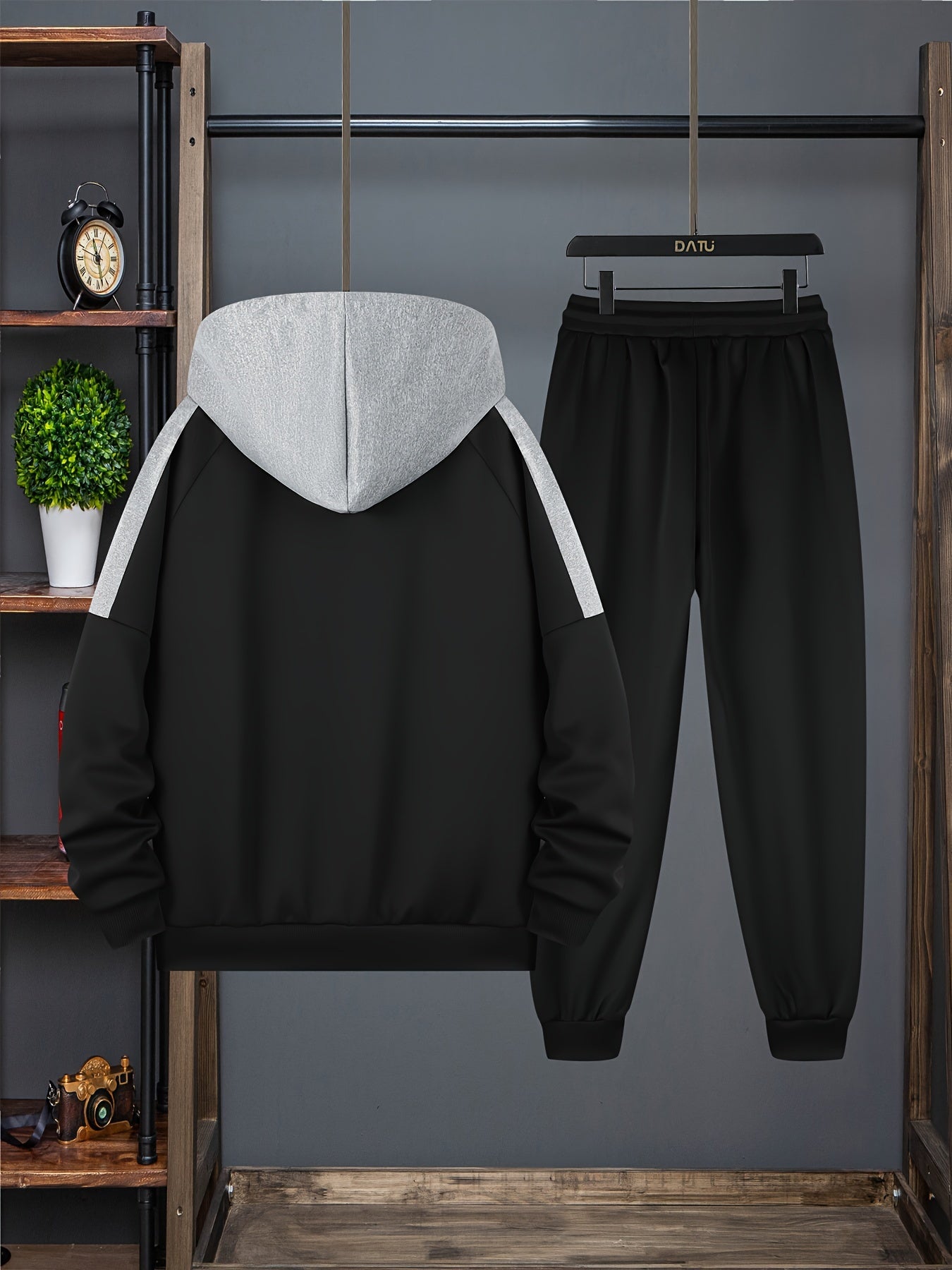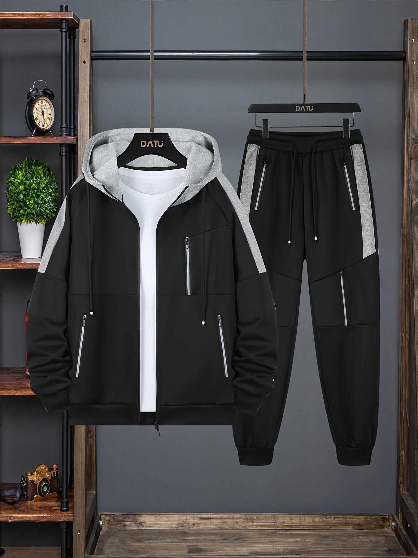 Men's Casual 2-Piece Outfit, Men's Stylish Zip-up Hoodie With Pockets, Color Block Drawstring Pants