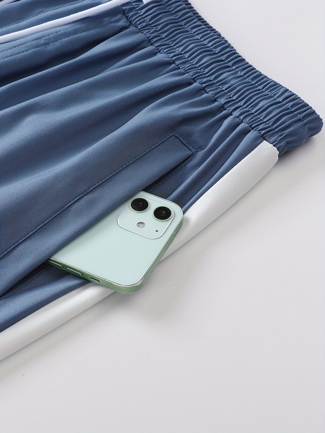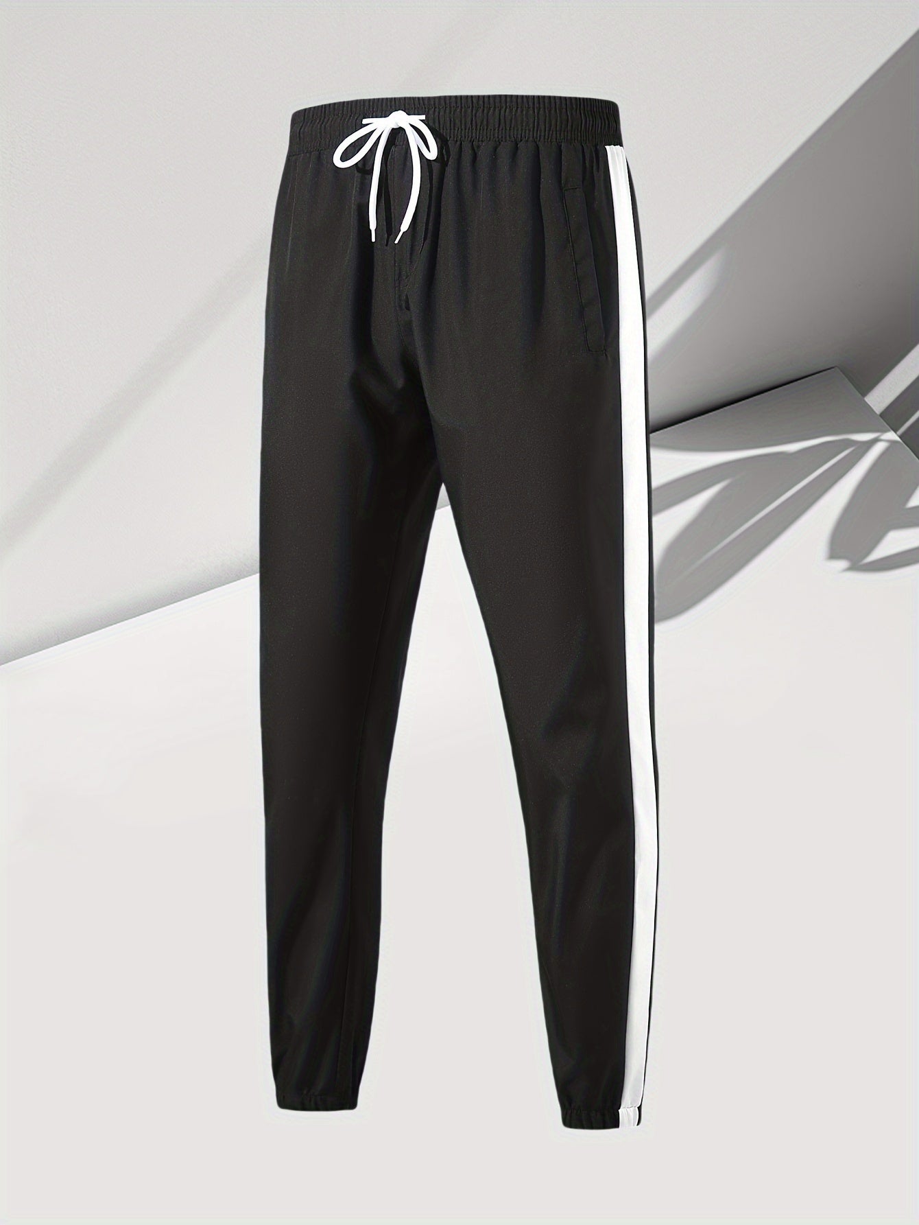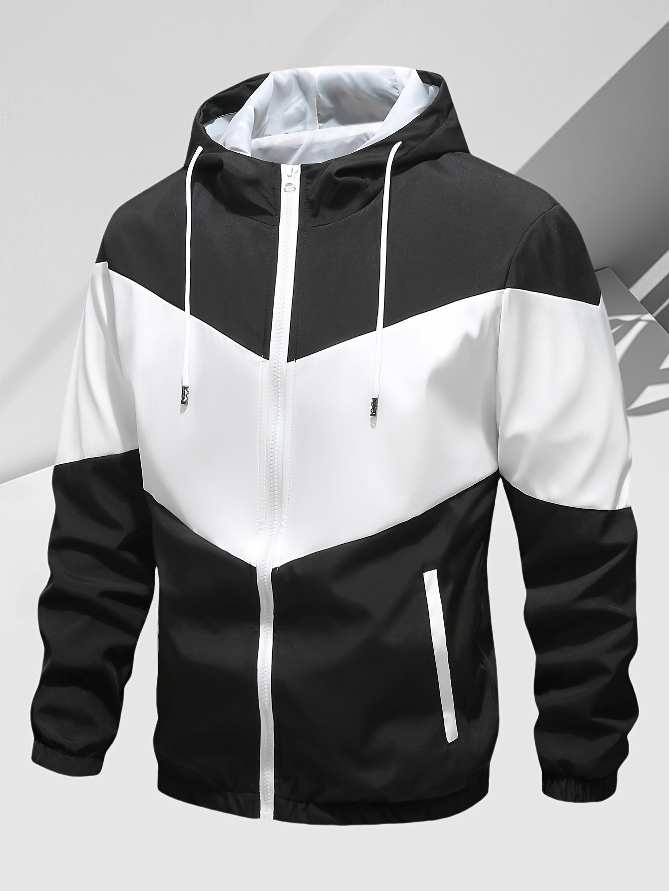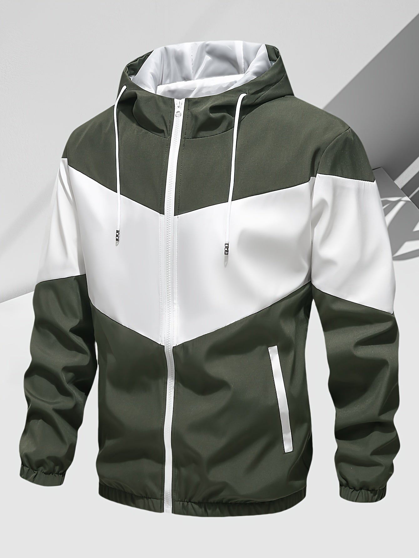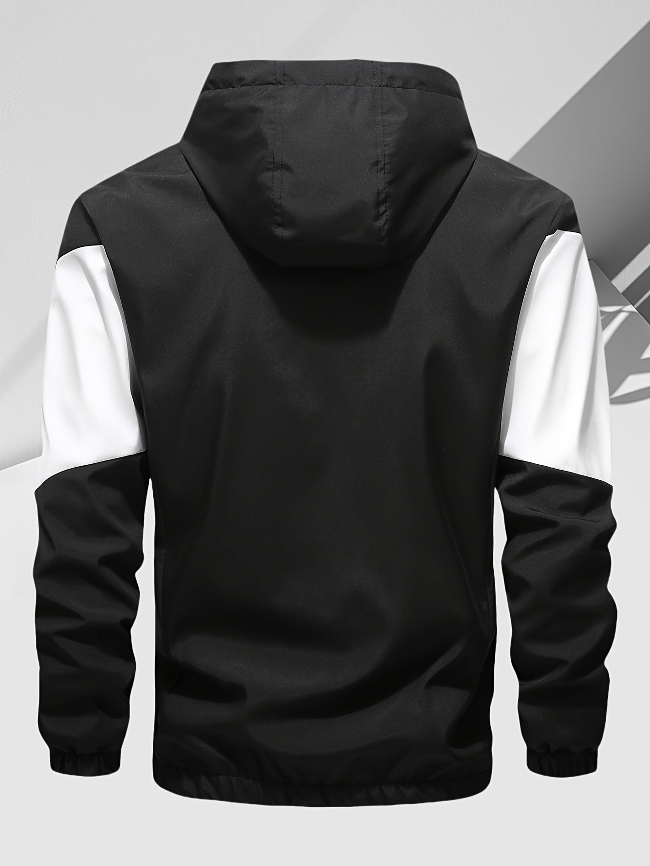 Men's Casual 2-Piece Outfit, Stylish Color Block Zip Up Hooded Jacket, Breathable Solid Color Drawstring Pants