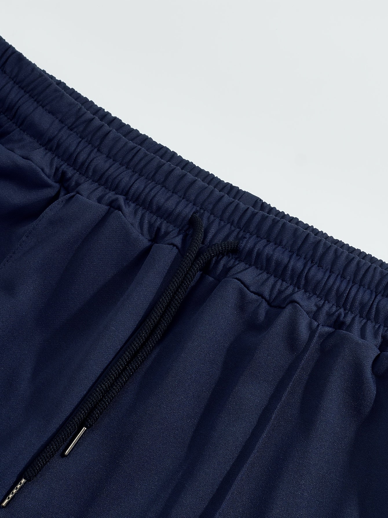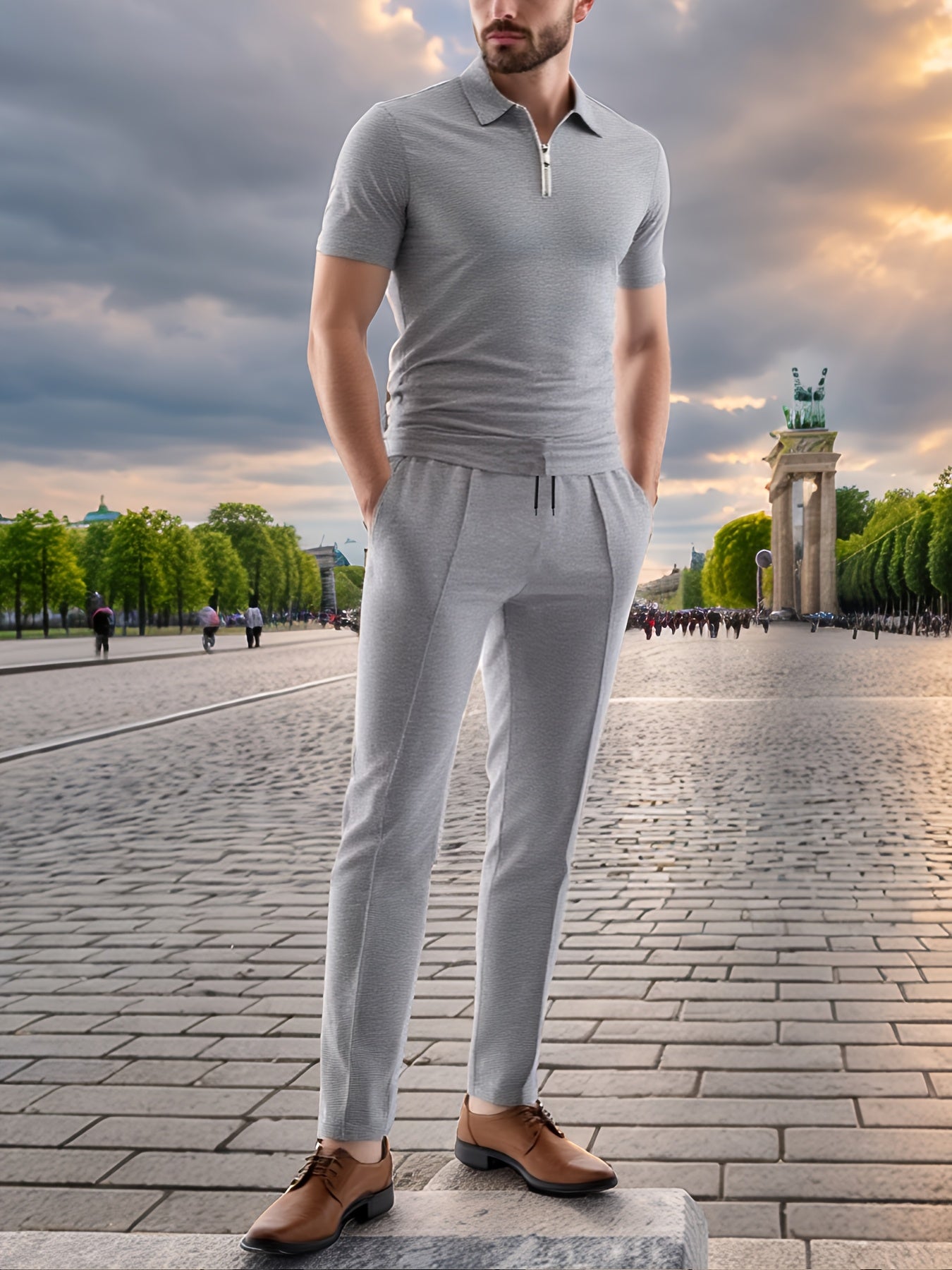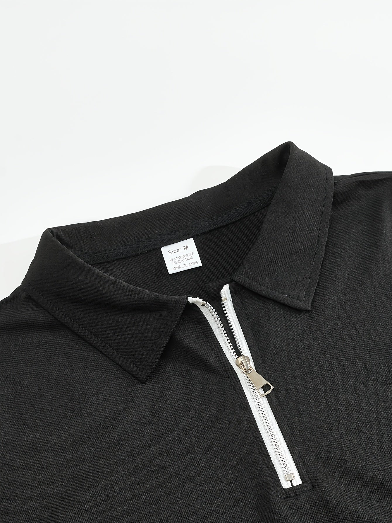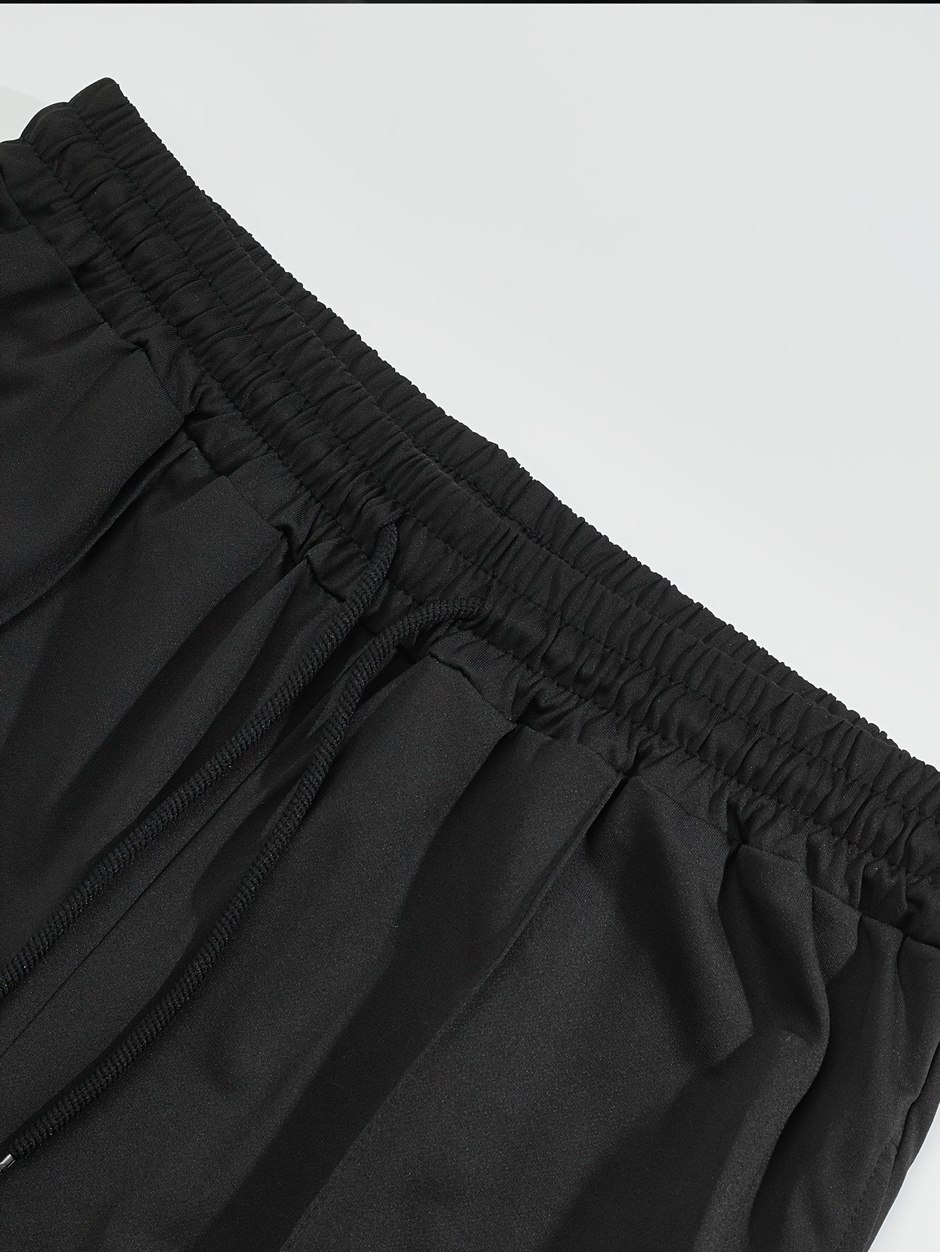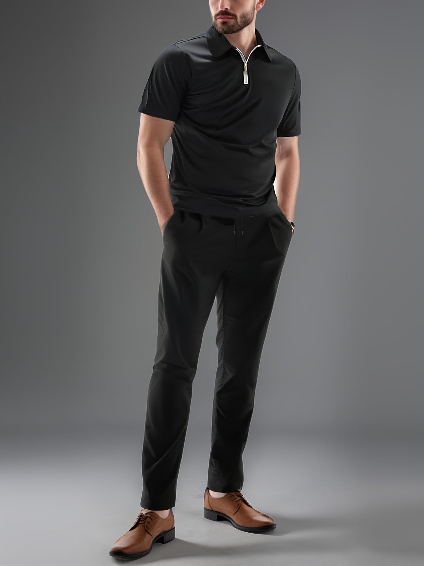 Men'S Casual 2pcs Set Knitted: Zipper Short Sleeve Shirt and Drawstring Pants - Black, Polyester, Suitable for Spring/Summer Casual Wea