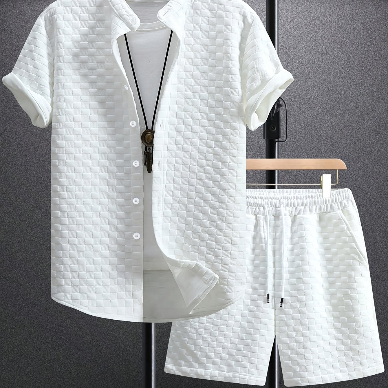 Men'S Casual Athletic Short Sleeve Shirt & Drawstring Shorts Set - Navy Blue, Lightweight Polyester, Perfect for Beach, Camping, and Outdoor Activities, Beach Attire | Stylish Casualwear | Lightweight Fabric