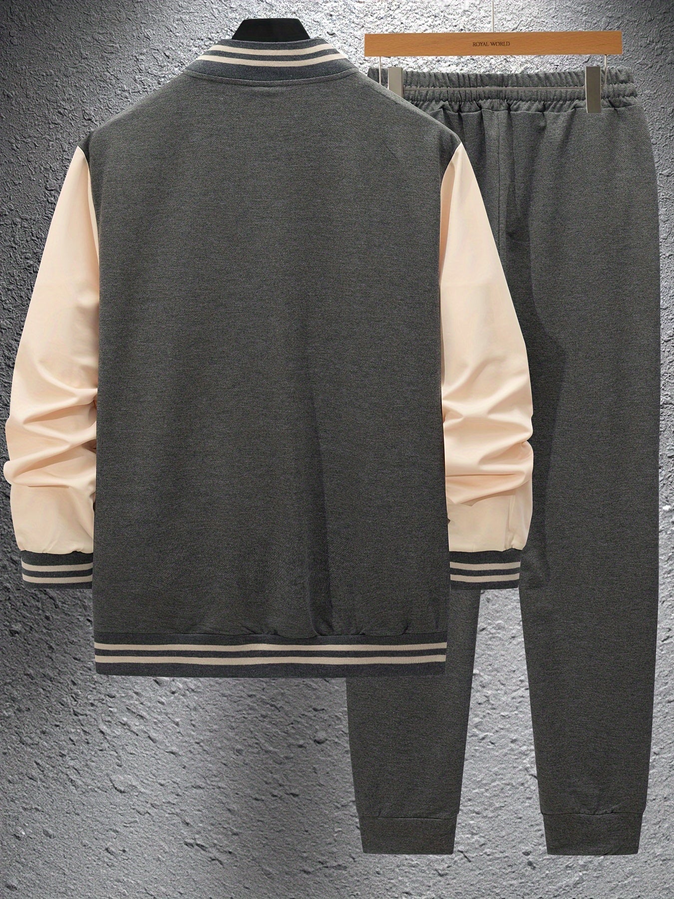 Men'S Casual Baseball Collar Jacket and Pants Set, Color Block Long Sleeve Sweatshirt and Sweatpants, Polyester Woven Suit with Button Detail, Spring/Fall Collection