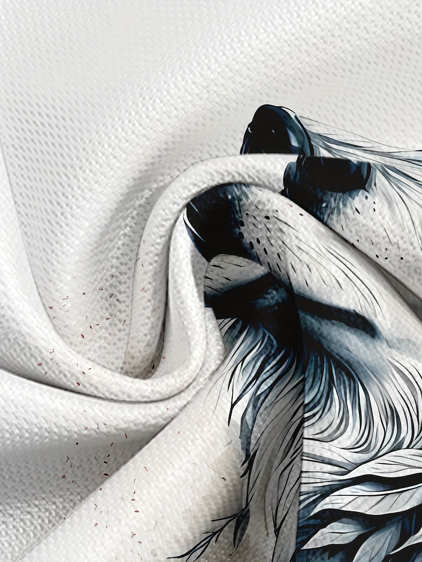 Men's Casual Breathable T-Shirt - White Round Neck Regular Fit, Machine Washable Durable Digital Print for Outdoor Casual Attire, Naturethemed Apparel, Wolf Graphic Tee, Comfortable Fabric