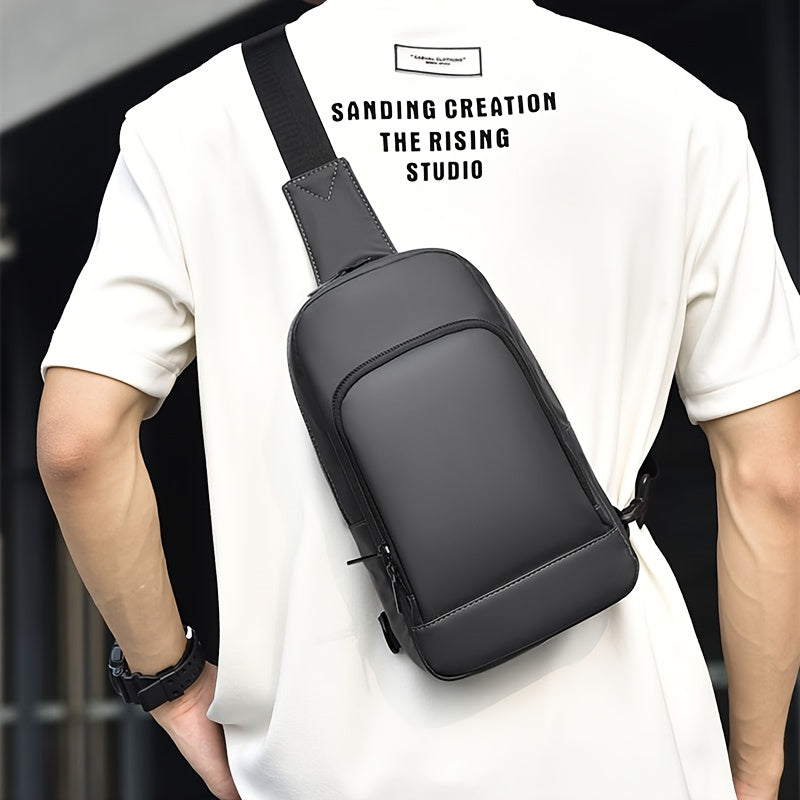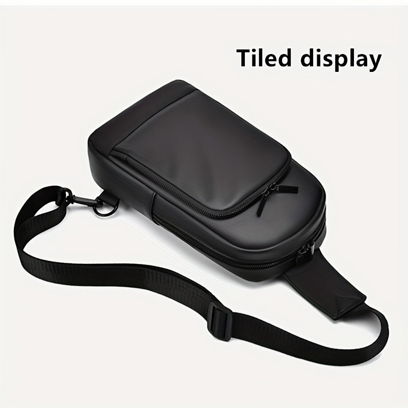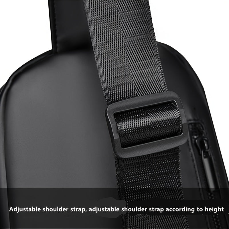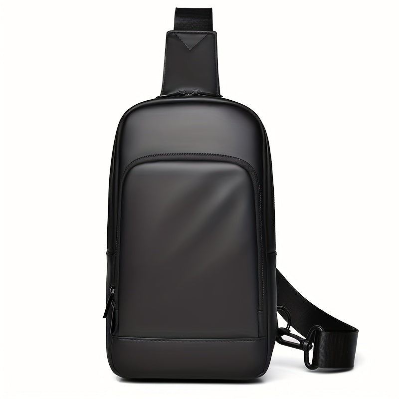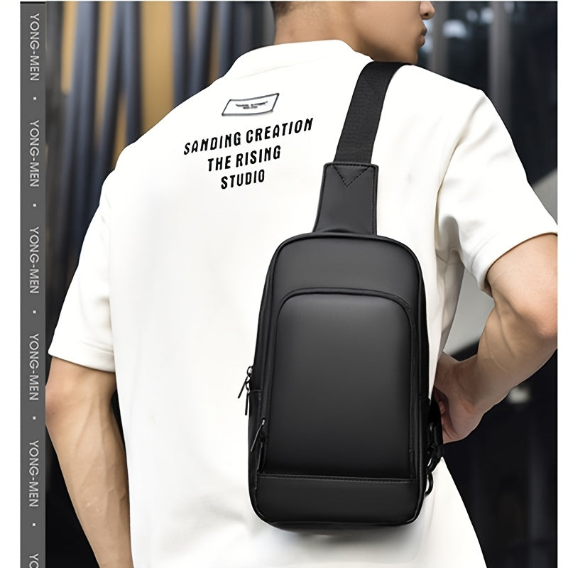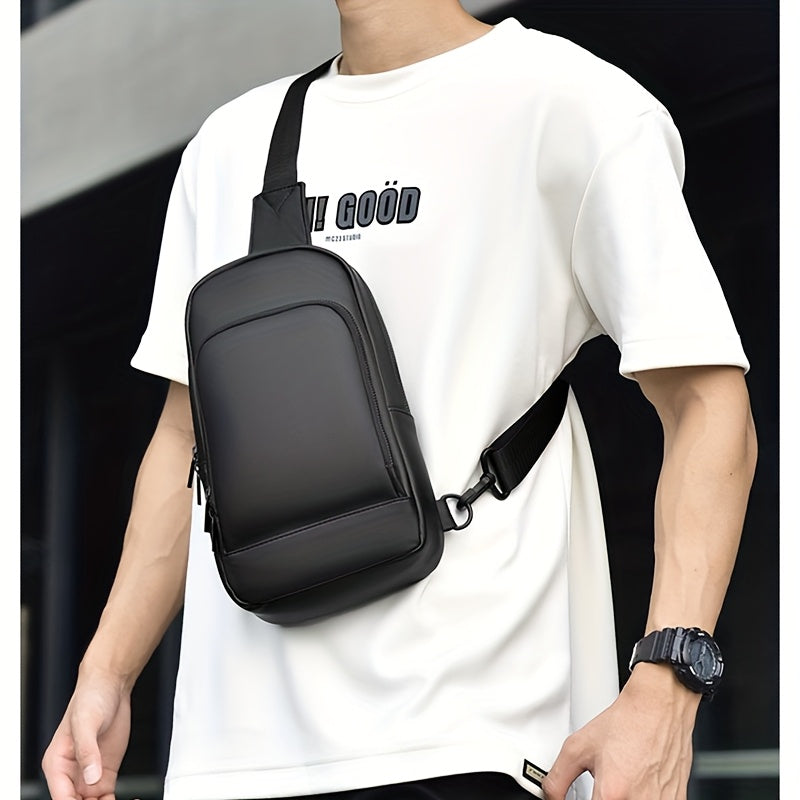 Men'S Casual Chest Bag, Faux Leather, Single Shoulder Bag, Zipper Closure, Uncharged, with Sewing Thread, Non-textile Weaving Method, No Printing, 100cm Shoulder Strap Length, for Daily Commute