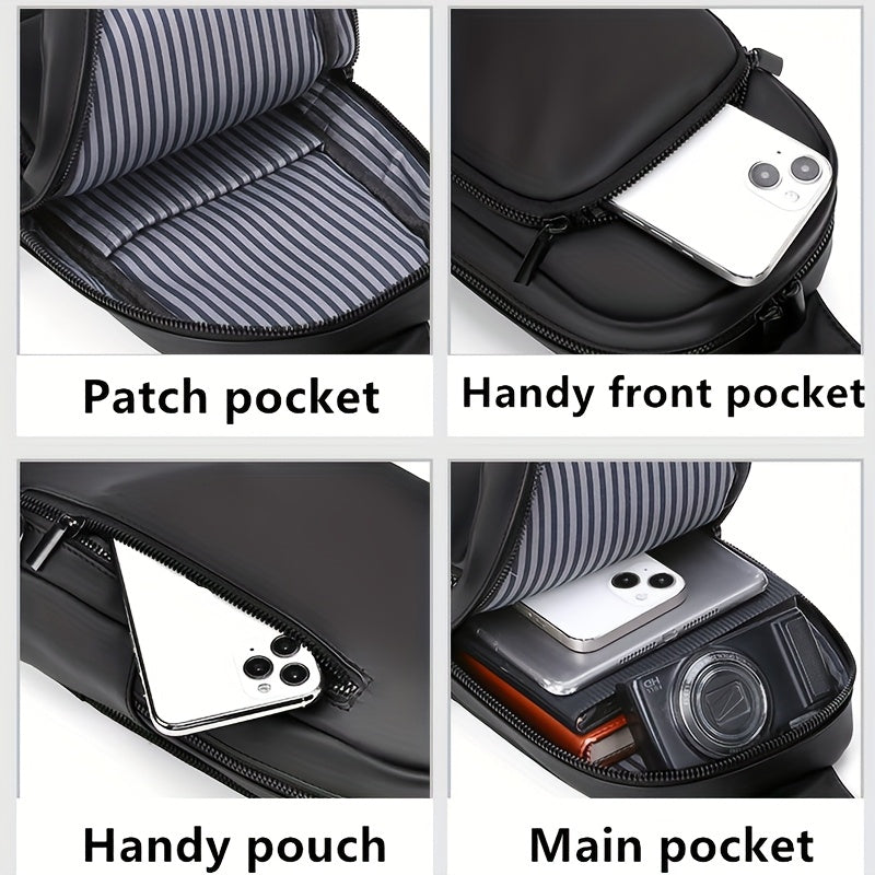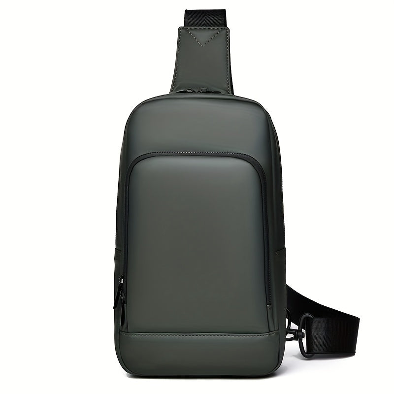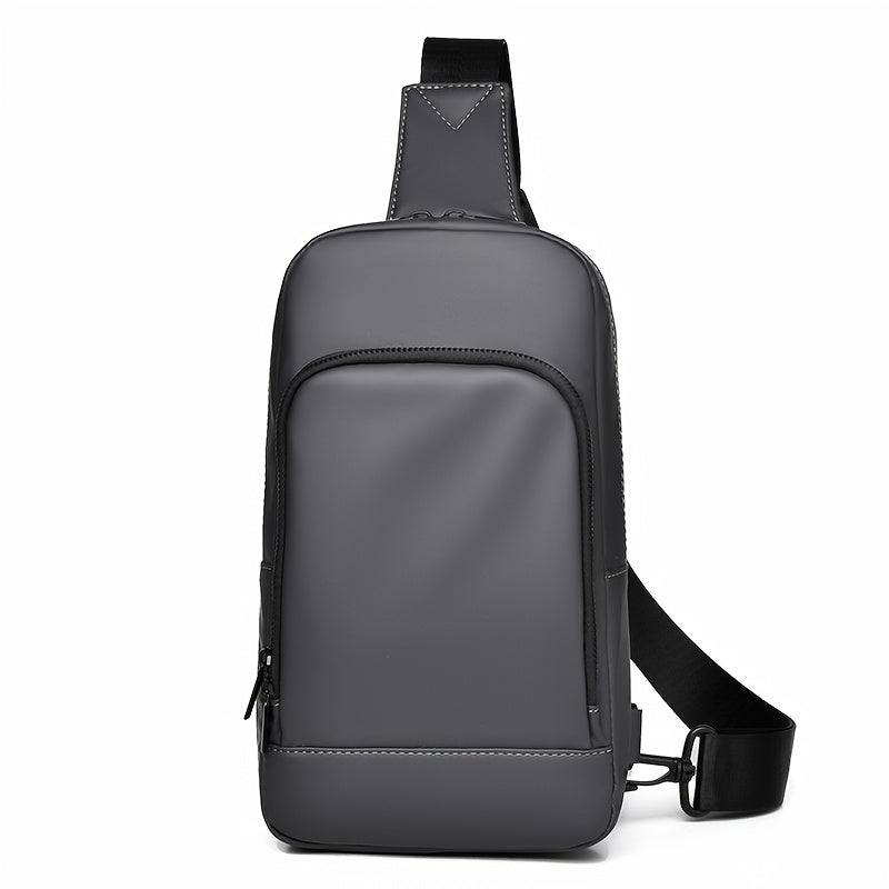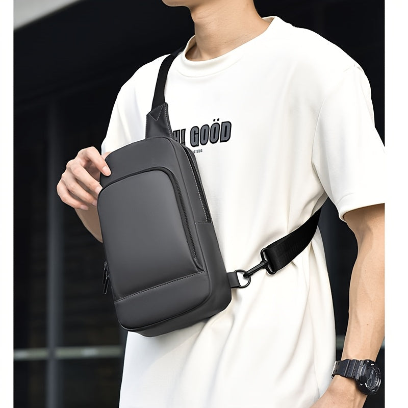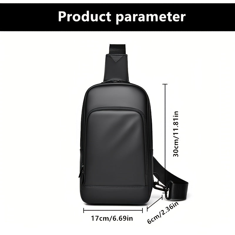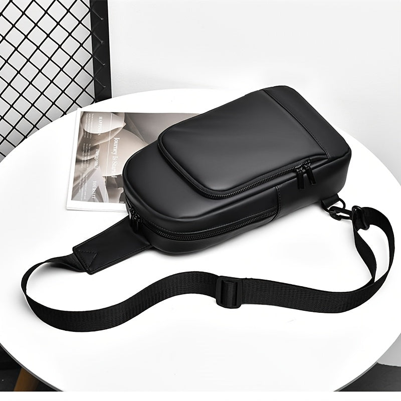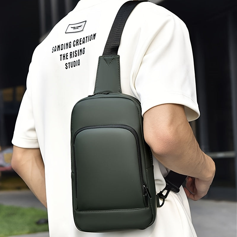 Men'S Casual Chest Bag, Faux Leather, Single Shoulder Bag, Zipper Closure, Uncharged, with Sewing Thread, Non-textile Weaving Method, No Printing, 100cm Shoulder Strap Length, for Daily Commute