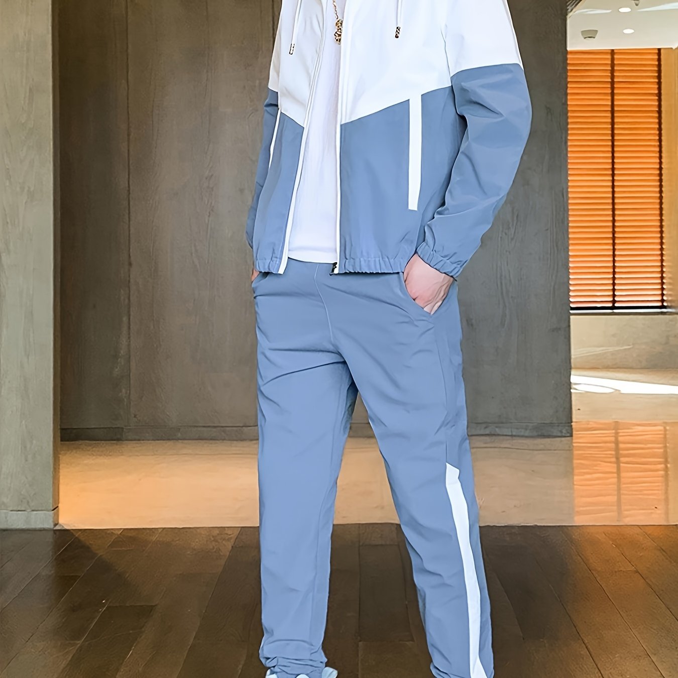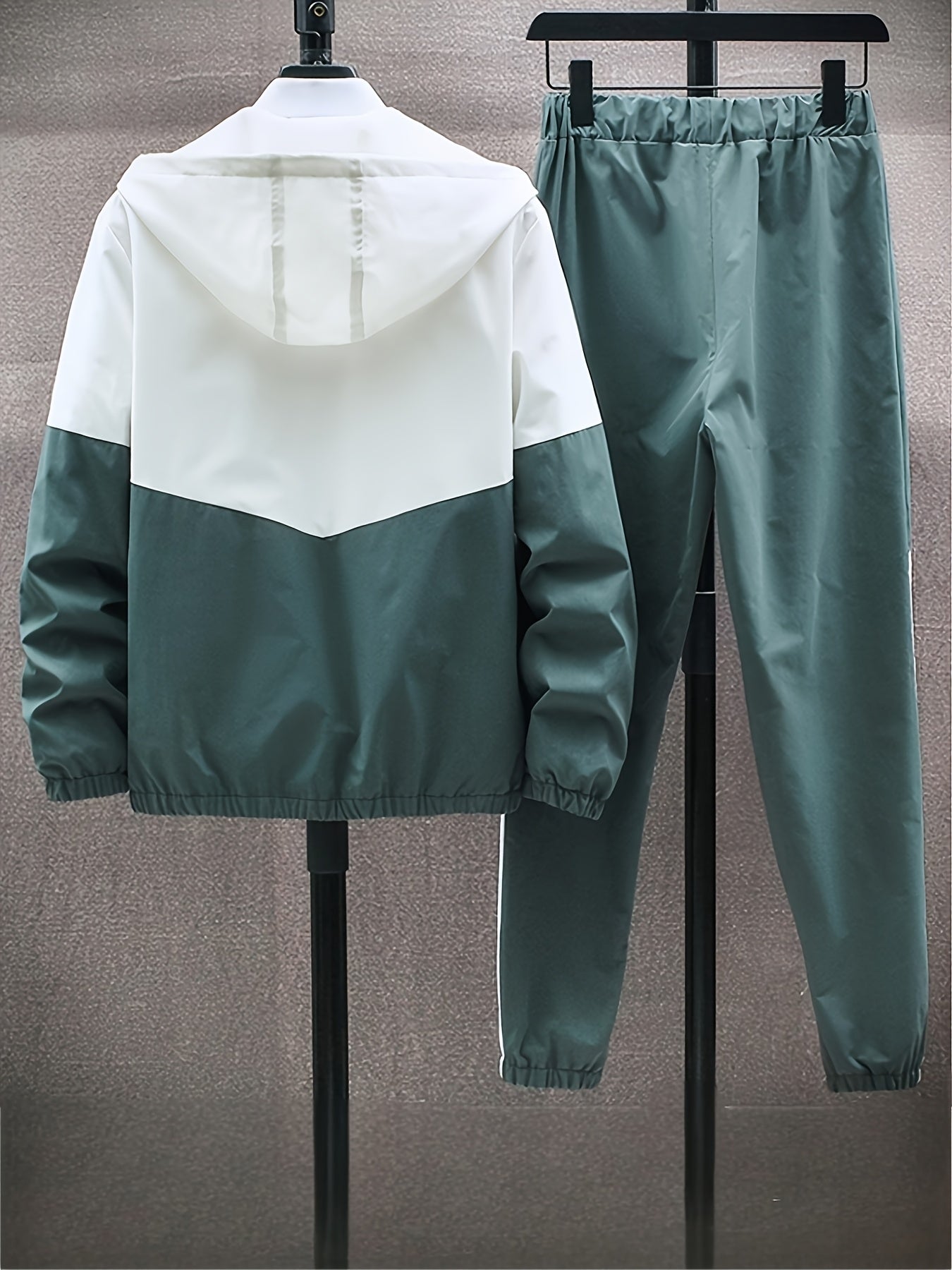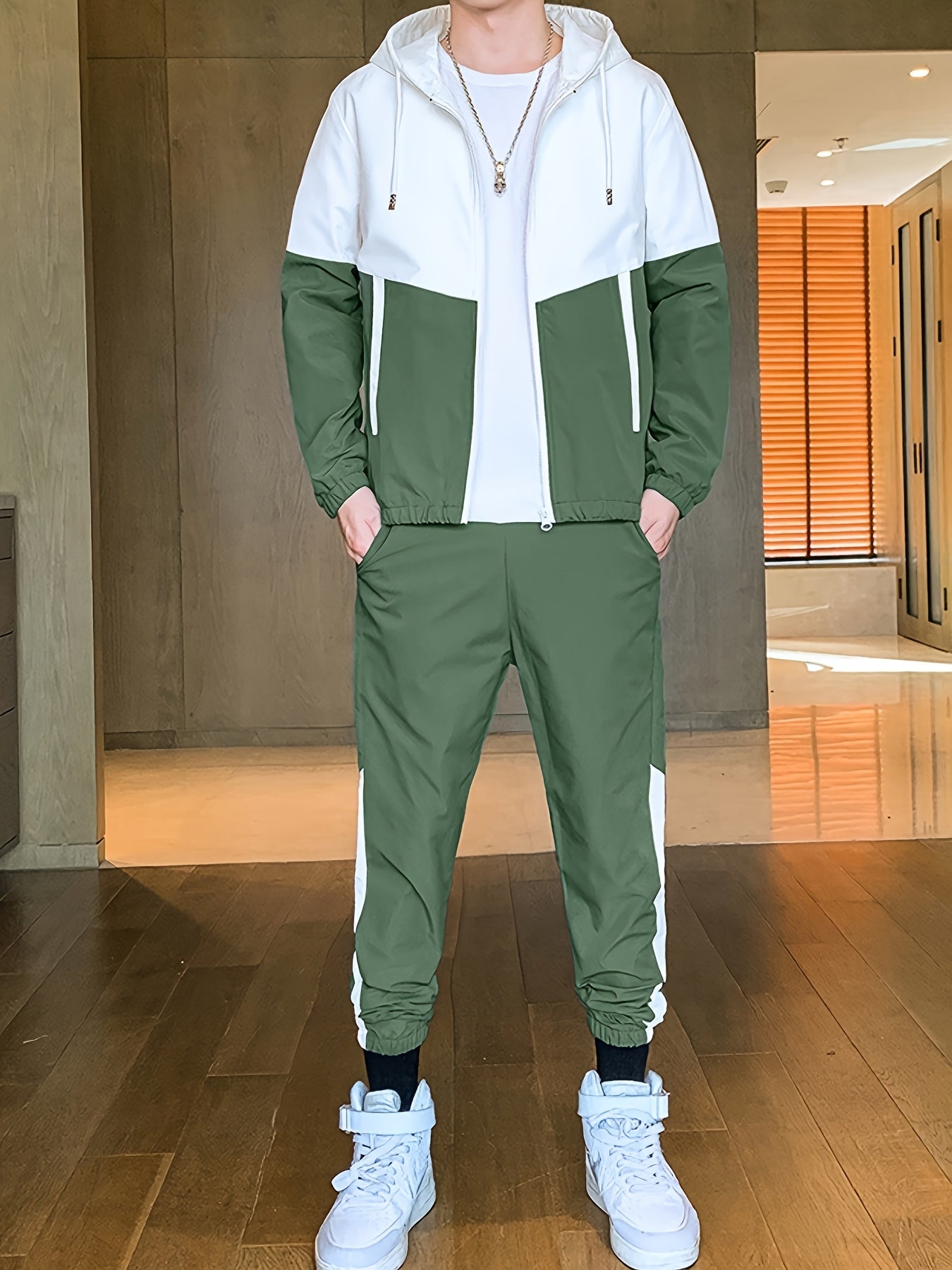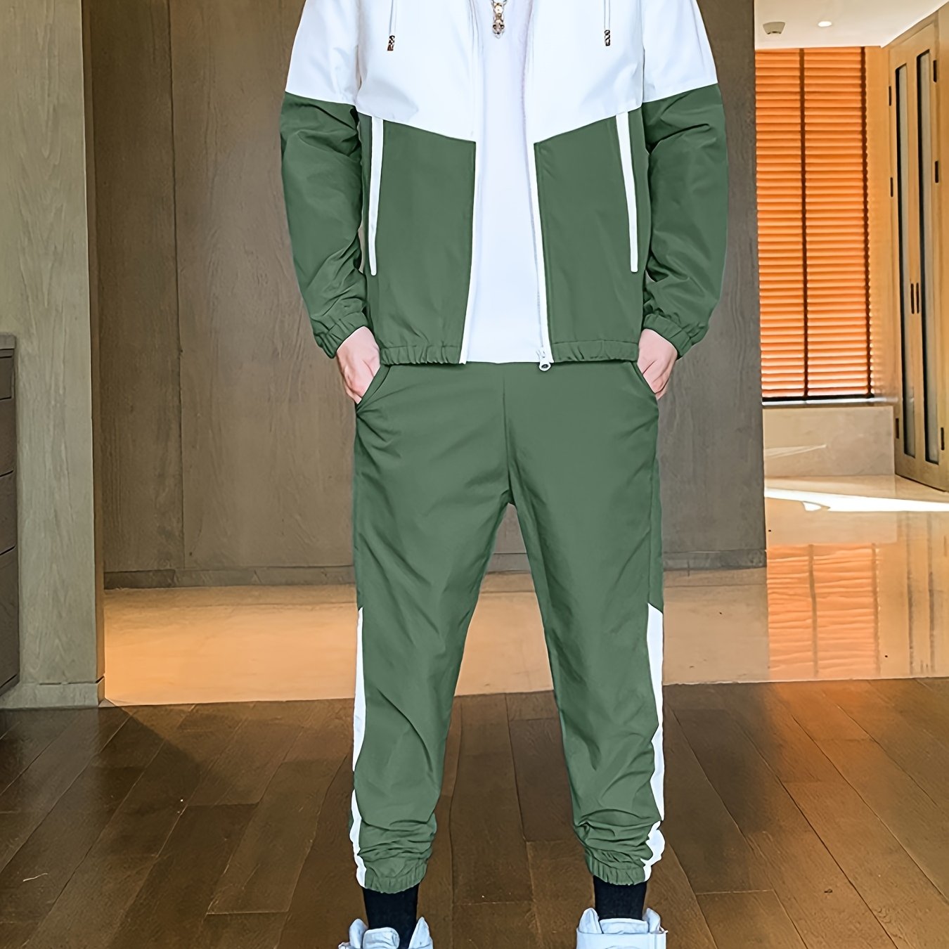 Men'S Casual Color Block Hoodie and Jogger Set, Long Sleeve, Regular Fit with Pockets, Suitable for Autumn and Winter