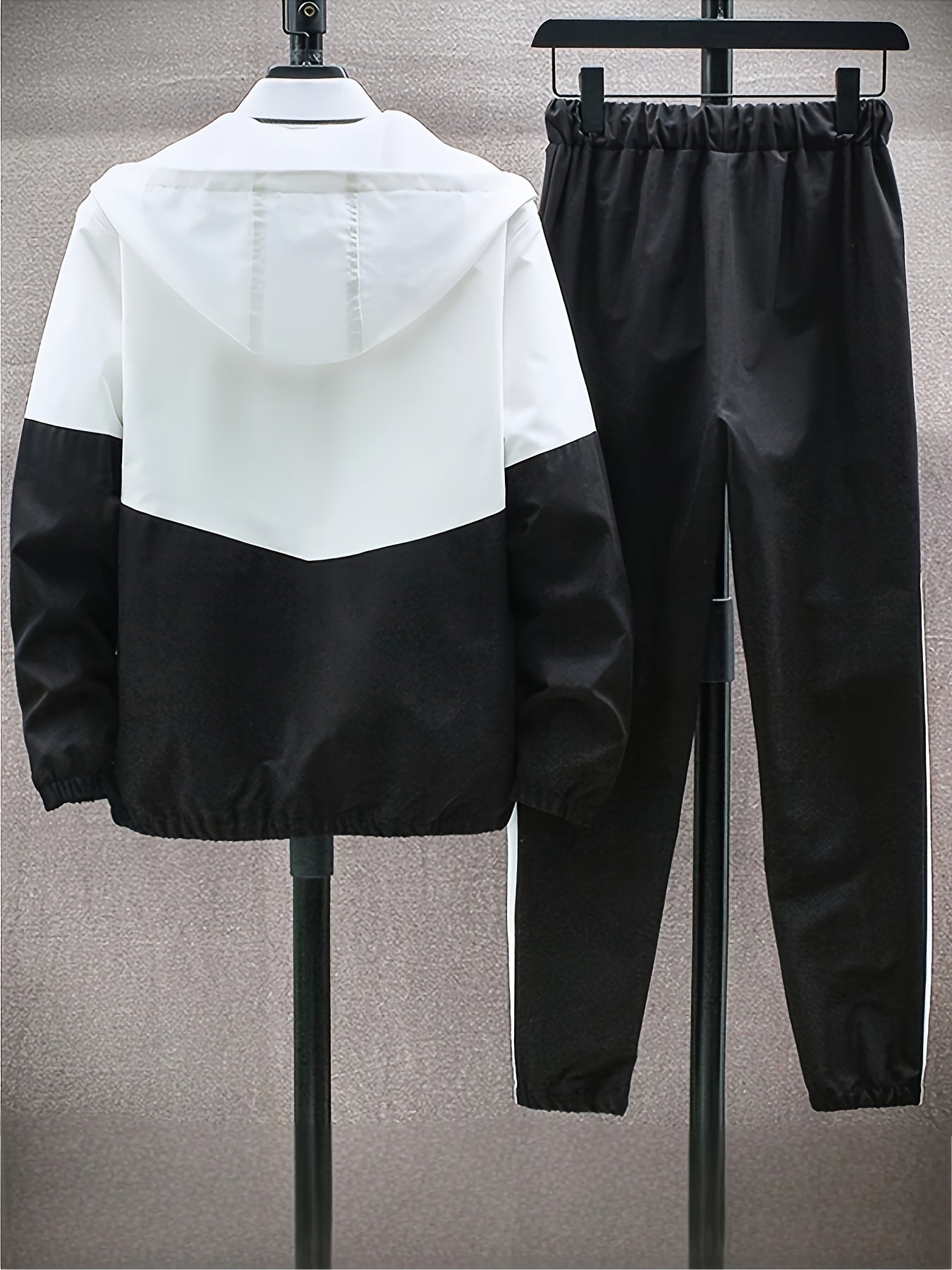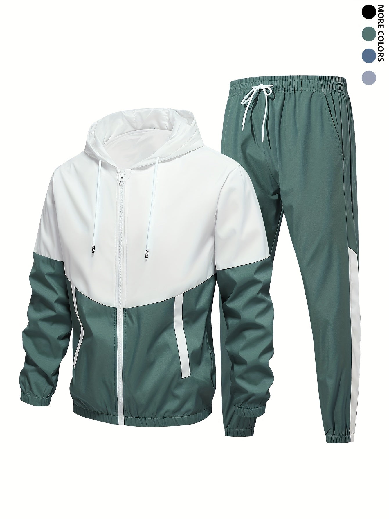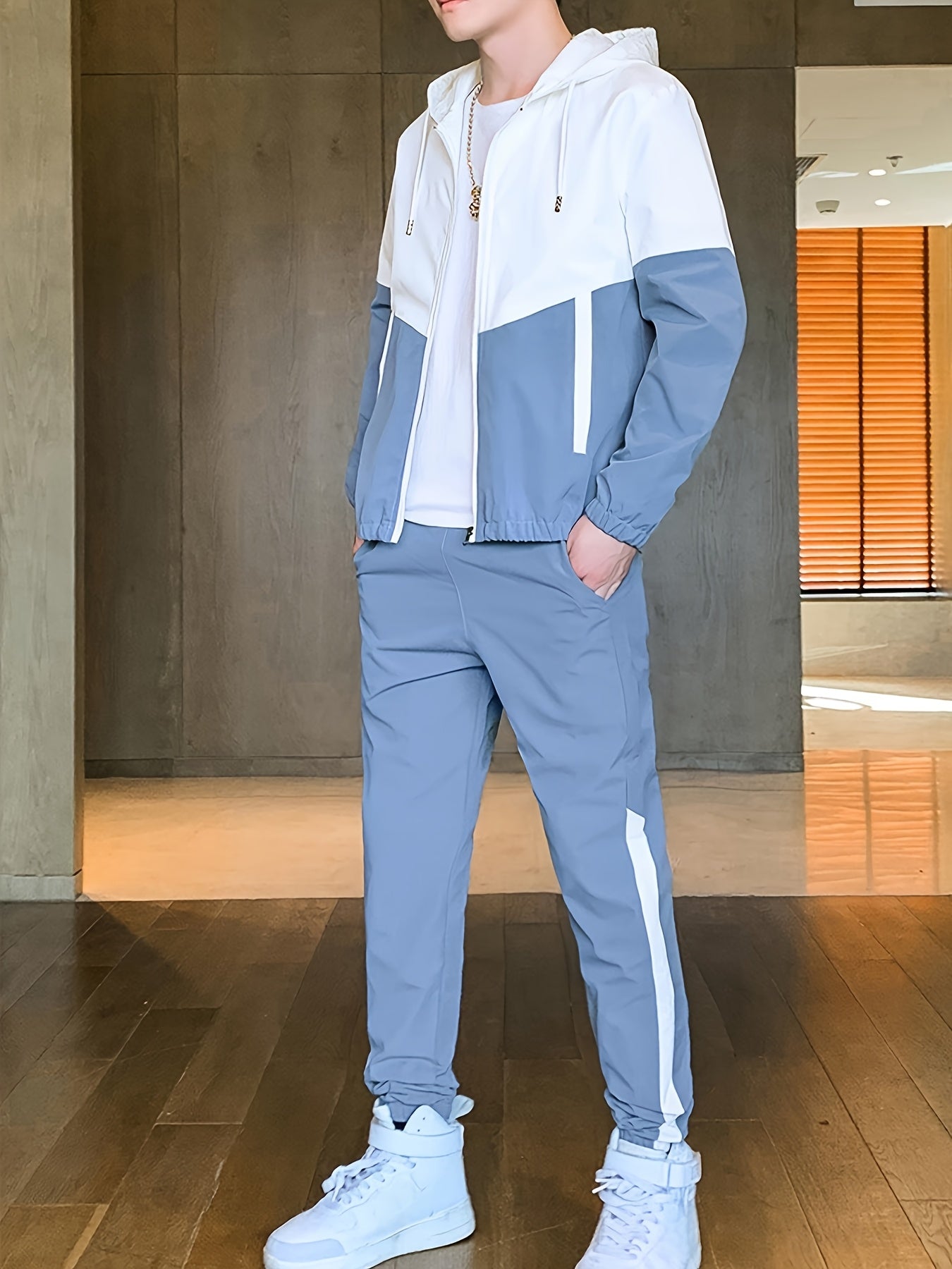 Men'S Casual Color Block Hoodie and Jogger Set, Long Sleeve, Regular Fit with Pockets, Suitable for Autumn and Winter