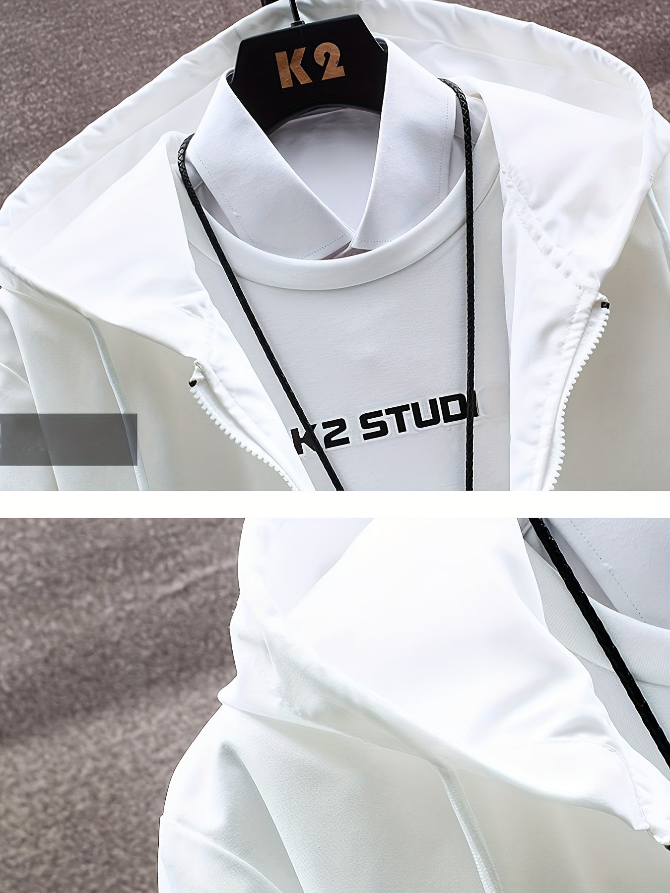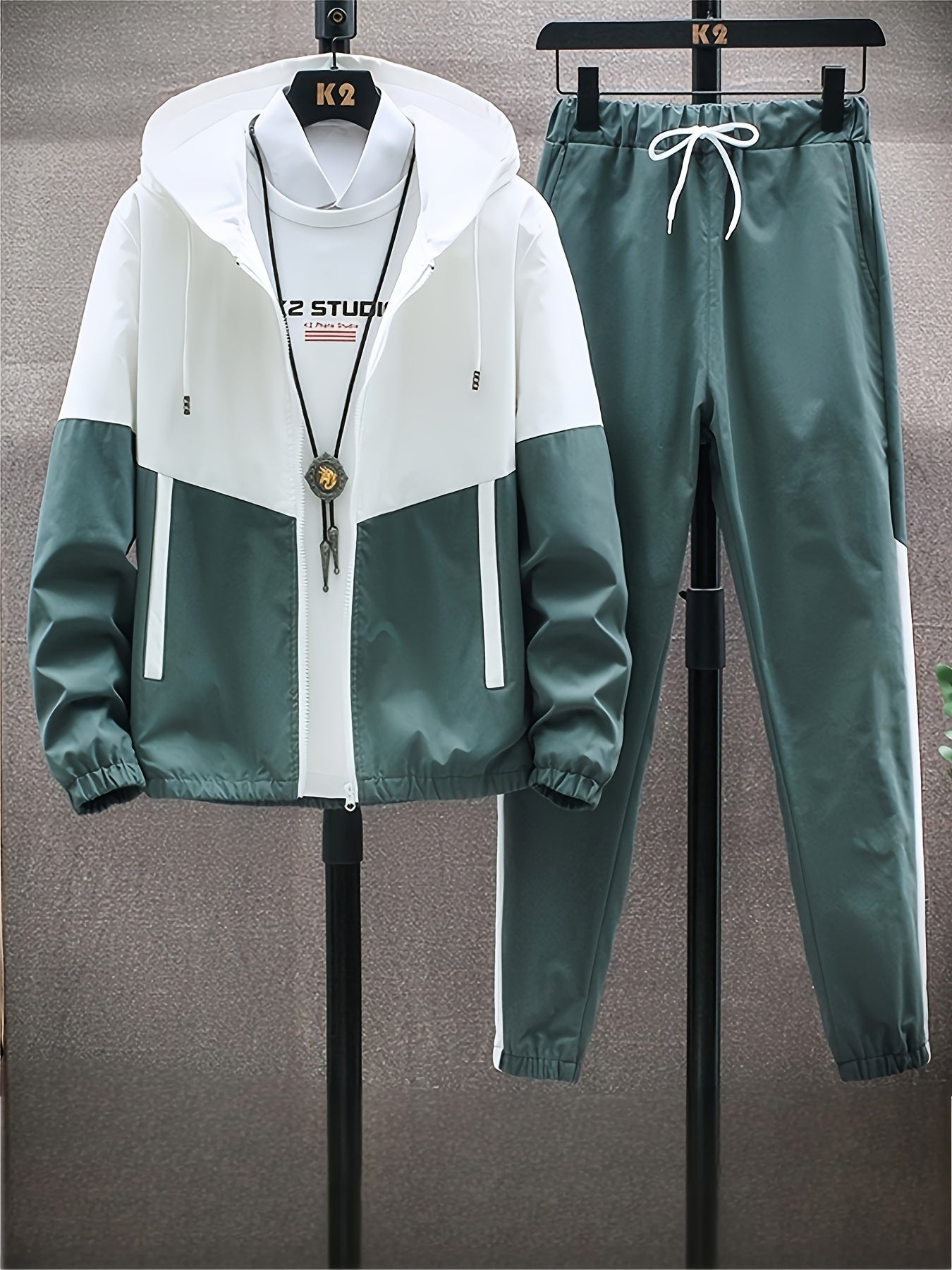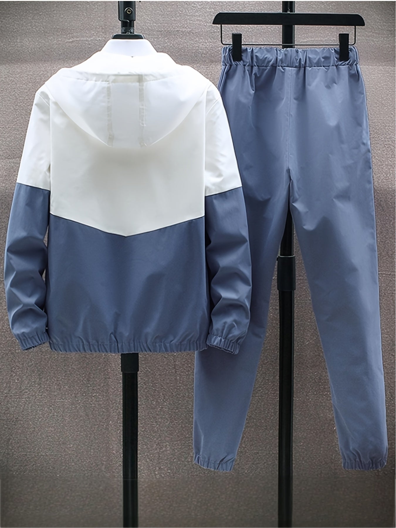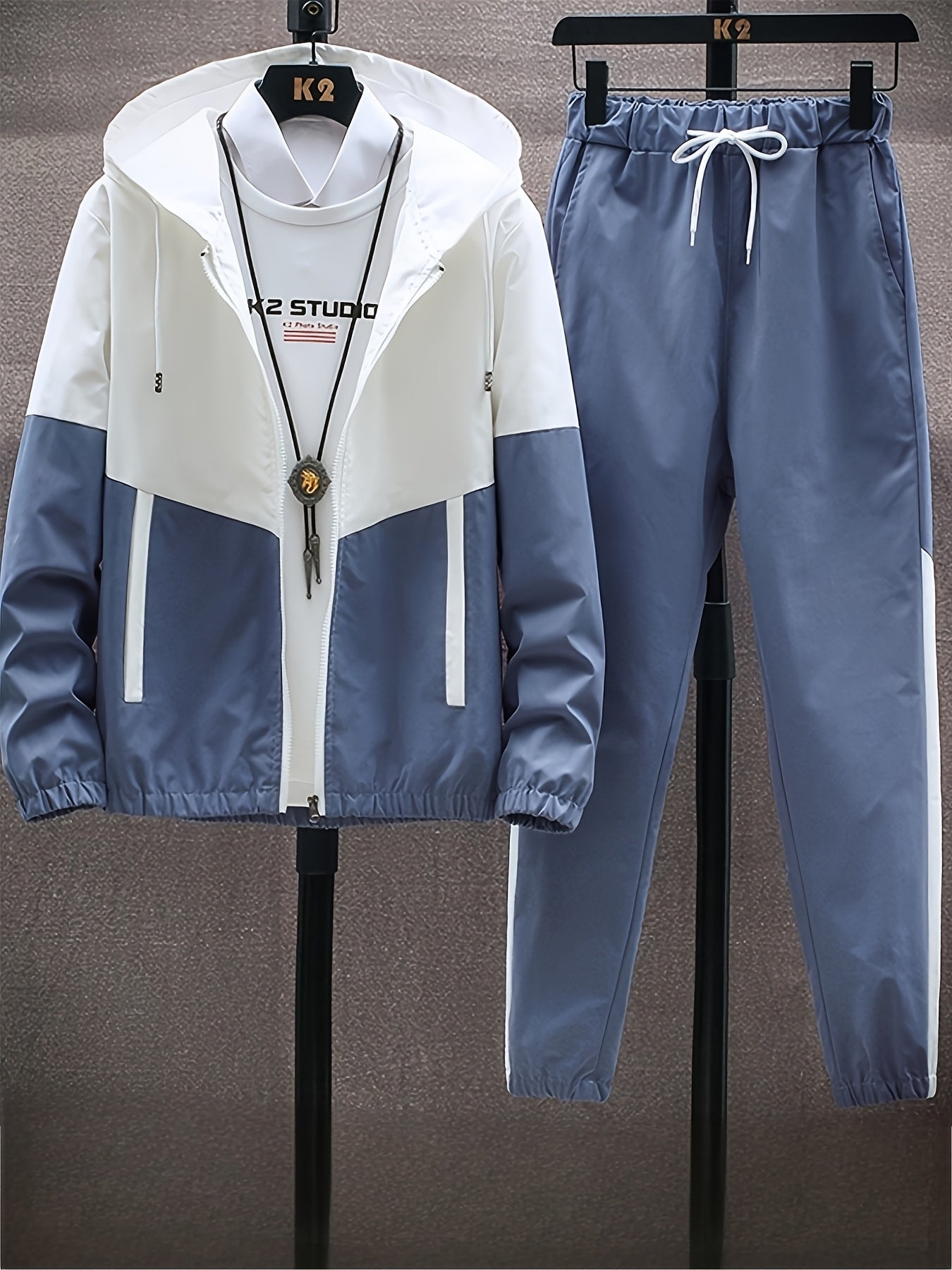 Men'S Casual Color Block Hoodie and Jogger Set, Long Sleeve, Regular Fit with Pockets, Suitable for Autumn and Winter