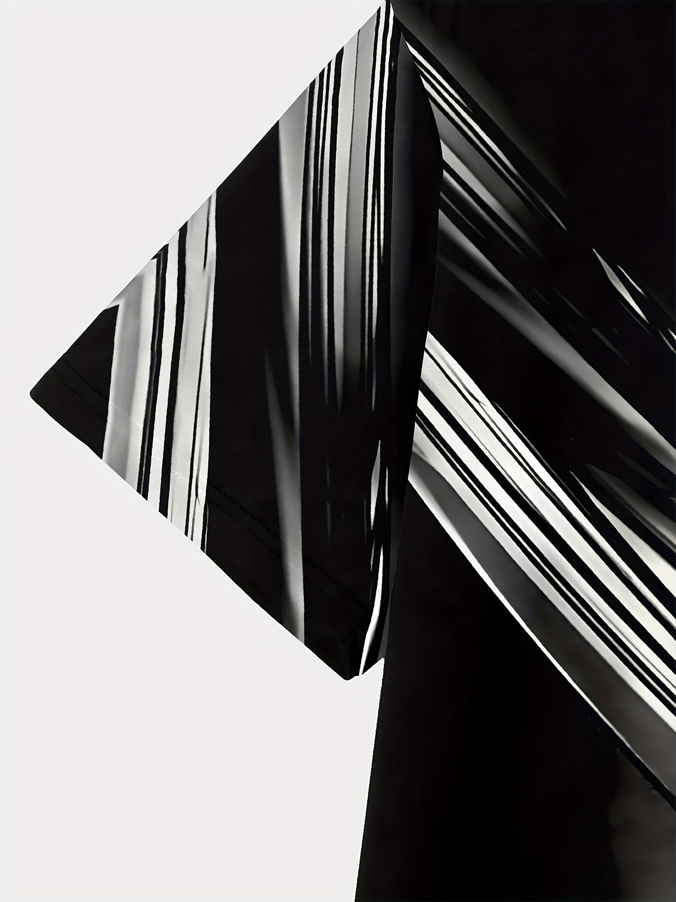 Men'S Casual Crew Neck T-Shirt with Abstract Black White Design - Soft Fabric, Regular Fit, Casual Attire Modern Casualwear Stretchable Fabric