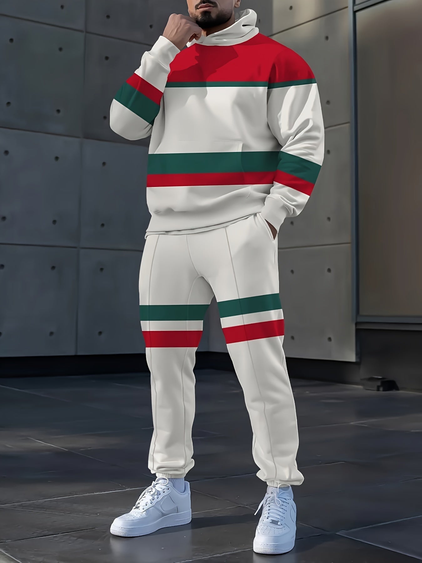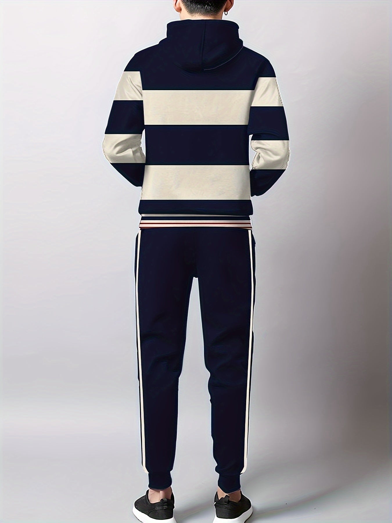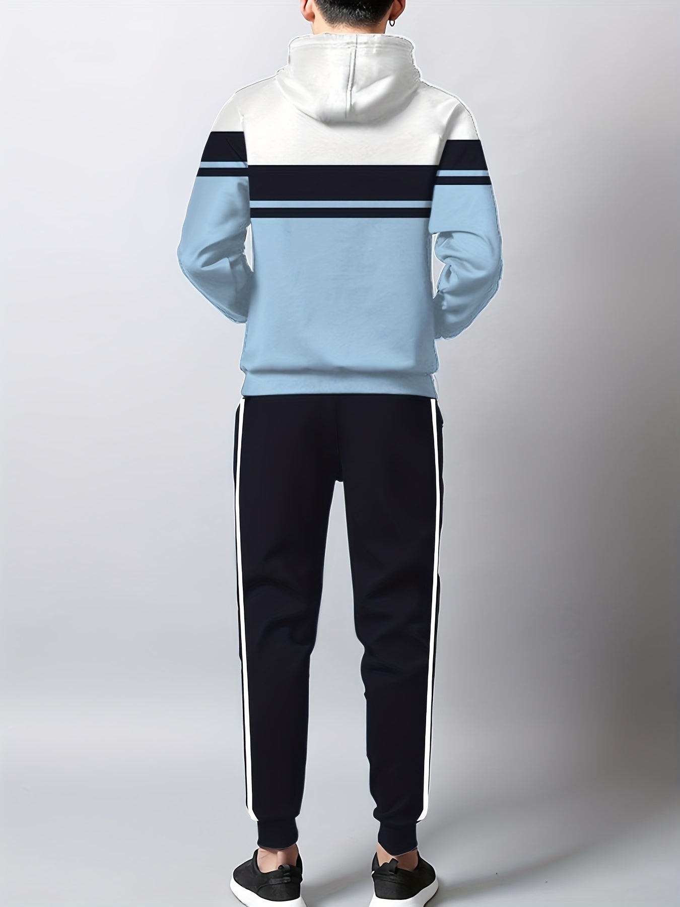 Men's Casual Digital Print Hoodie & Sweatpants Set - Polyester, Machine Washable, Perfect for Spring/Fall Outings