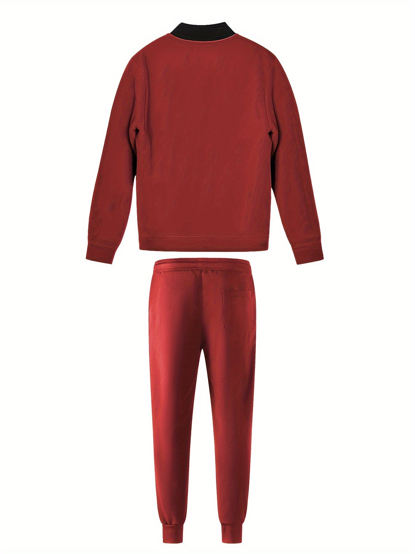 Men's Casual Fashion Suit Set - Polyester, Stand Collar Zip-Up Jacket & Drawstring Pants for Spring/Fall