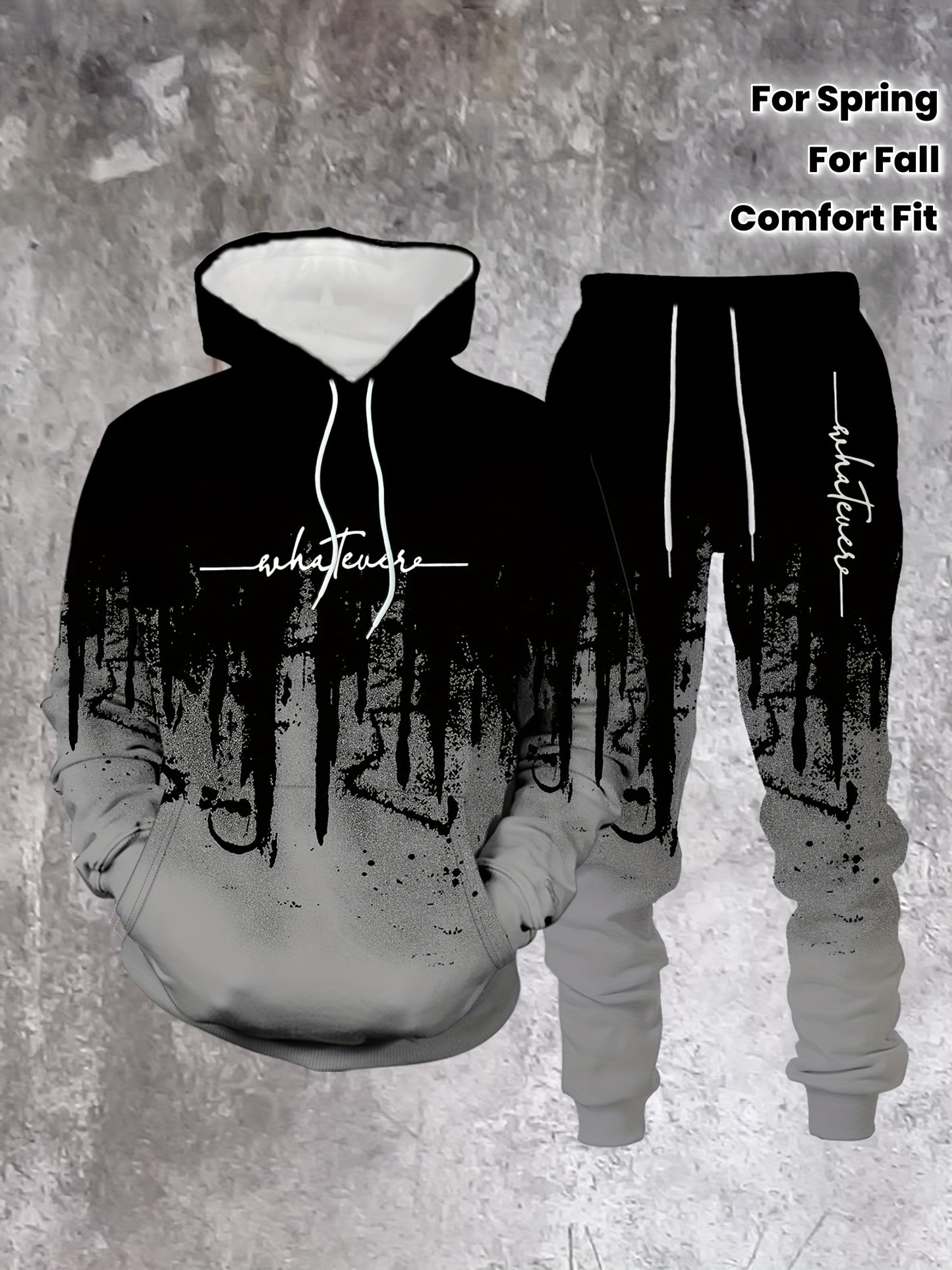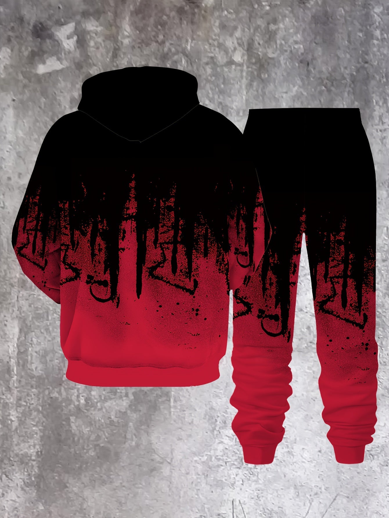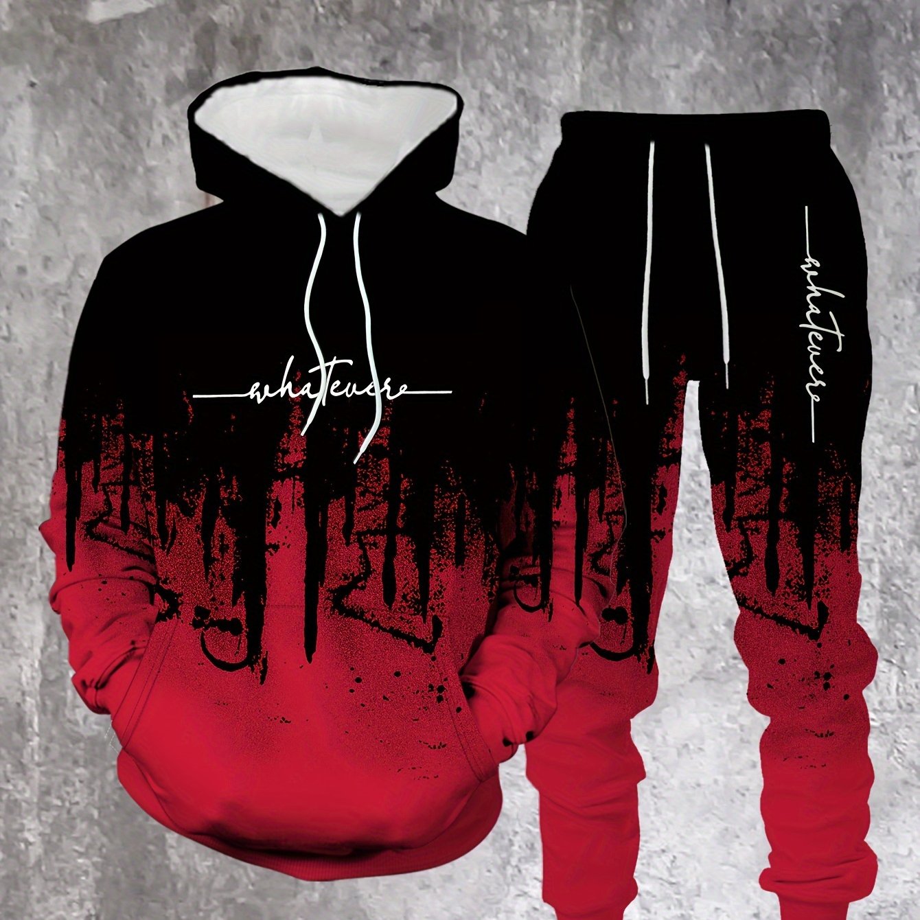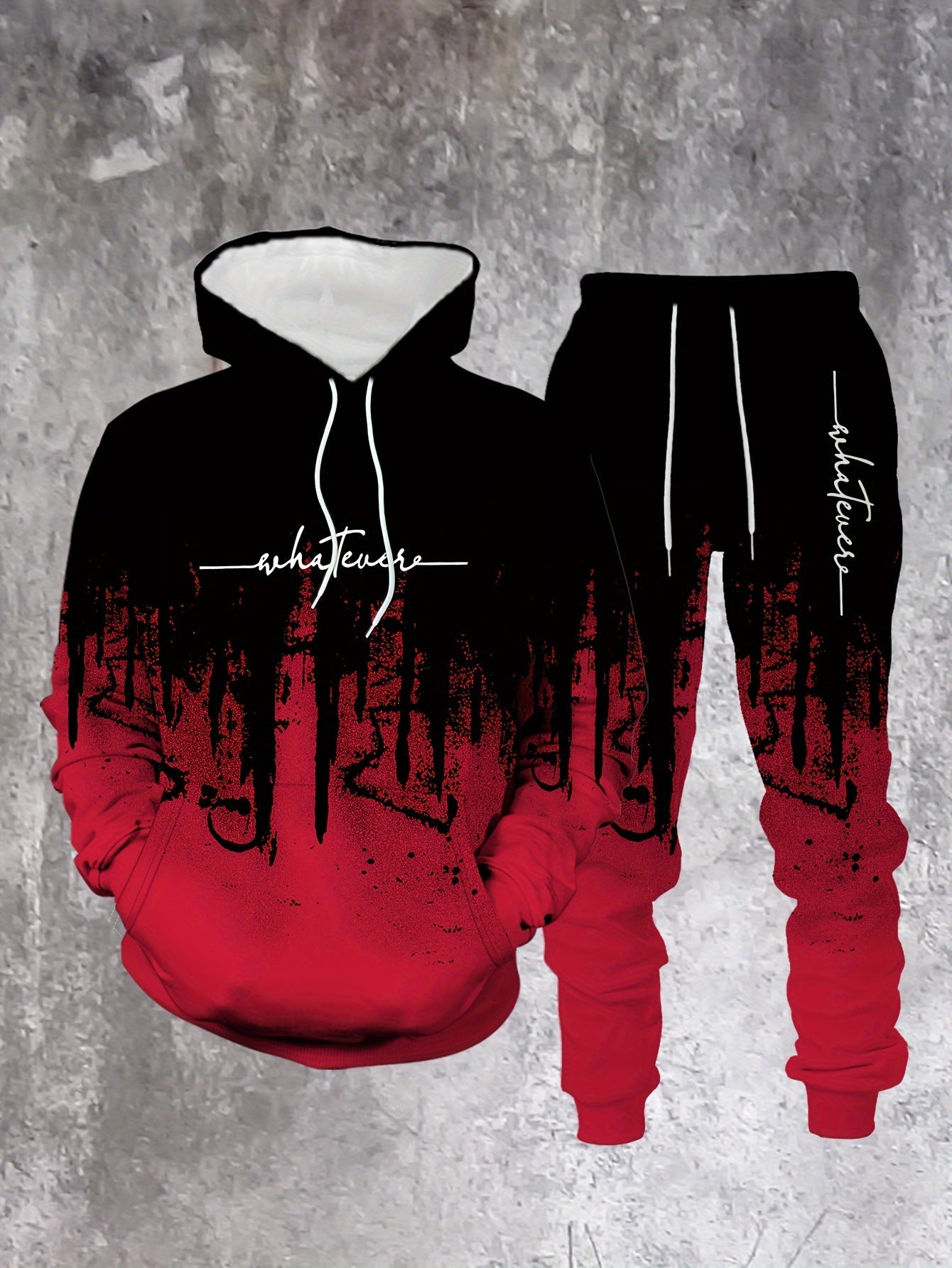 Men's Casual Hoodie & Sweatpants Set - Black & Red Contrast, Letter Print Design, Comfort Fit for Spring/Fall