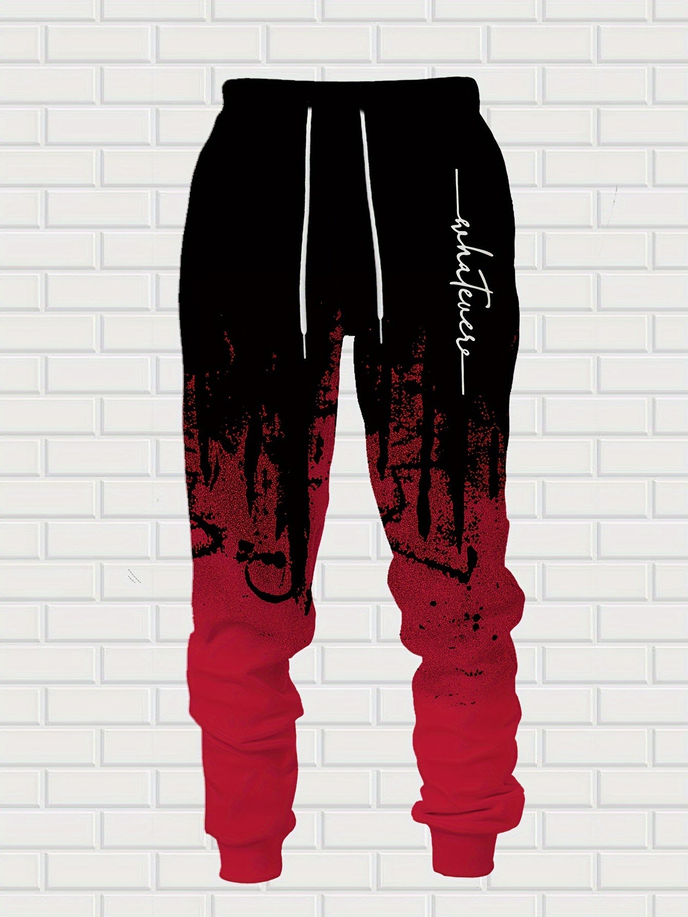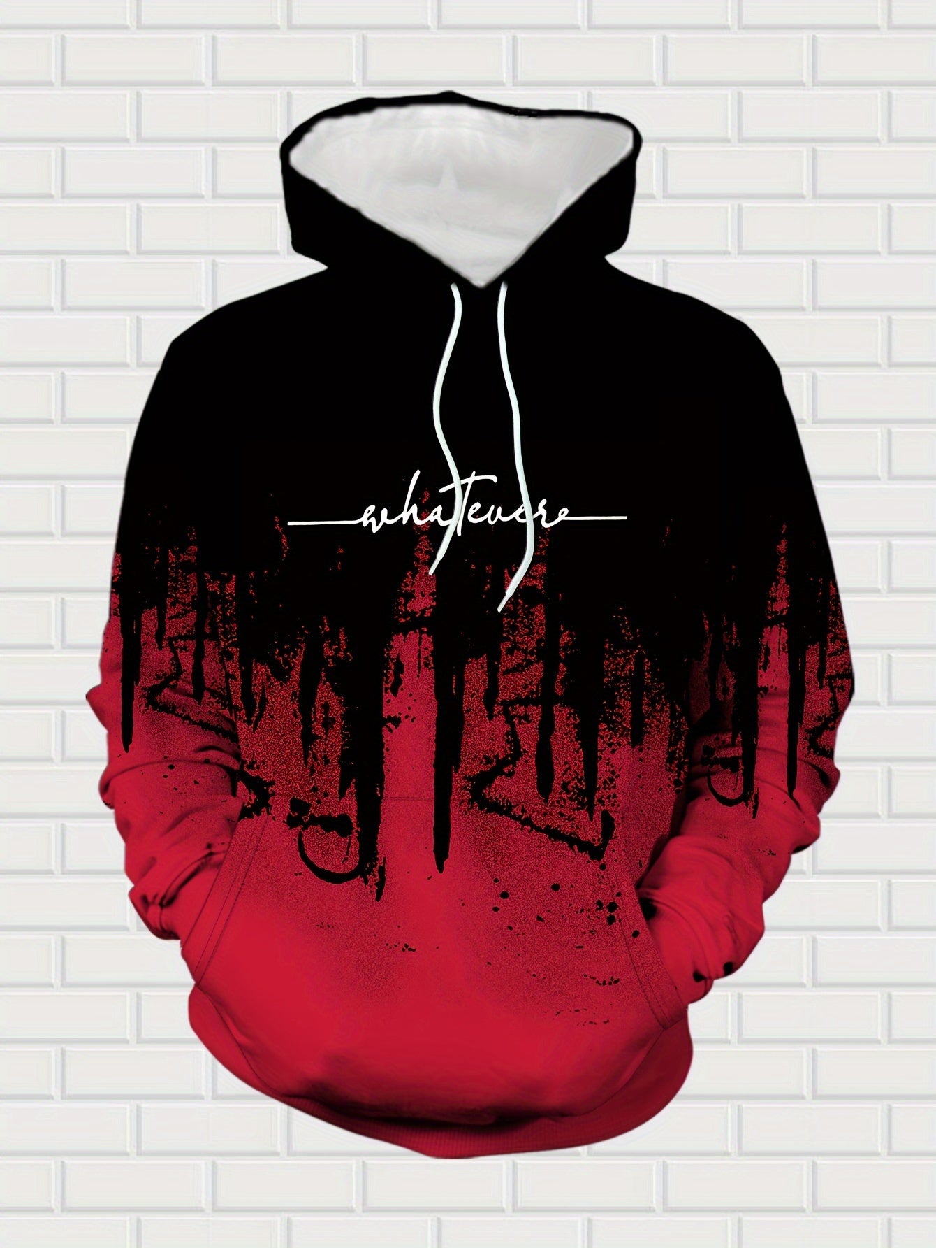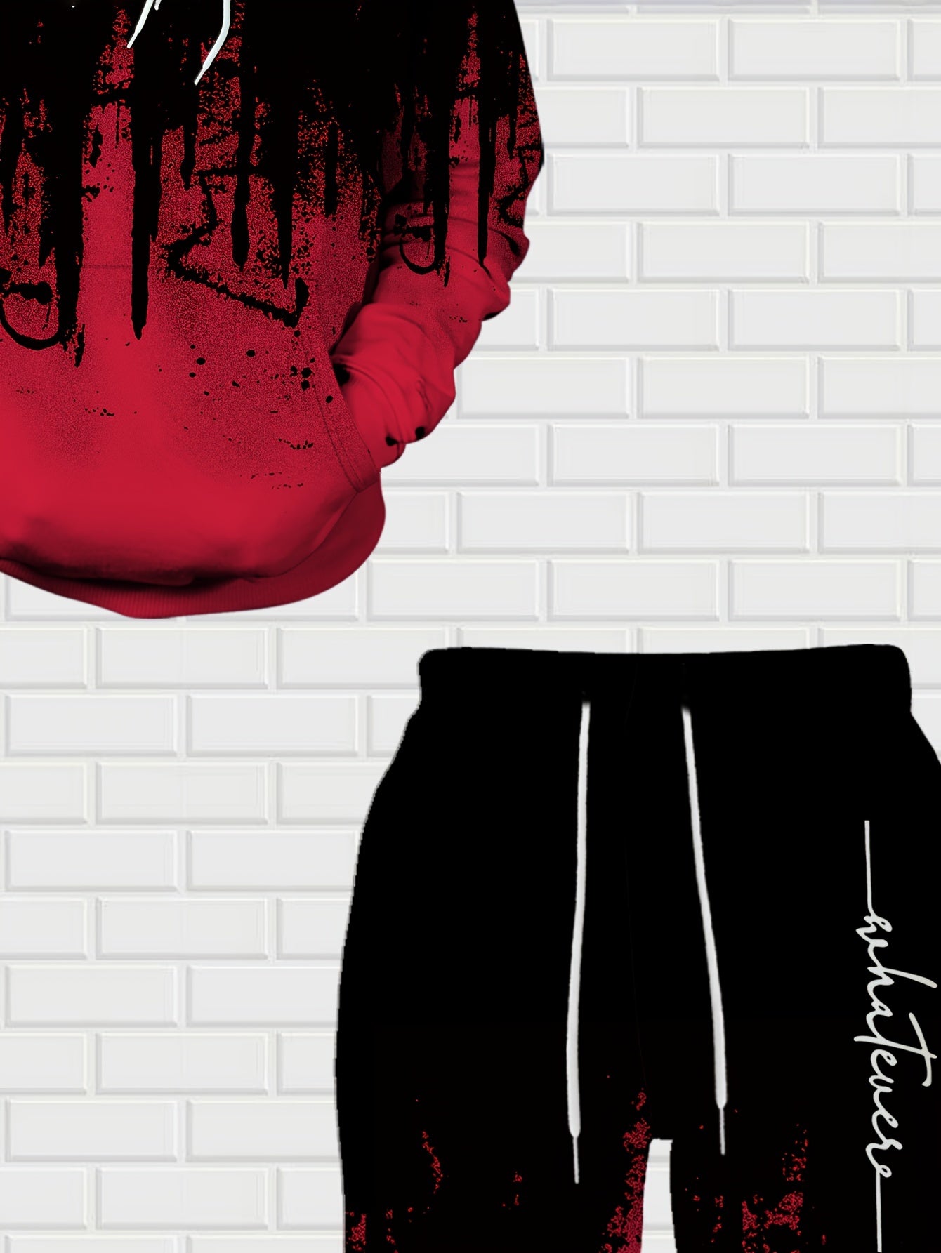 Men's Casual Hoodie & Sweatpants Set - Black & Red Contrast, Letter Print Design, Comfort Fit for Spring/Fall