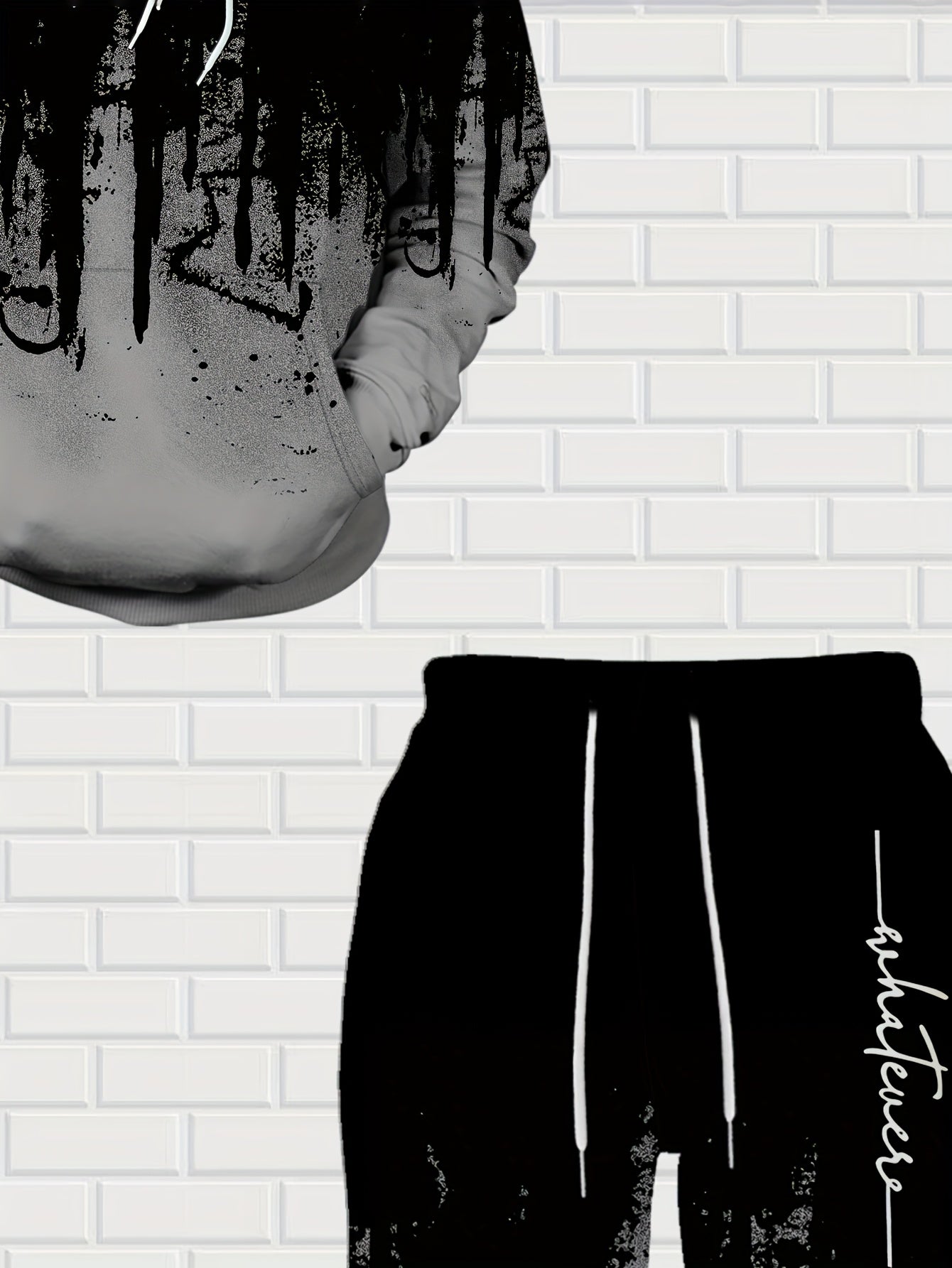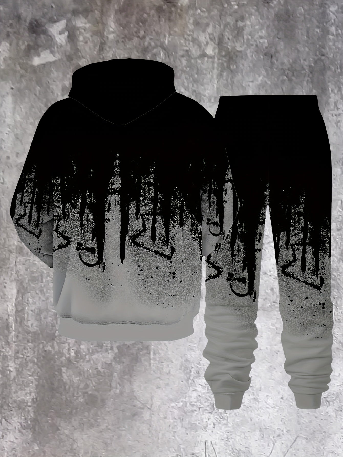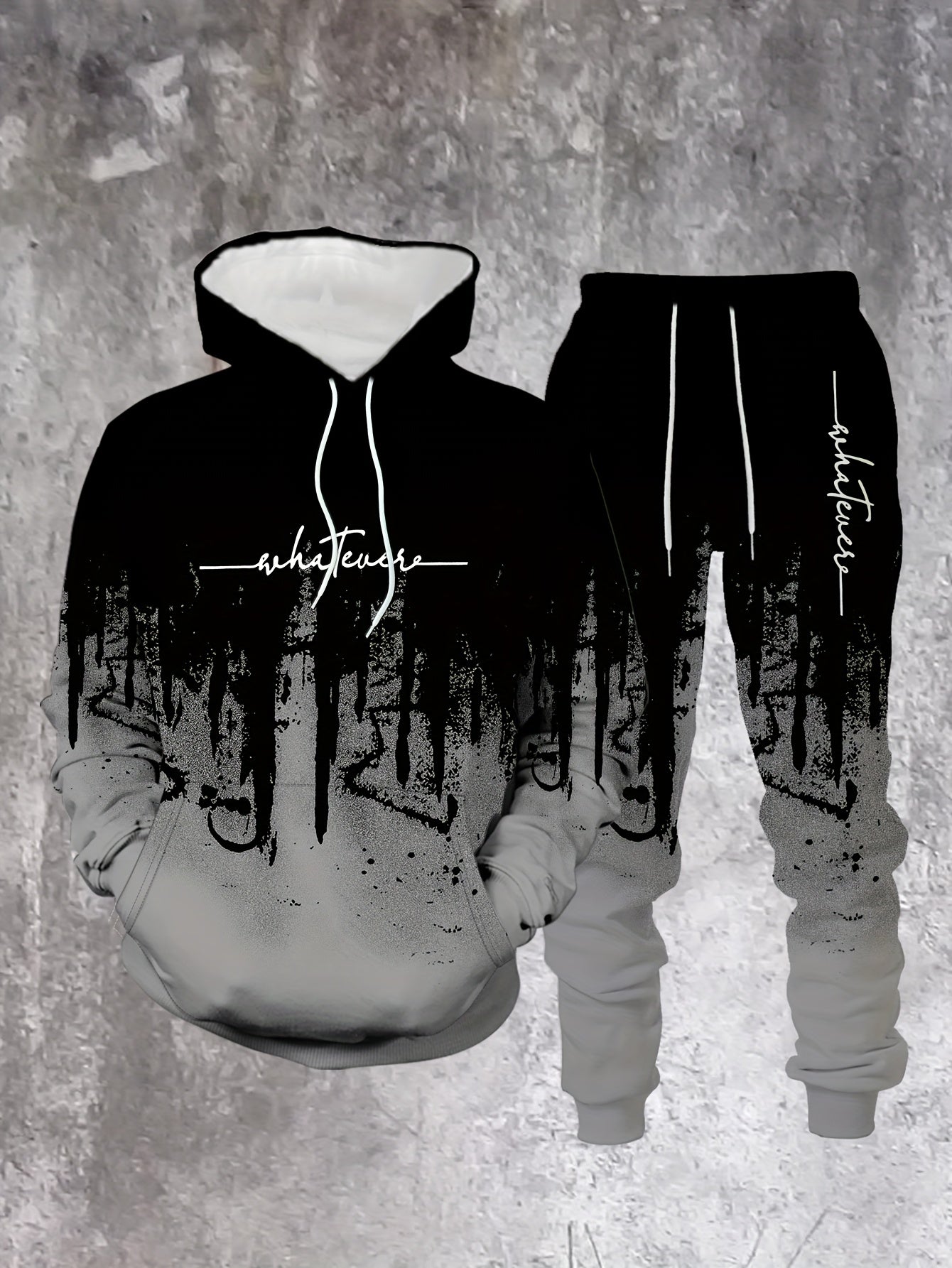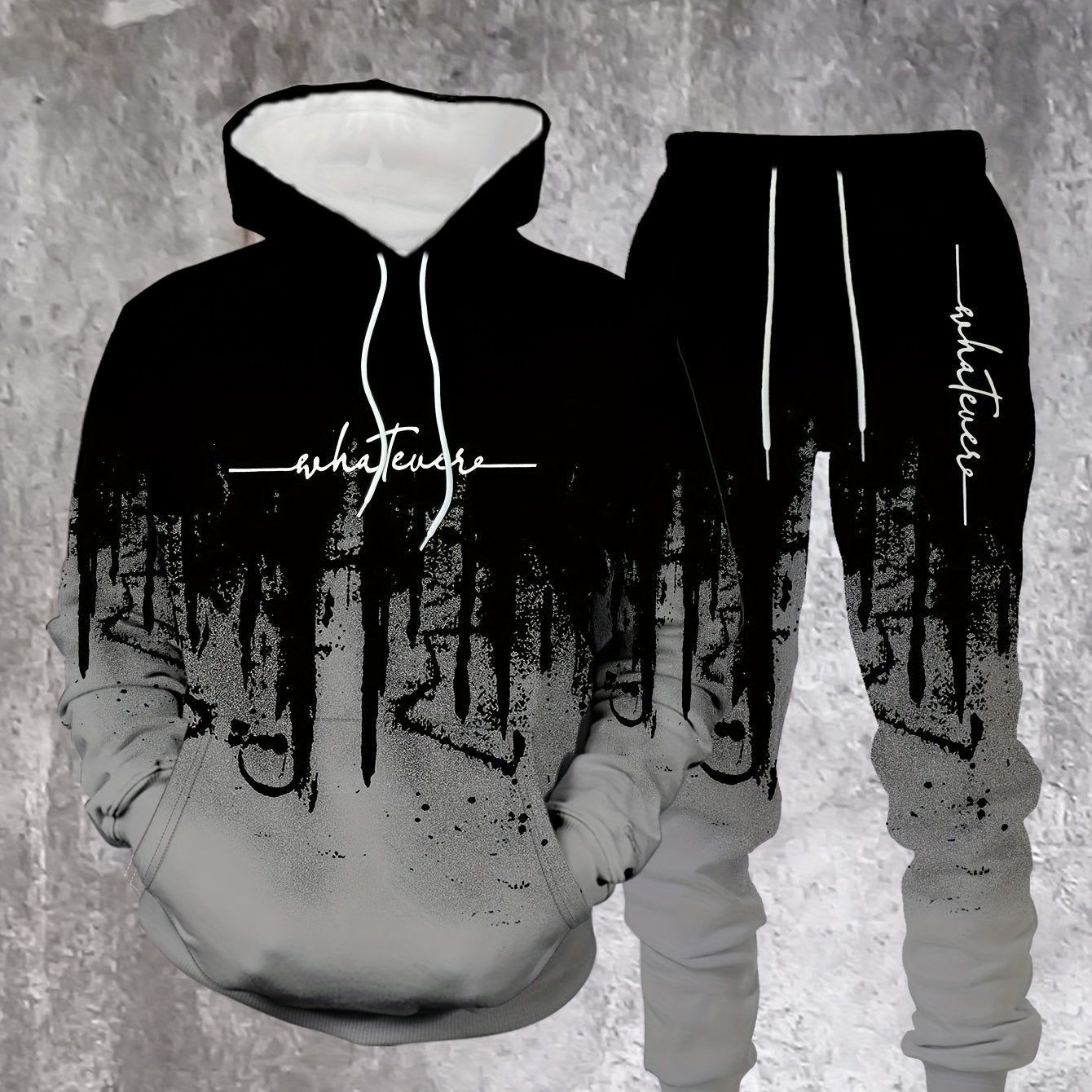 Men's Casual Hoodie & Sweatpants Set - Black & Red Contrast, Letter Print Design, Comfort Fit for Spring/Fall