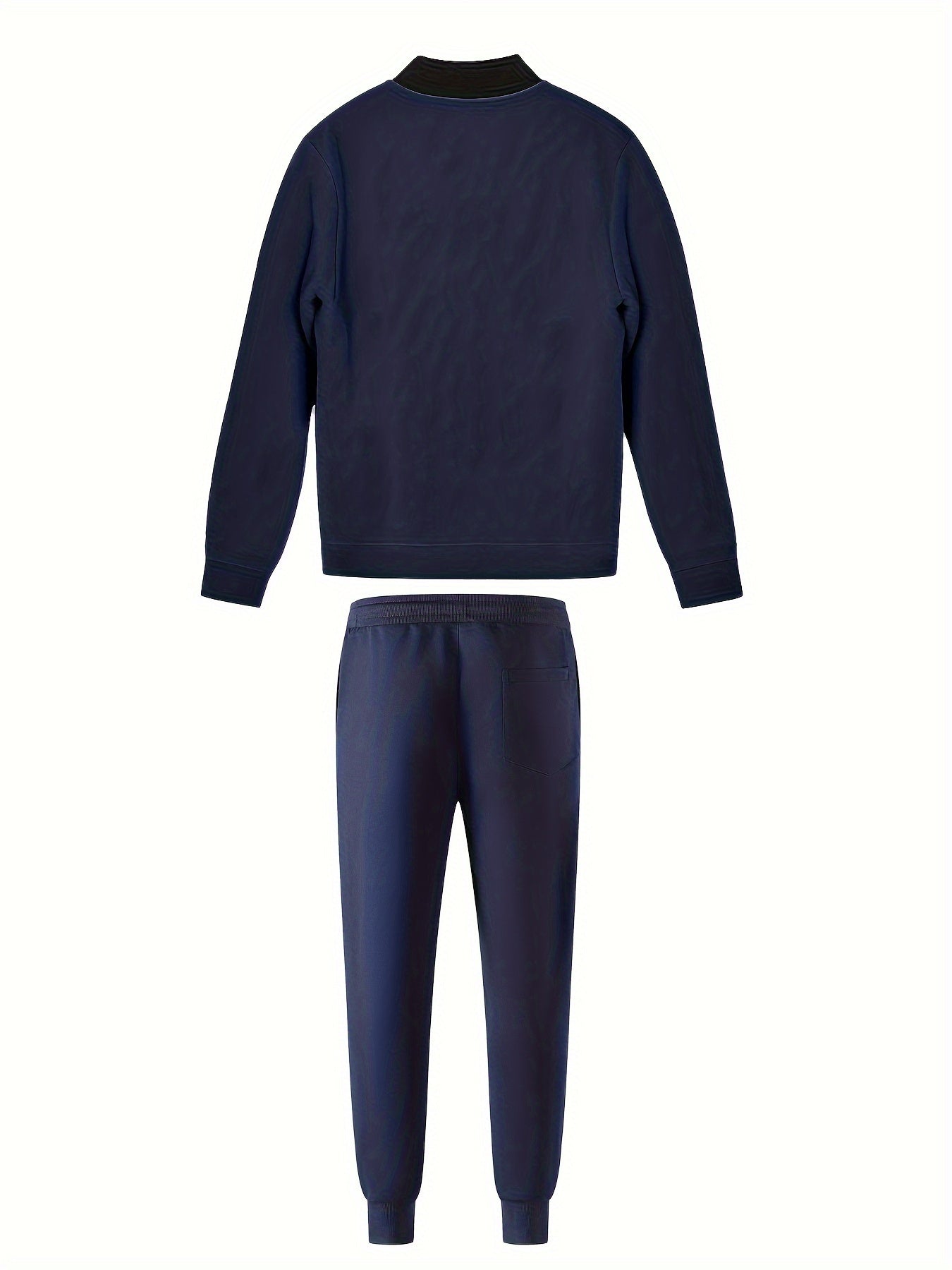 Men's Casual Polyester Sports Suit, Solid Color, Non-Stretch Fabric, Regular Fit, Baseball Collar Jacket and Sweatpants, Suitable for Spring/Autumn - Braided Eyelash Set