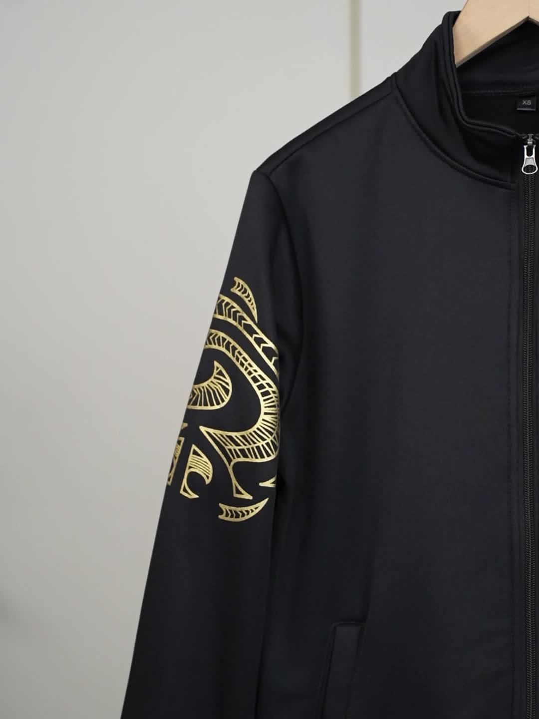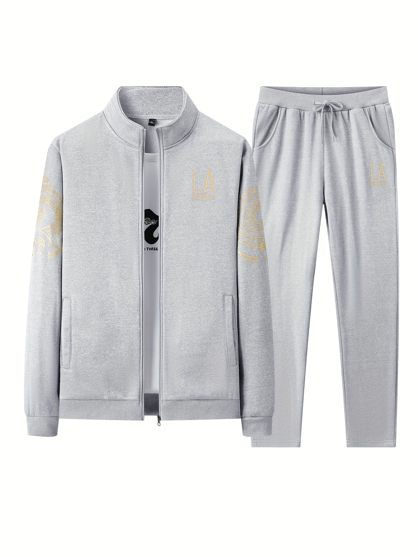 Men's Casual Print Sweatshirt & Joggers Set - Polyester, Stand Collar, Zip-Up Jacket for Spring/Fall