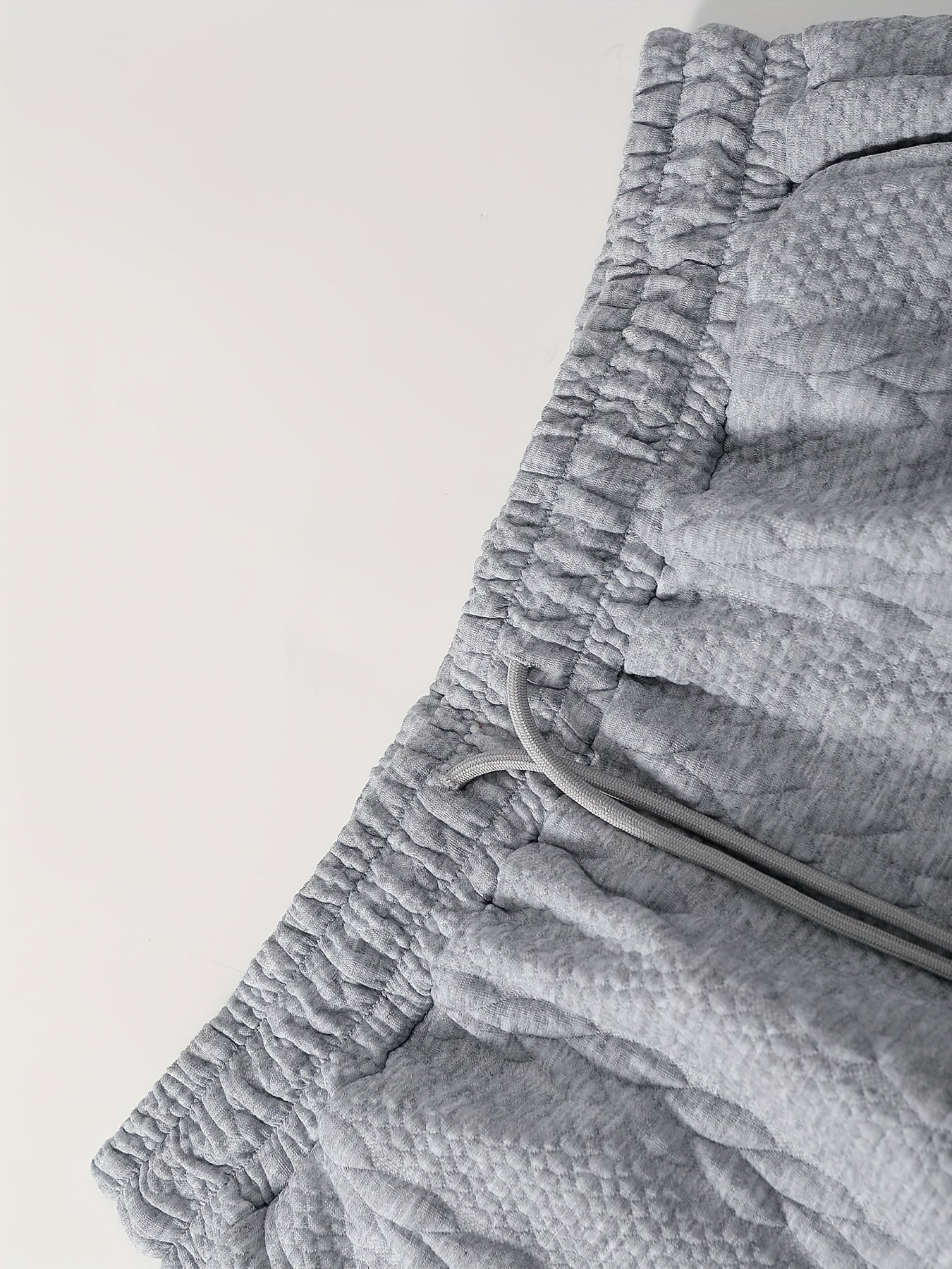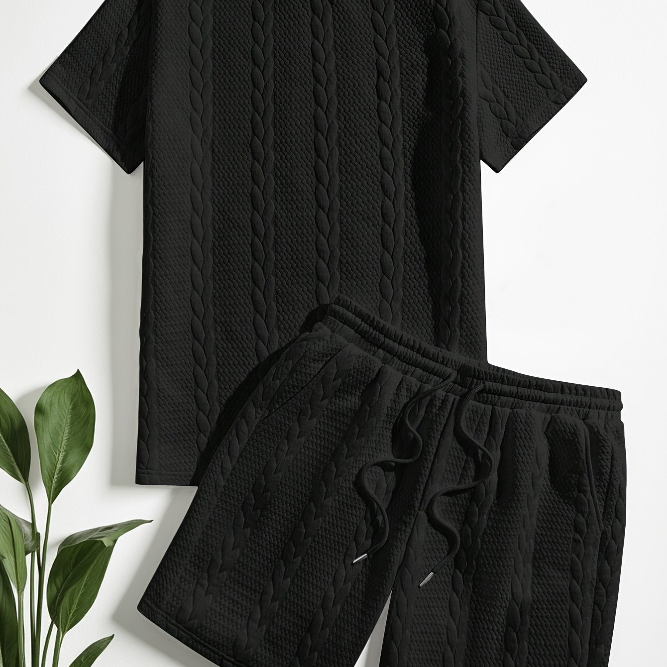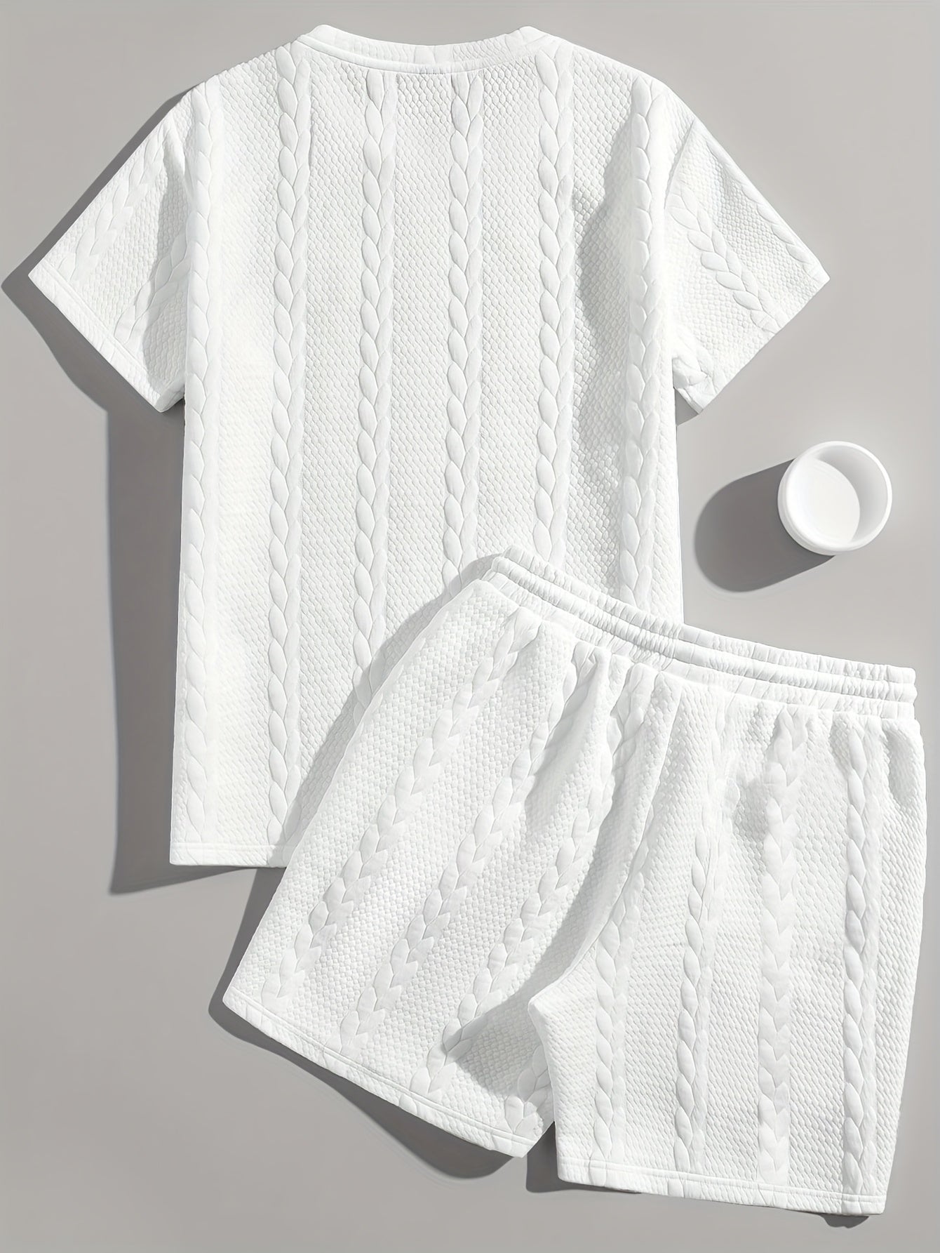 Men'S Casual Short Sleeve T-Shirt and Shorts Set - Knit, Light Gray, Two-Piece, All-Season Comfort, Drawstring Waist, Casual Style, Allseason Comfortwear | Casual Style Set | Knit Texture, Thick