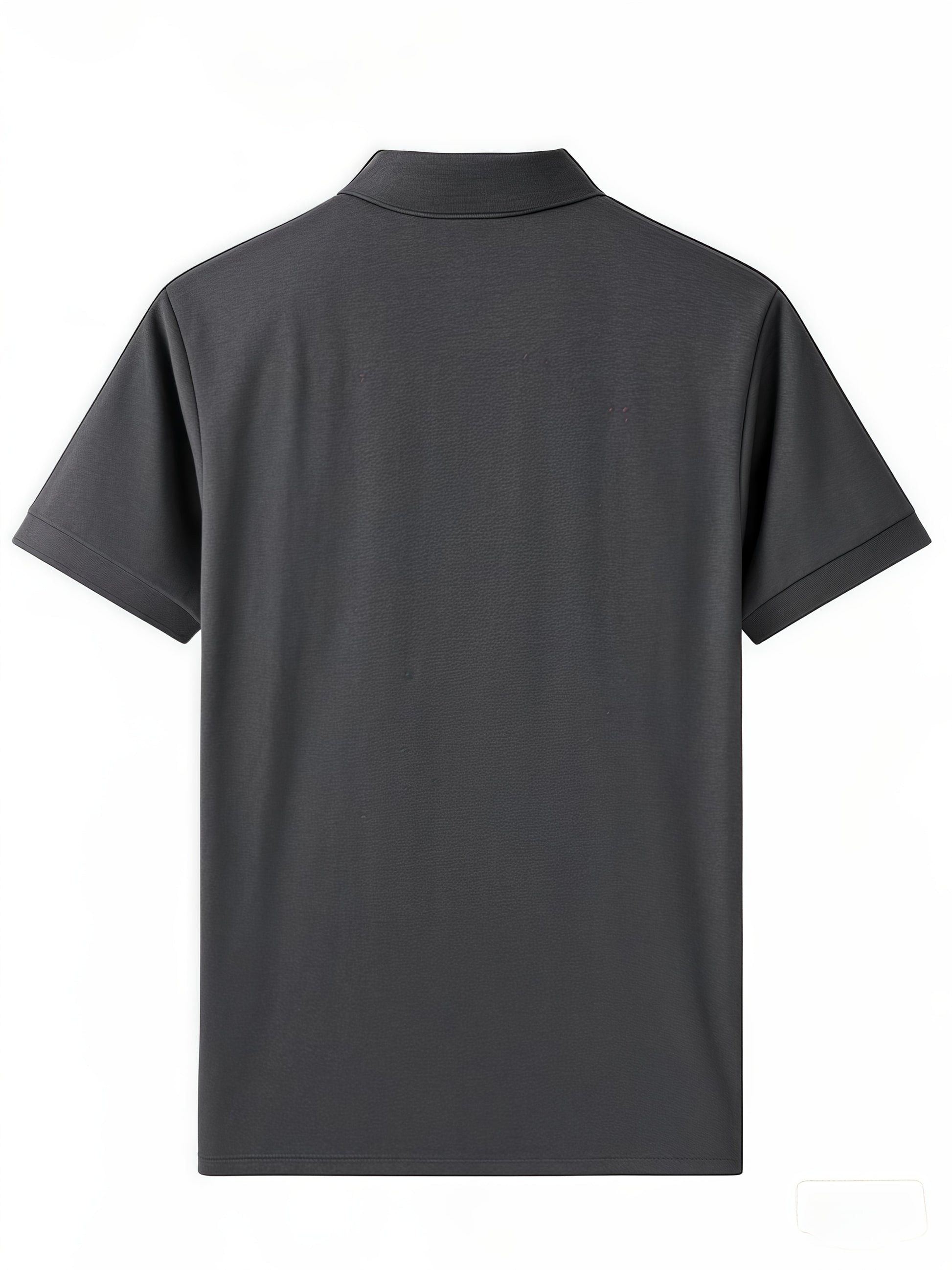 Men'S Casual Short Sleeve T-Shirt - Solid Black, Regular Fit, Button-Up Collar, Lightweight Polyester Blend for Spring & Summer, Spring Summer Apparel | Classic Collar Tee | Glossy Texture