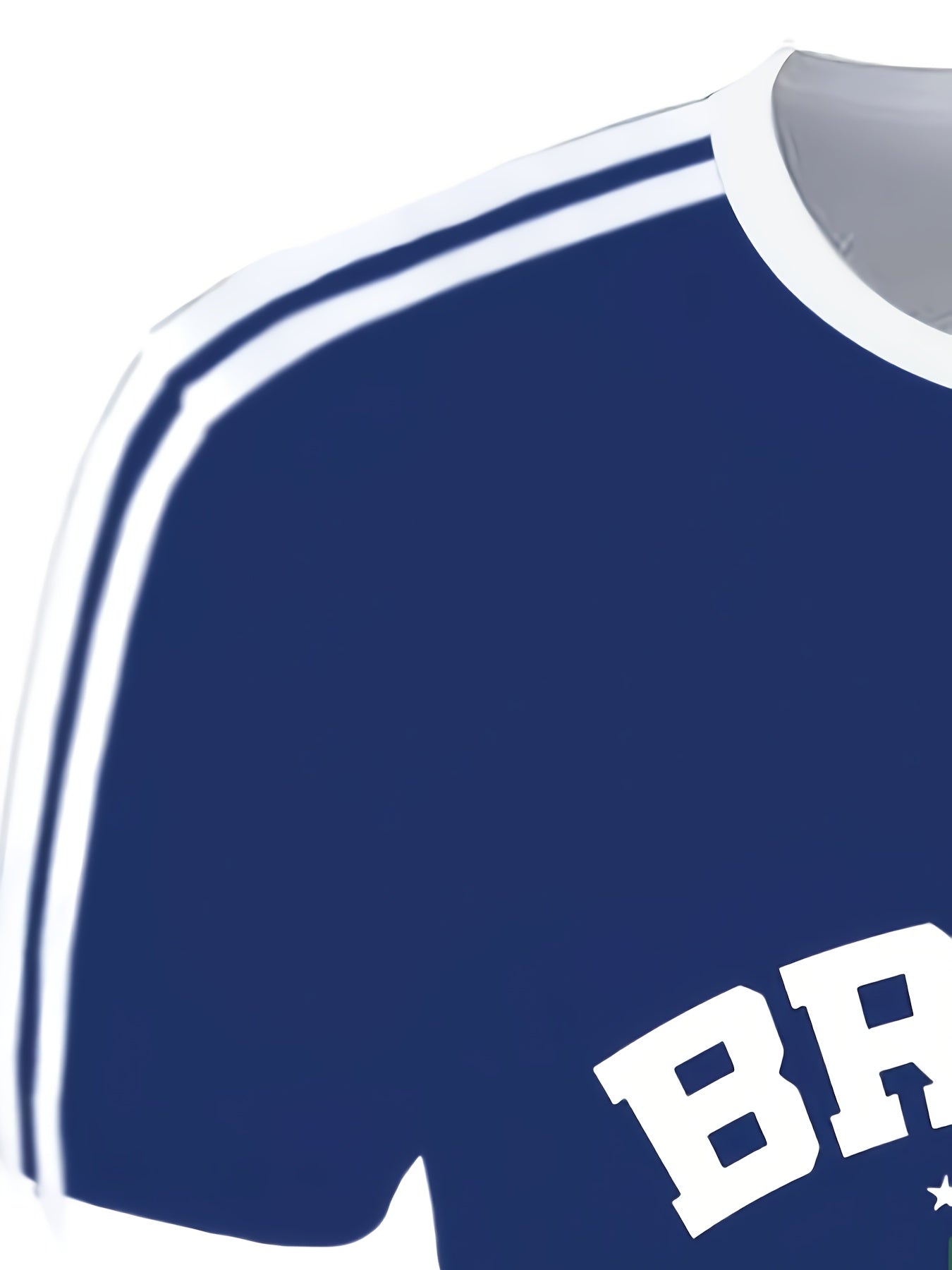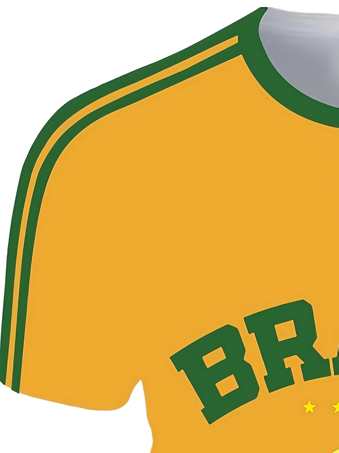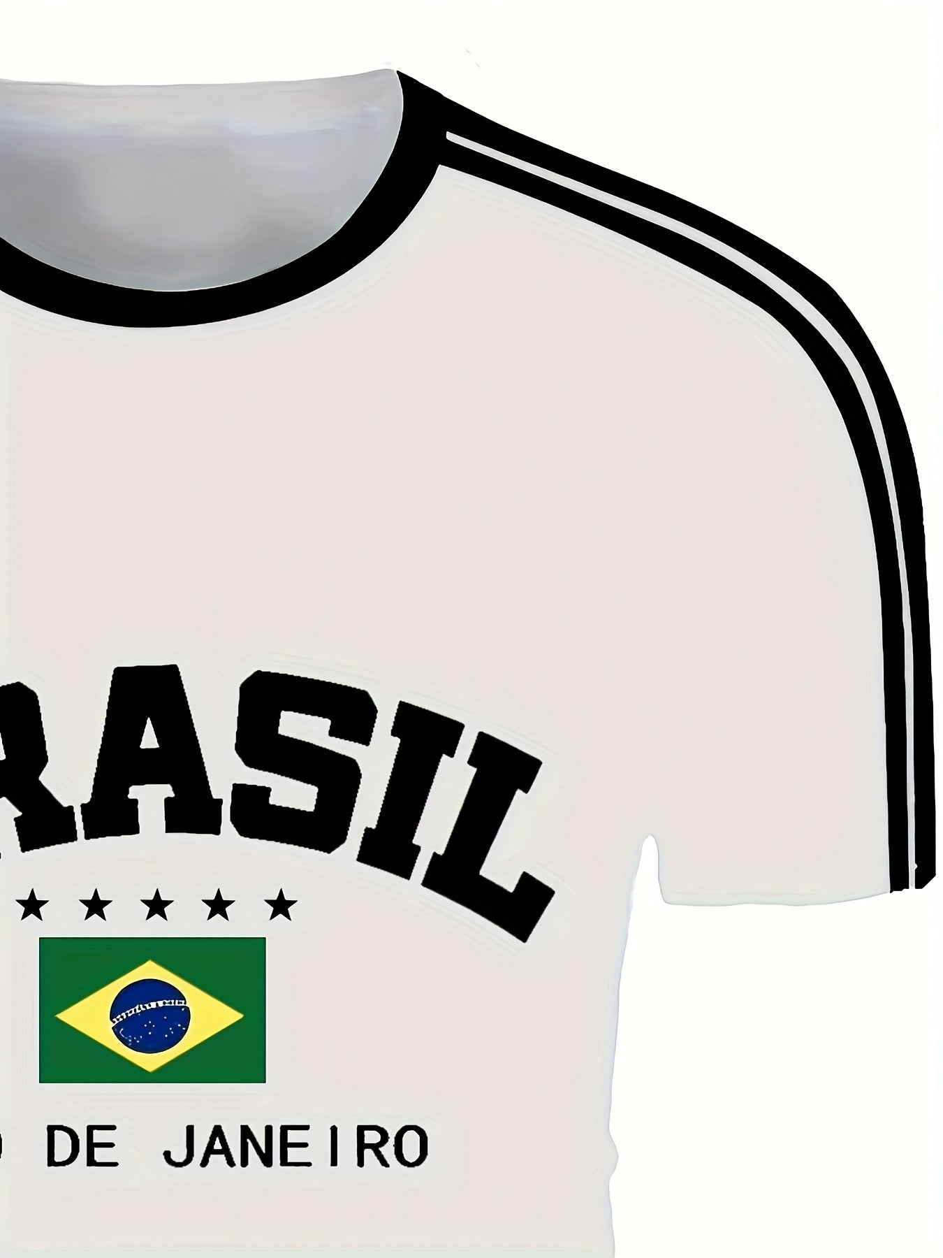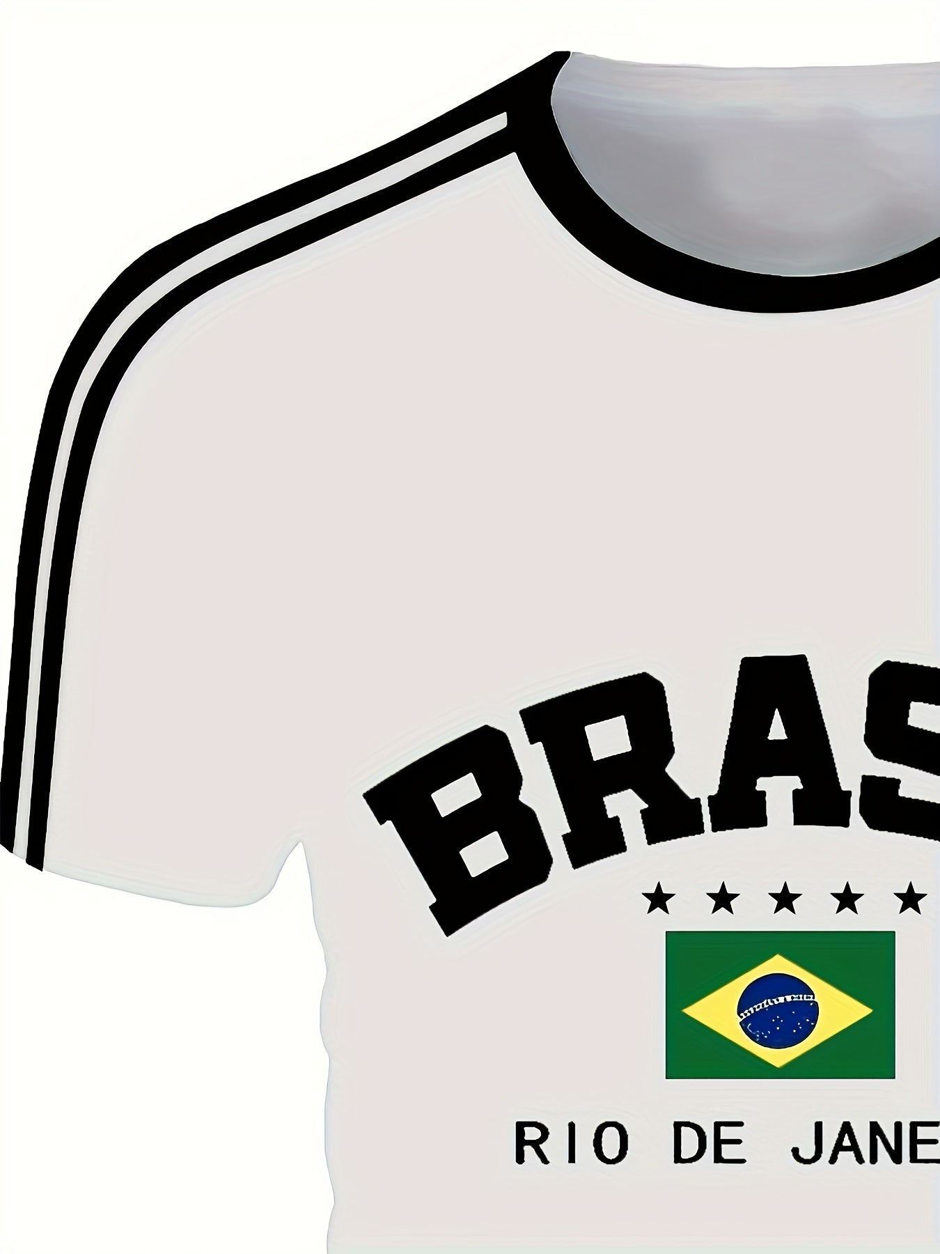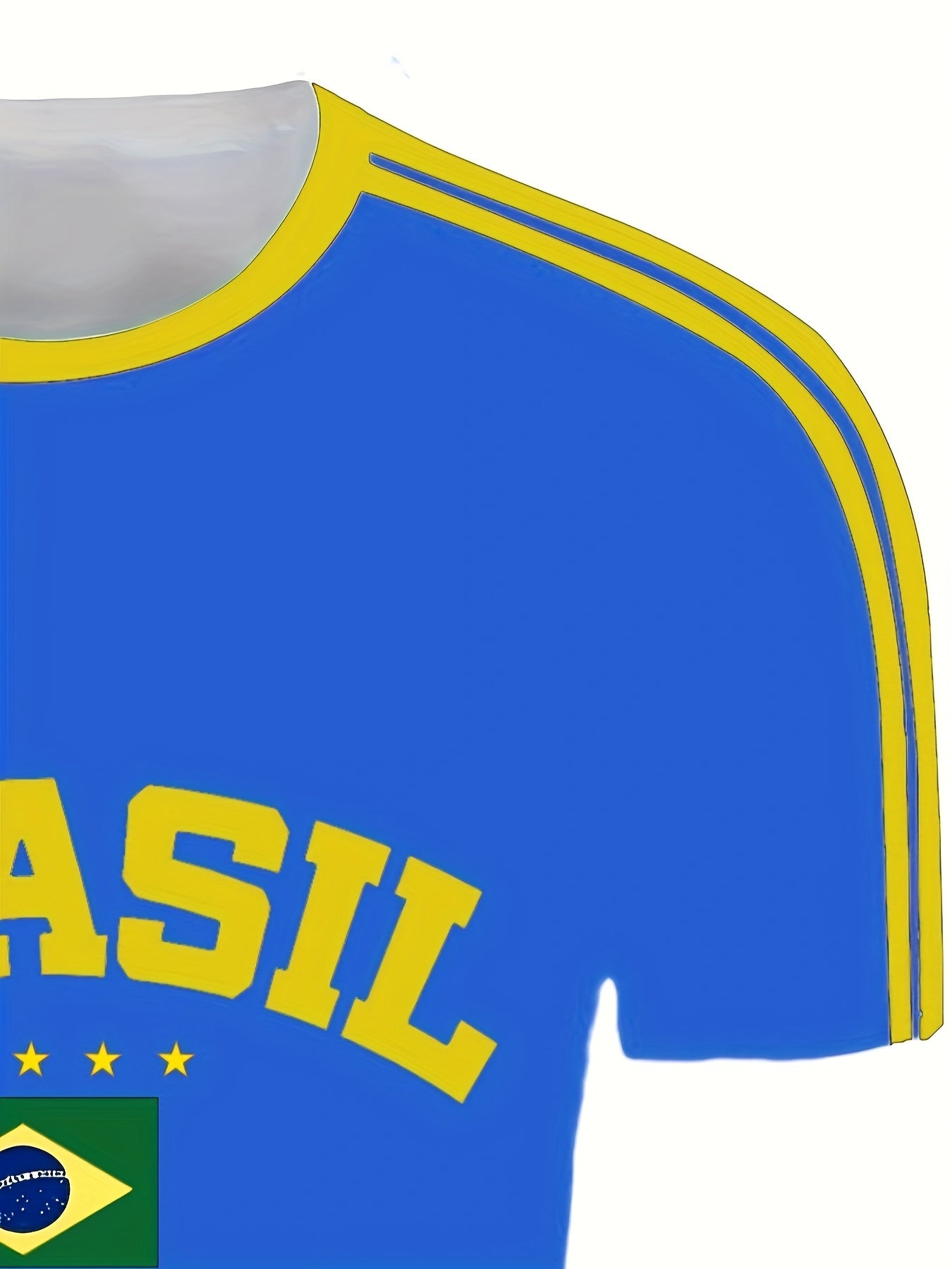 Men'S Casual Short-Sleeve T-Shirt with 3D Digital Printing, Round Neck, Brazilian Style, Made of Slightly Stretchy Polyester Knit Fabric, Suitable for Summer Outdoor Activities And Everyday Wear.