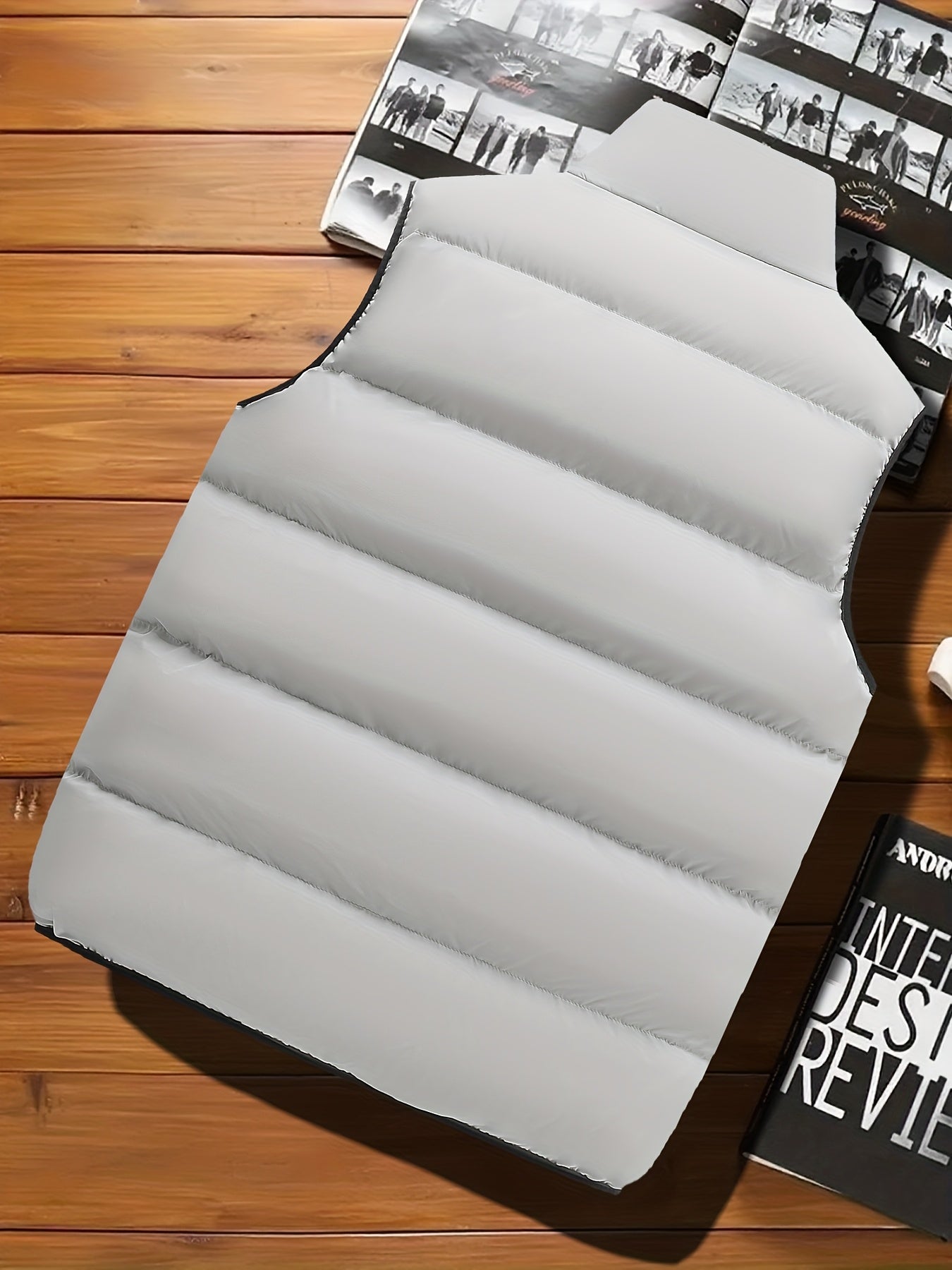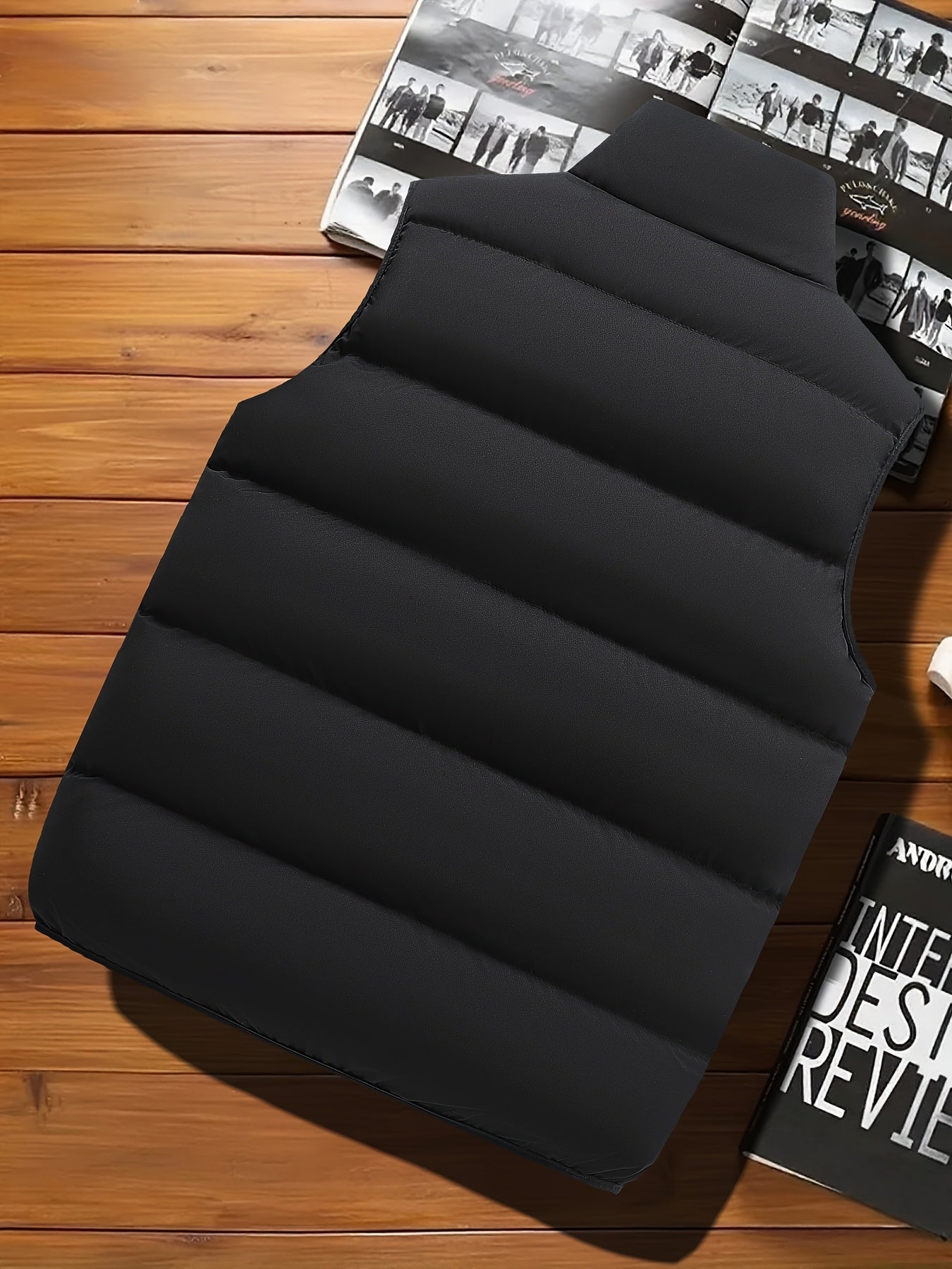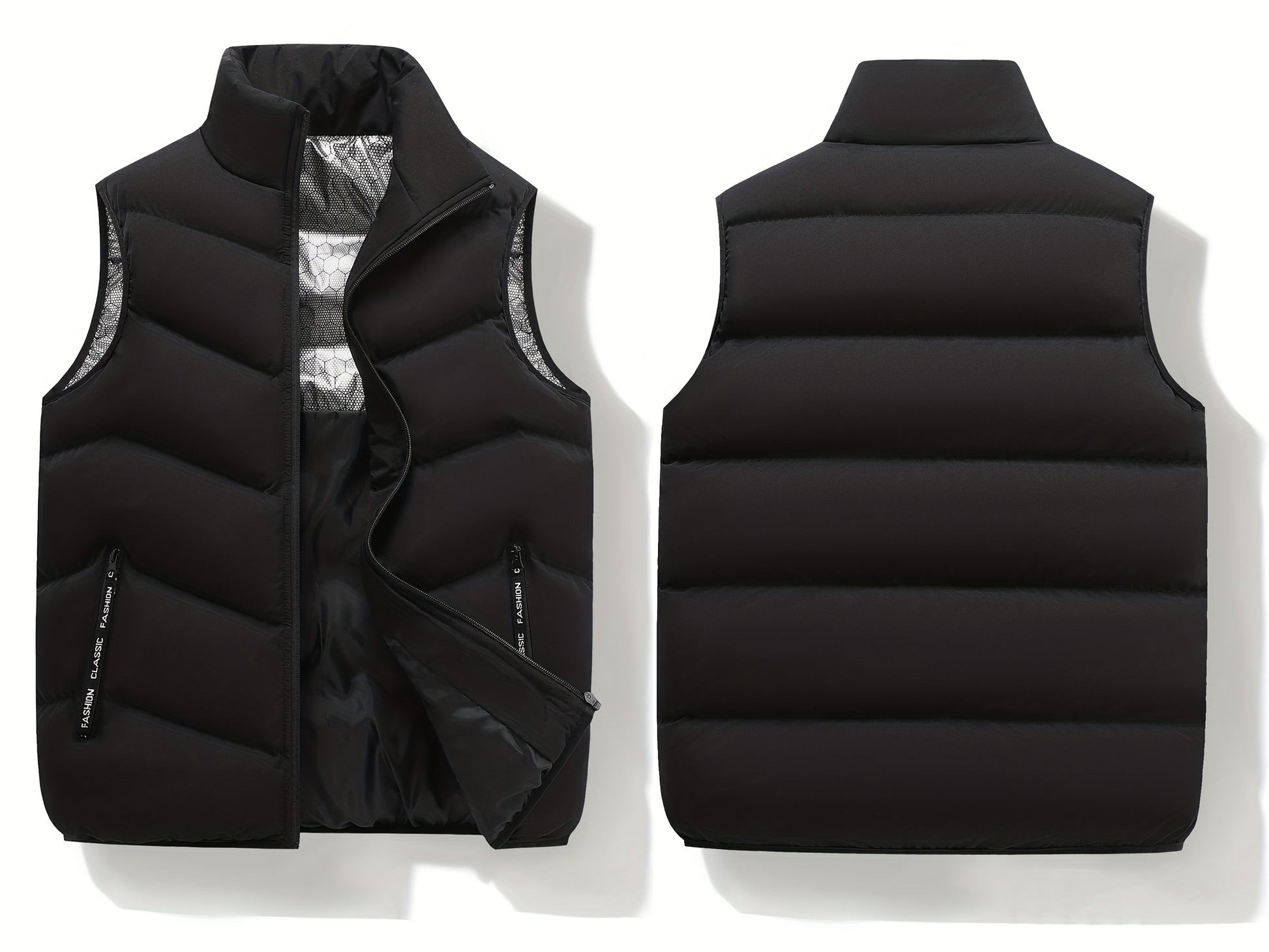 Men's Casual Sleeveless Stand Collar Vest, Thickened Warm Sweater, Autumn Winter Solid Color Zip-up Jacket, Coldproof Outdoor Top, Graphene Warmth, Fashion Webbing, Suitable for Daily Activities, Holiday Gift