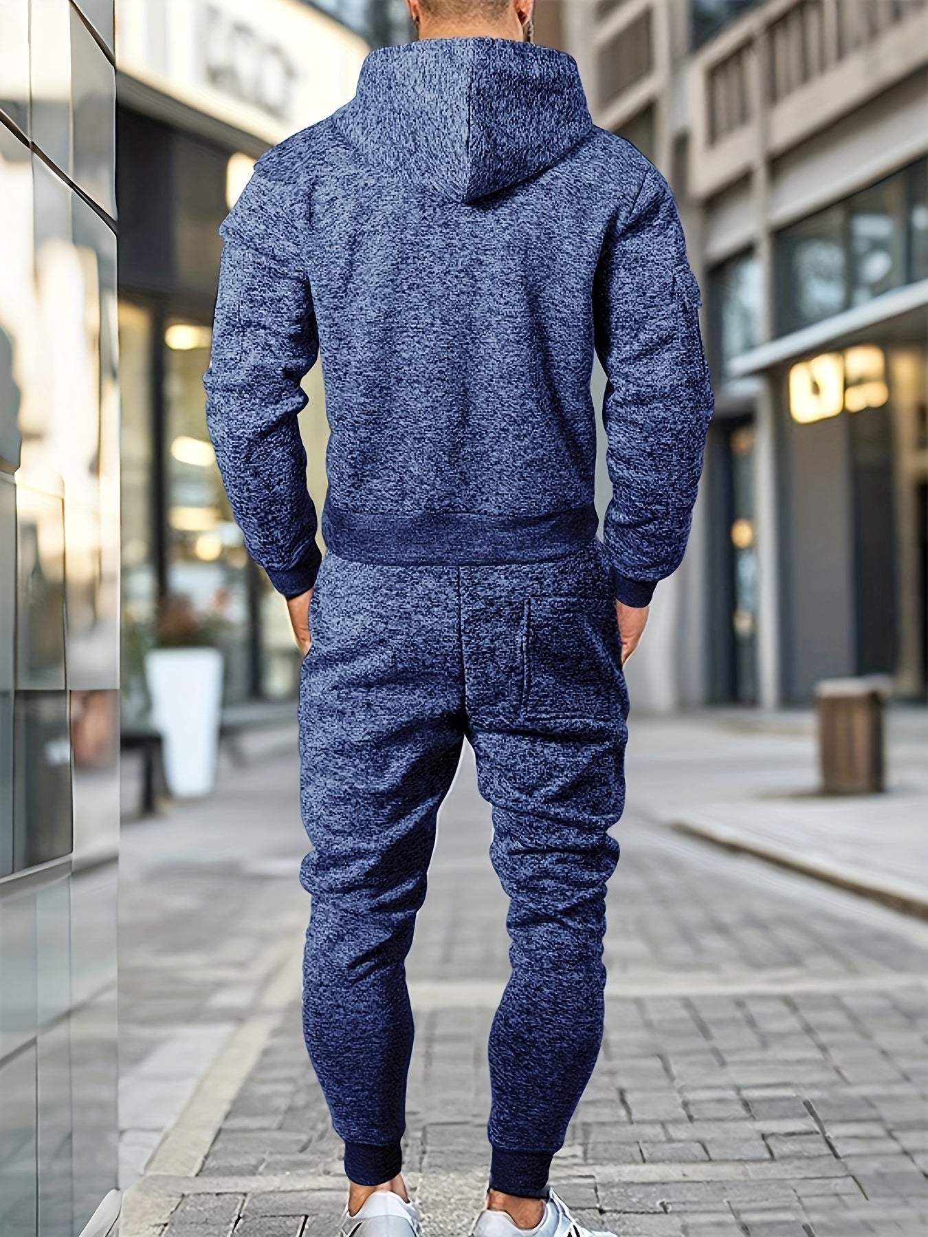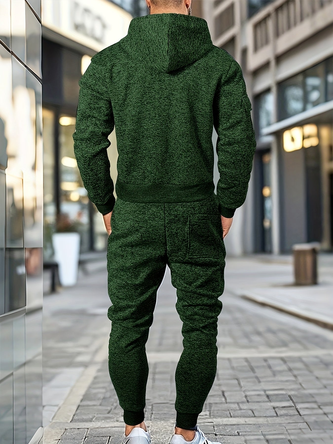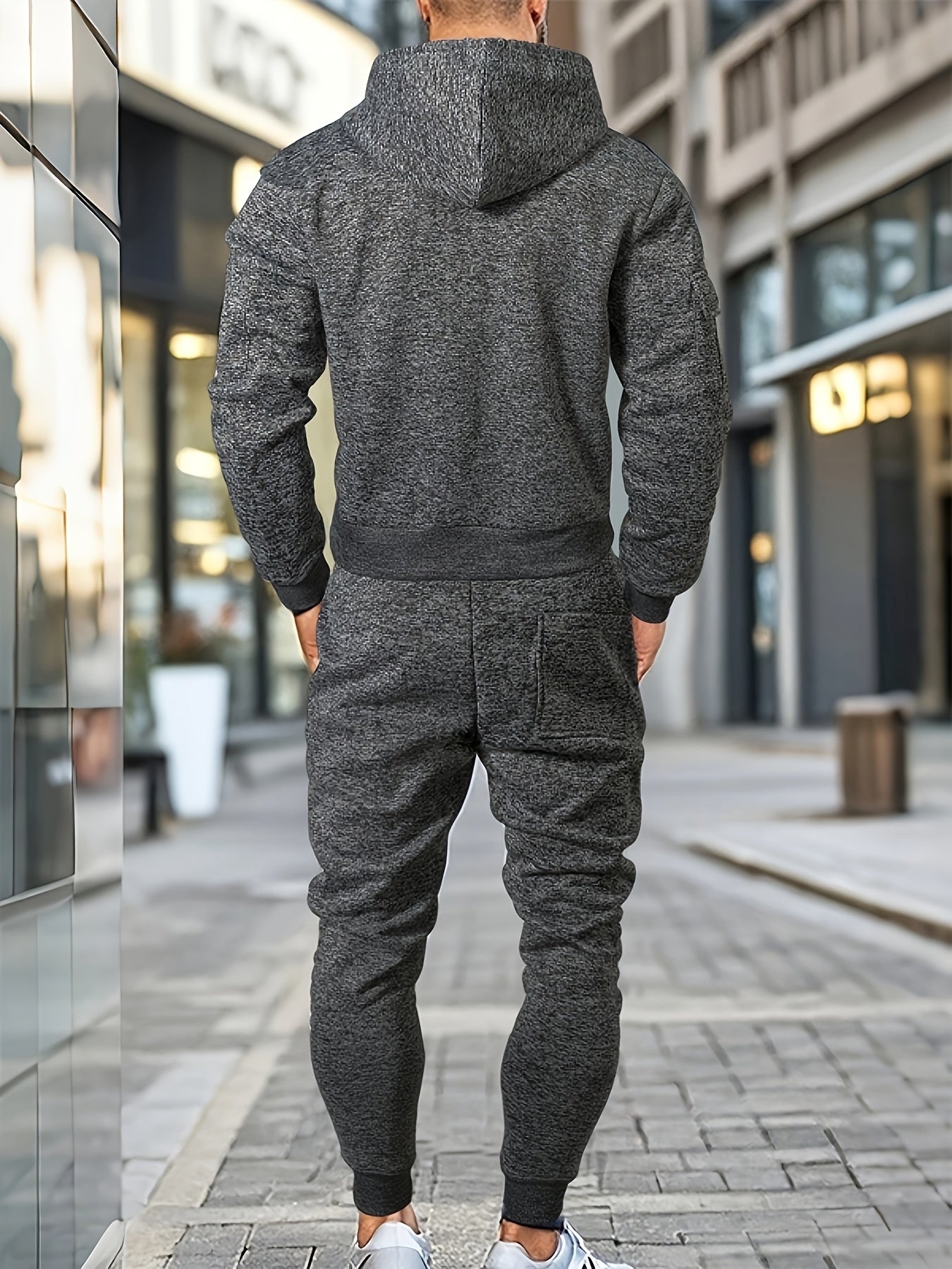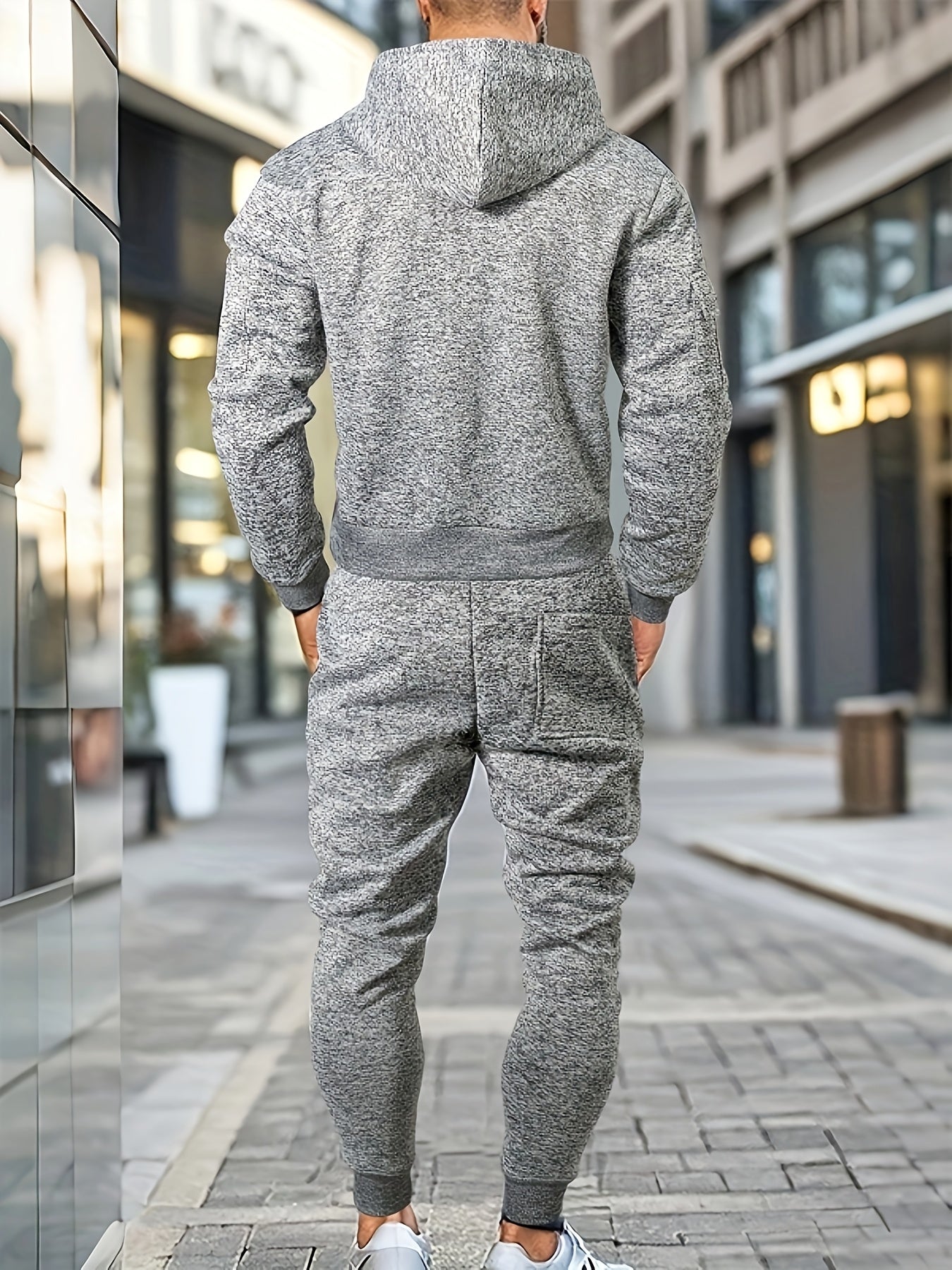 Men's Casual Sports Hoodie and Pants Set with Zipper, Drawstring, Fleece-Lined - Polyester Blend, Machine Washable