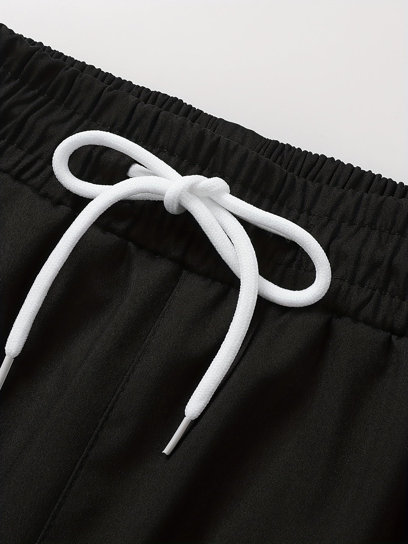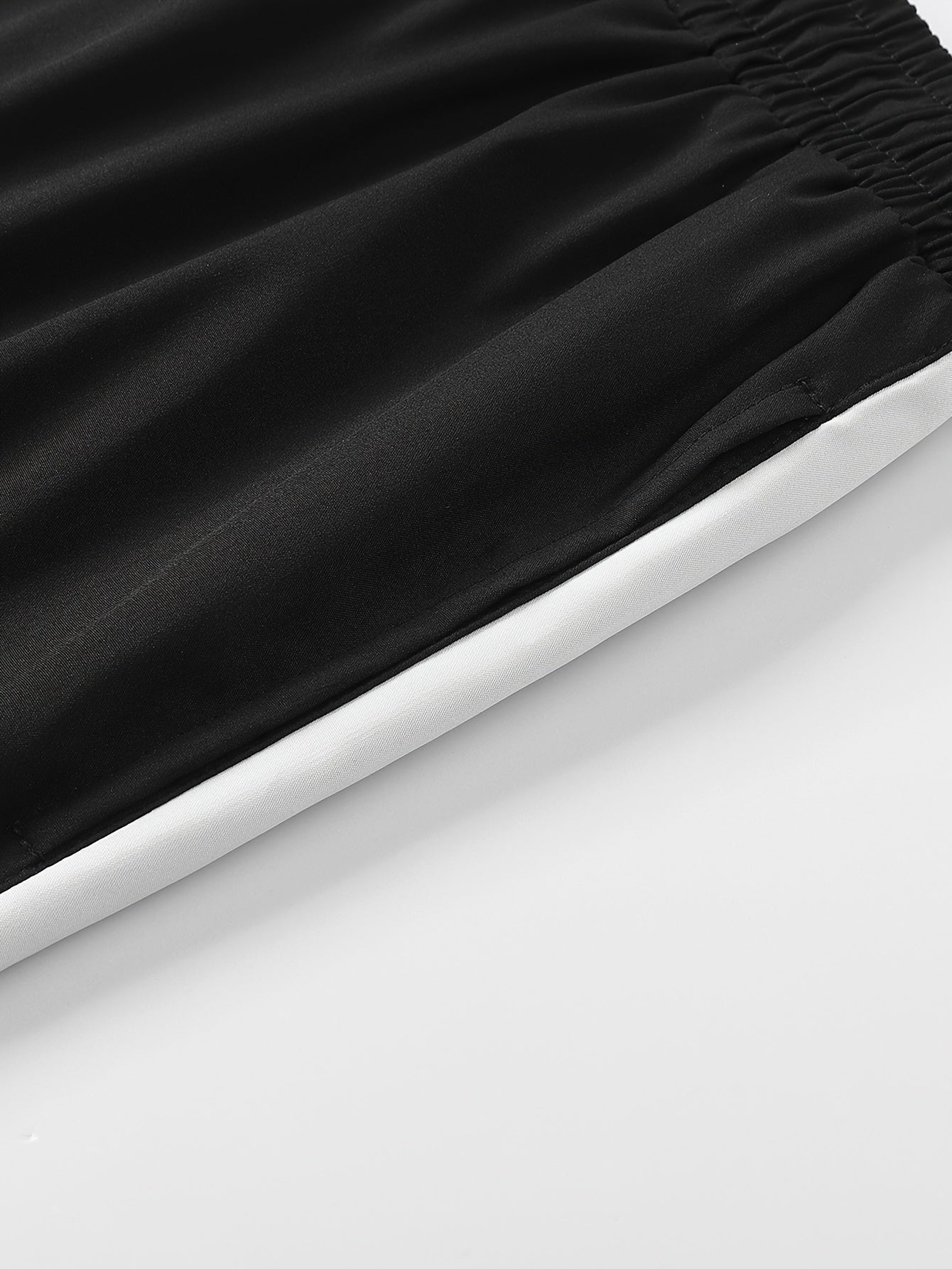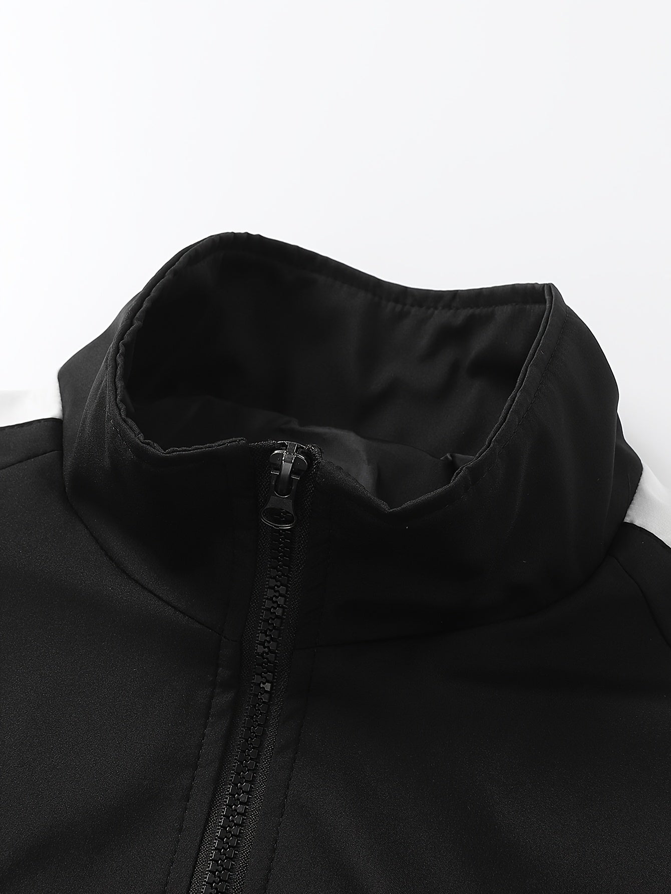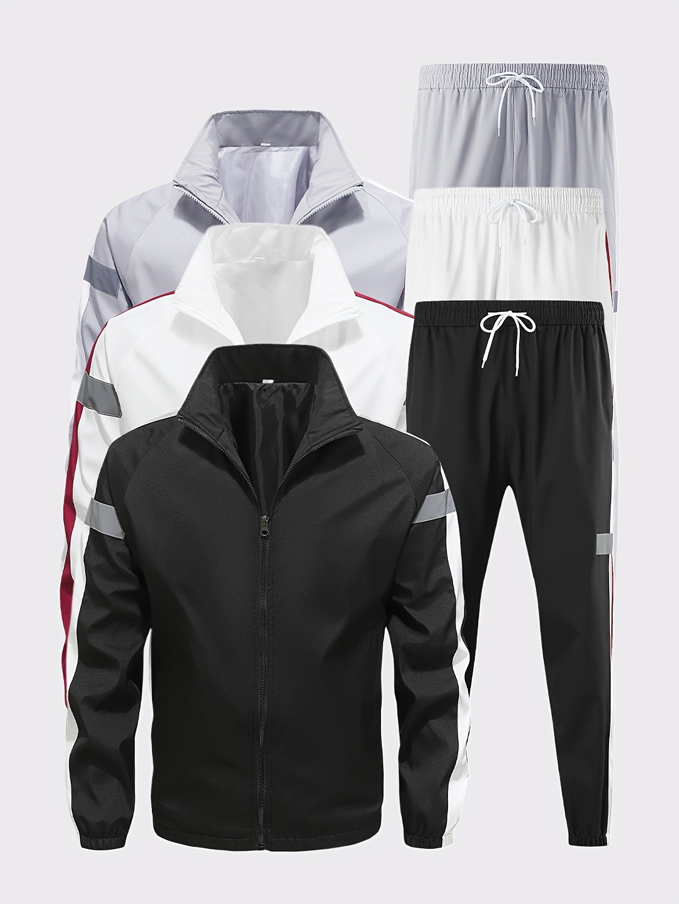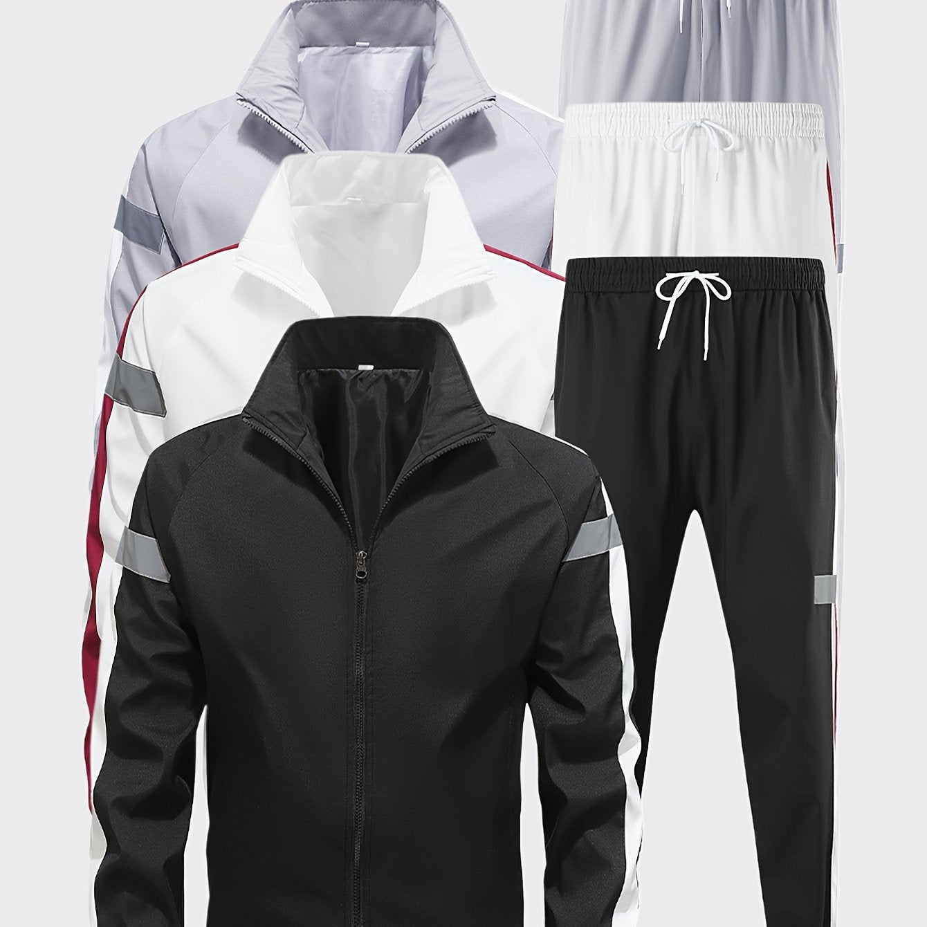 Men'S Casual Sportswear Set - 2pcs Autumn Fashionable Lightweight Fleece Jacket & Pants, Black & White with Red & Gray Accents, Perfect for Outdoor Activities & Casual Wear, Outdoor Casual Wear | Stylish Sportswear | Comforta