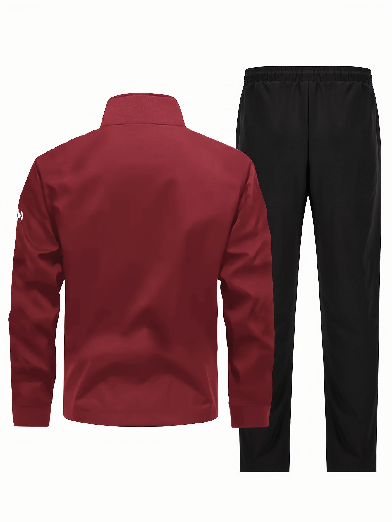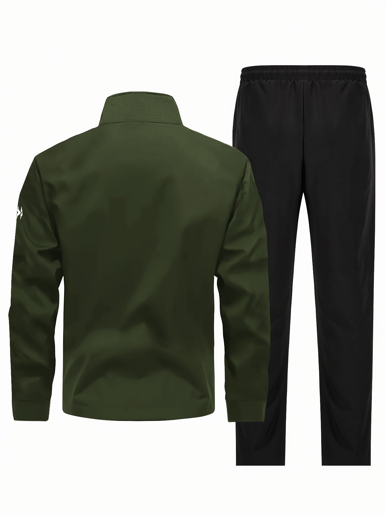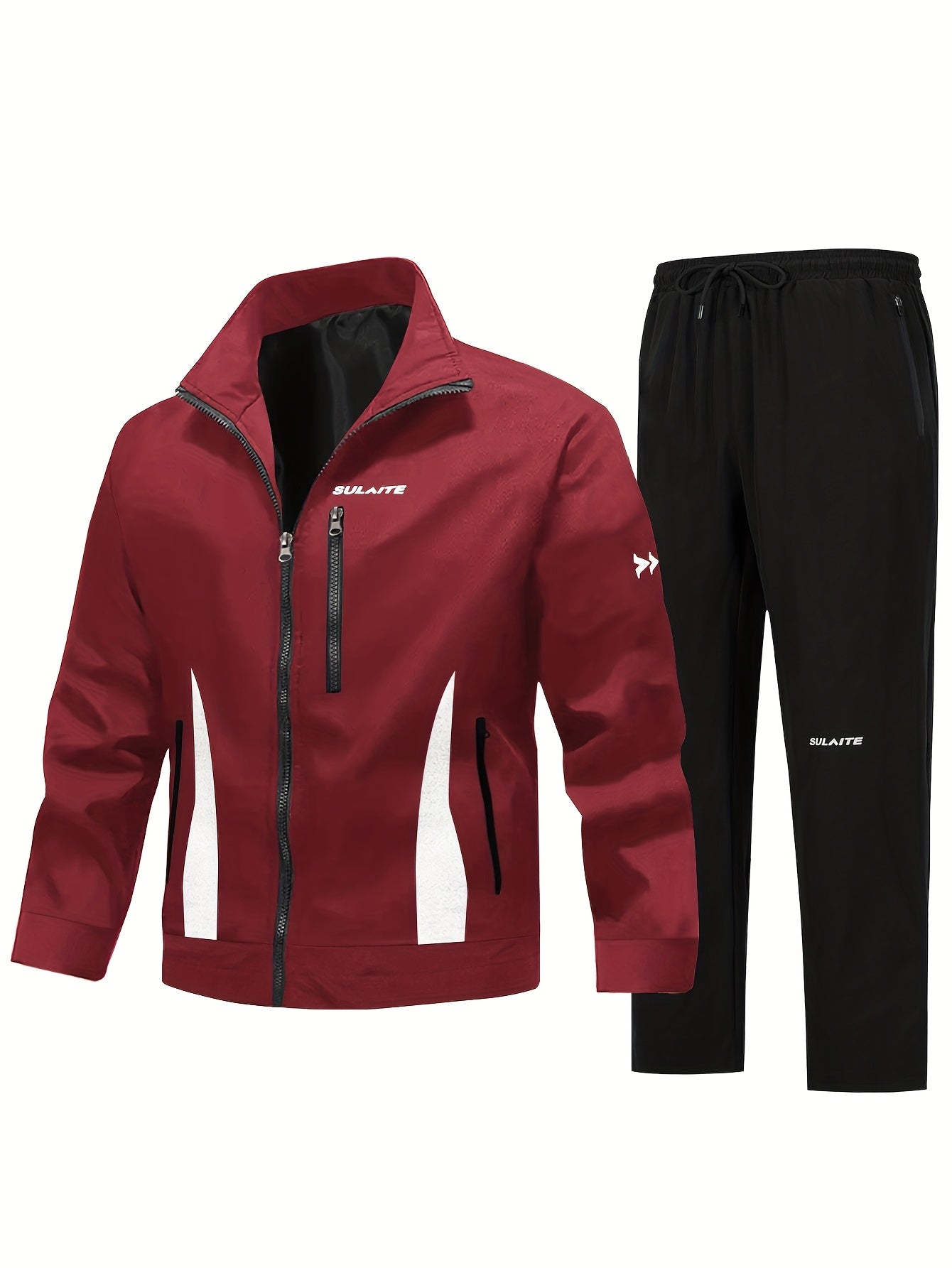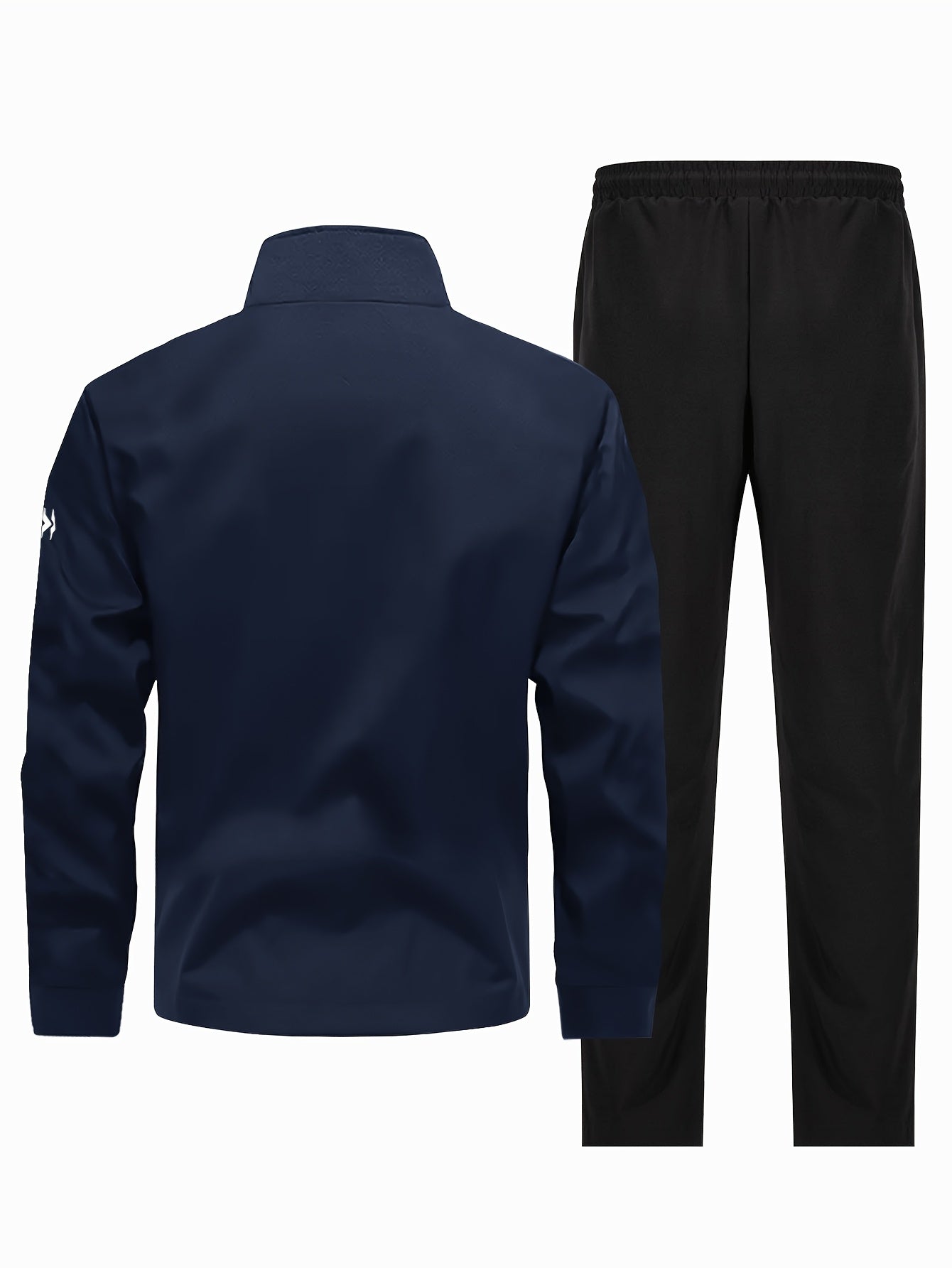 Men'S Casual Sportswear Set - Black Jacket with Zipper Pockets & White Accents, Matching Pants, Perfect for Spring & Fall, Sportswear Outfit|Zippered Jacket|Functional Pockets