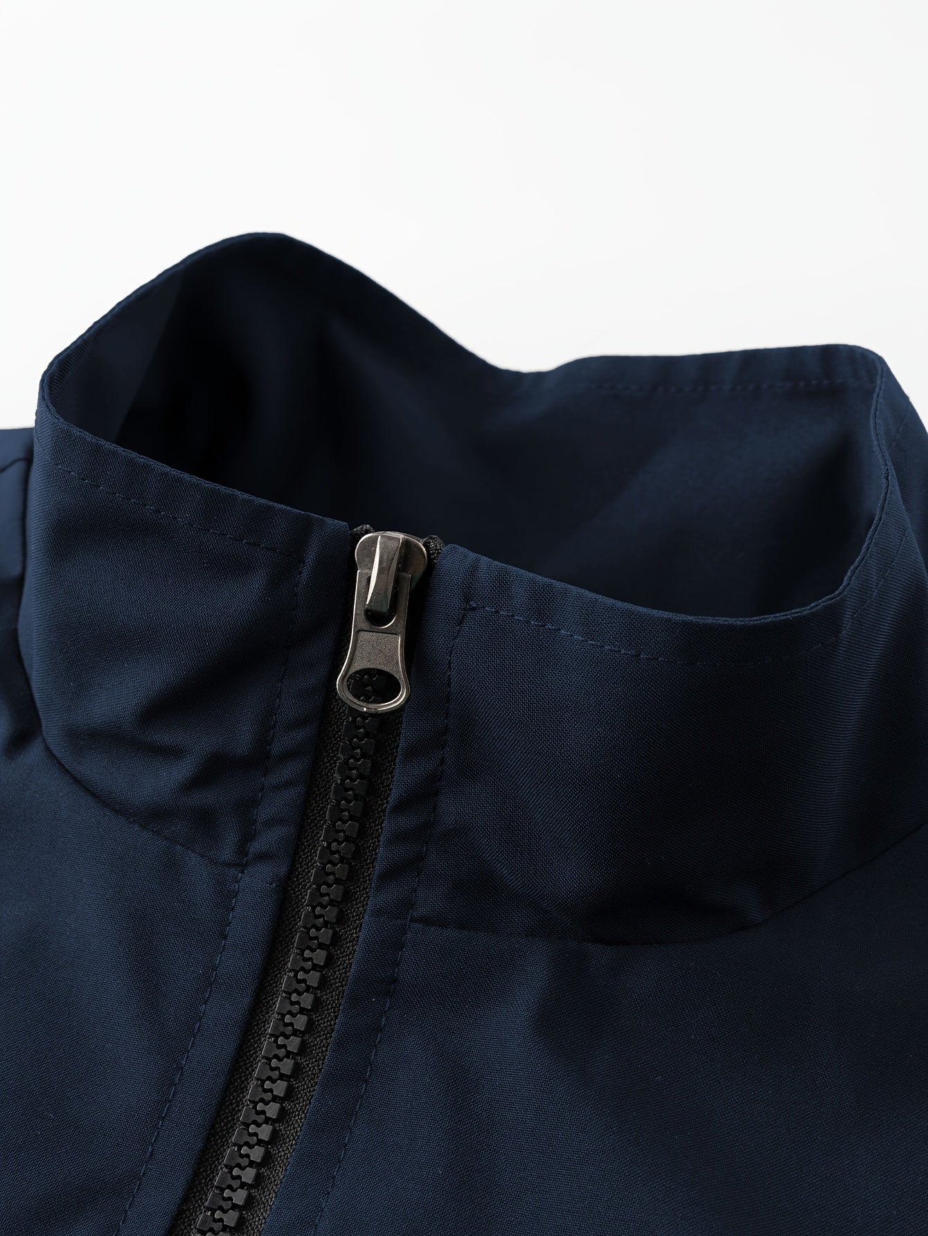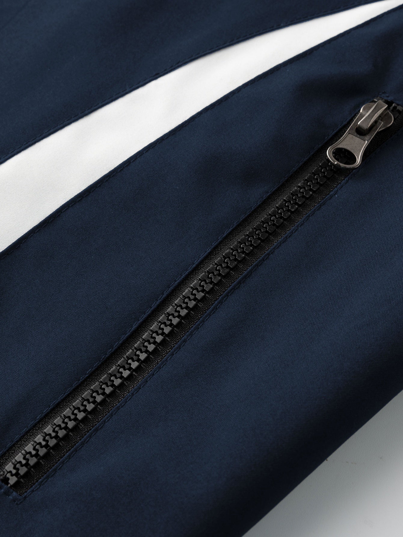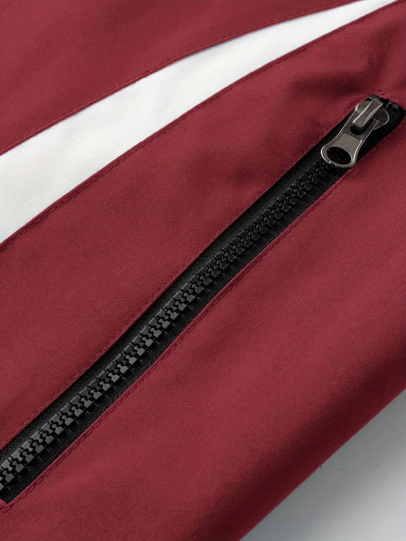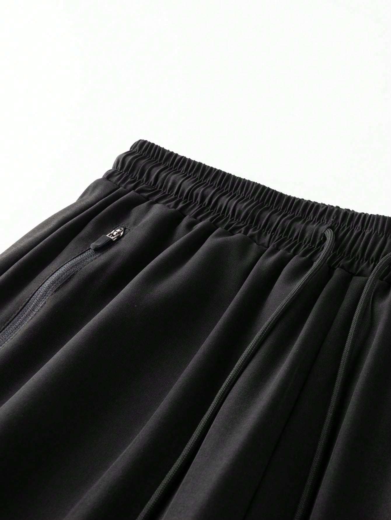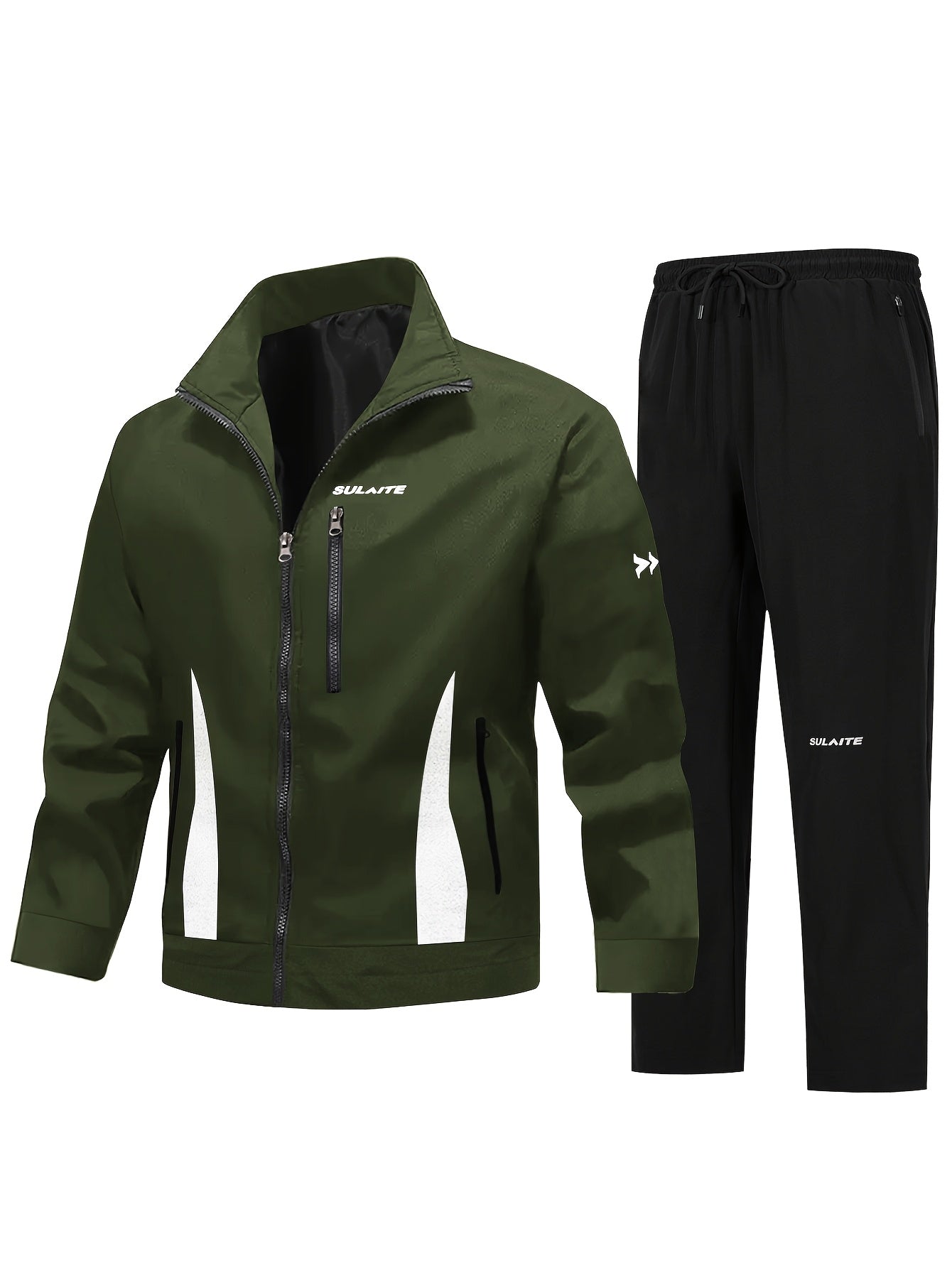 Men'S Casual Sportswear Set - Black Jacket with Zipper Pockets & White Accents, Matching Pants, Perfect for Spring & Fall, Sportswear Outfit|Zippered Jacket|Functional Pockets