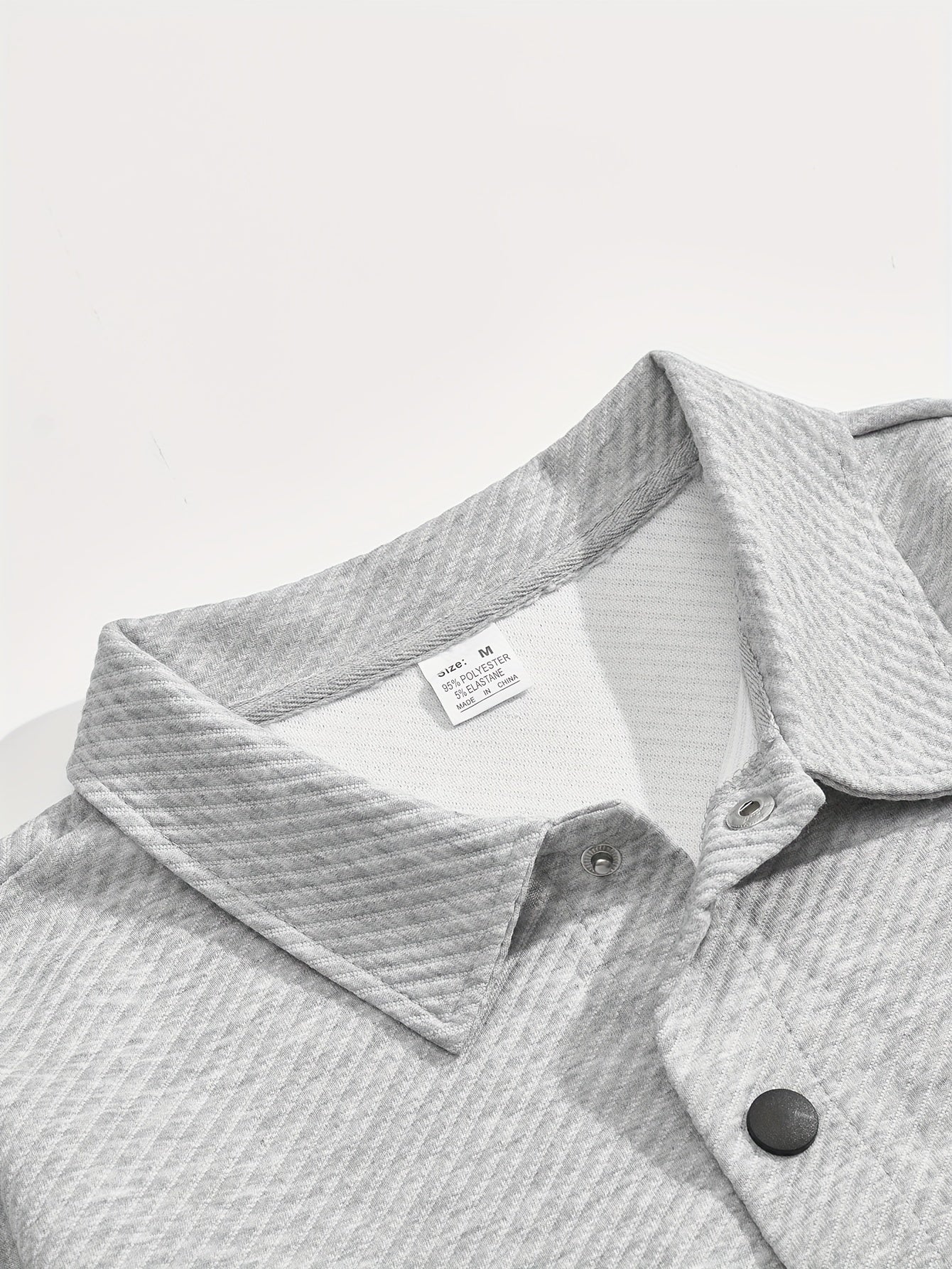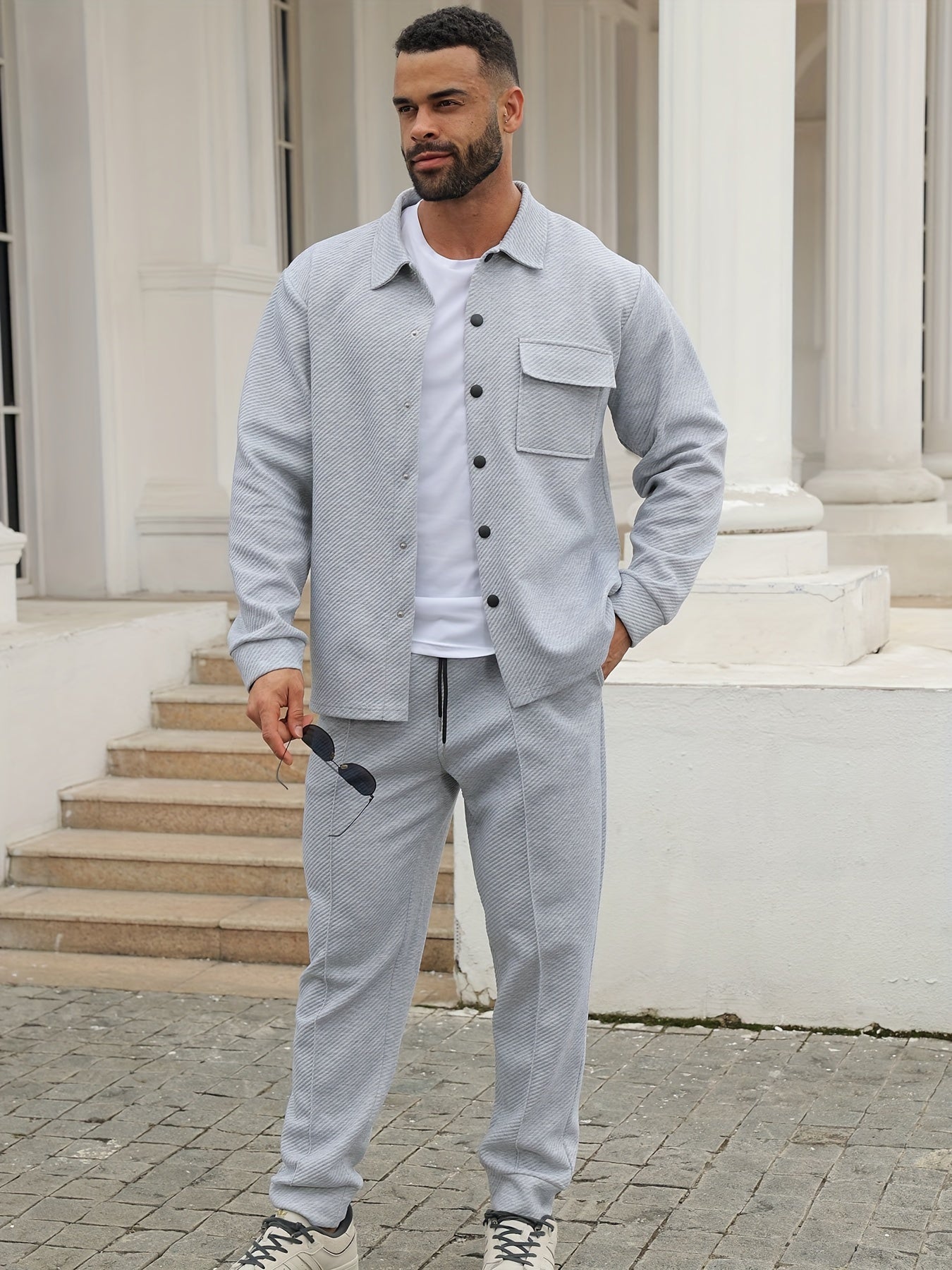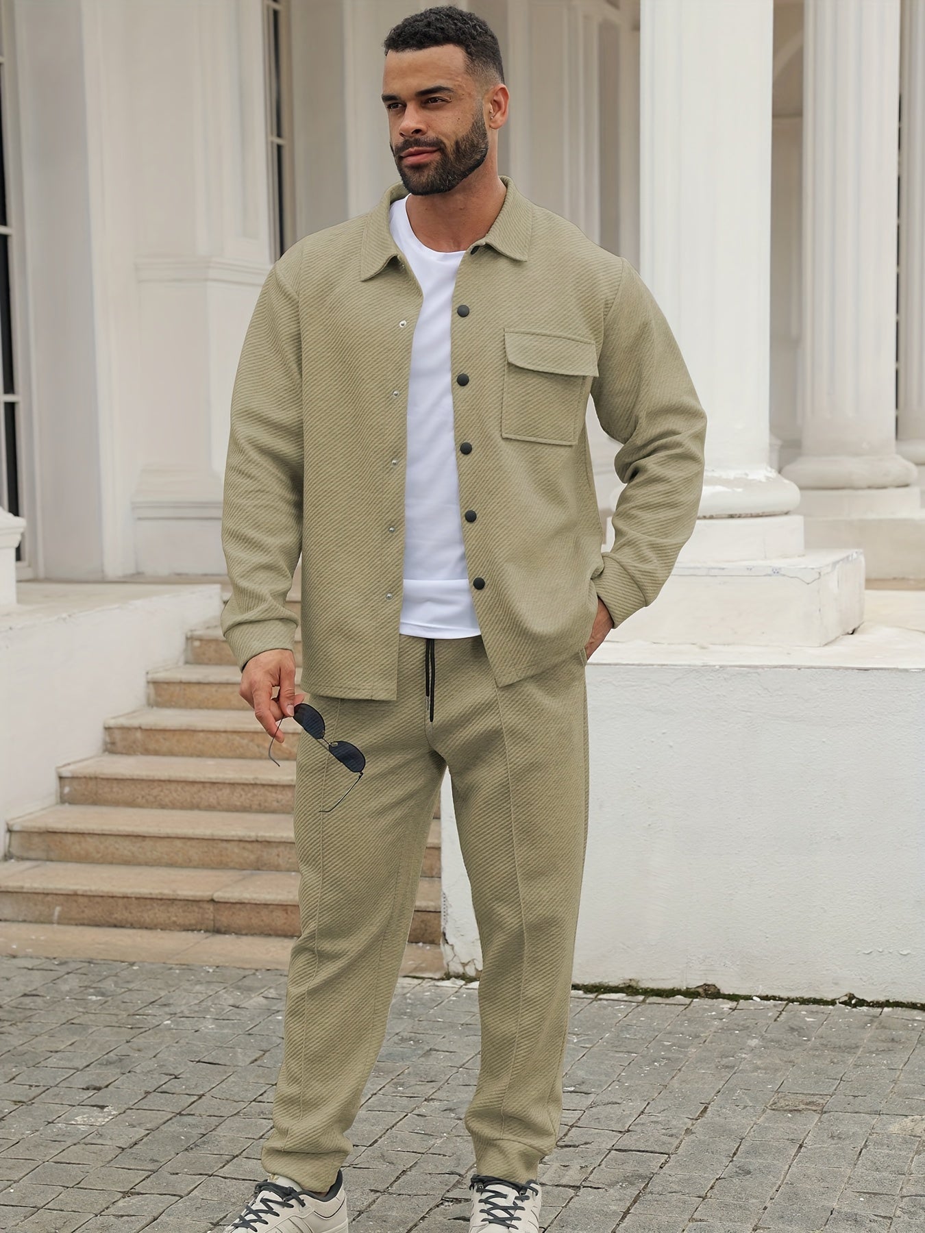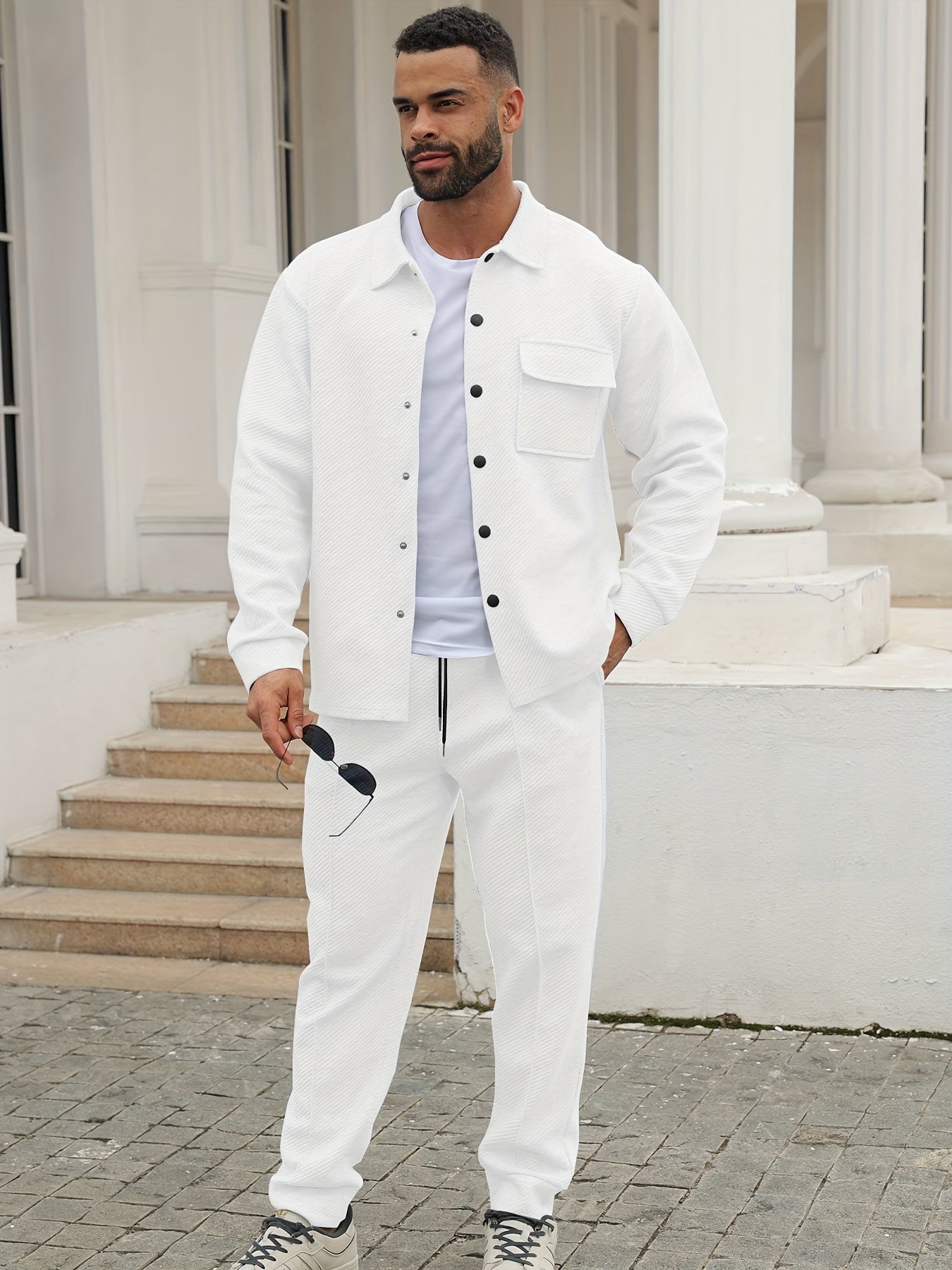 Men's Casual Sportswear Set - Long Sleeve Button-Up Shirt & Joggers, Stretch Fabric, Spring/Fall Collection