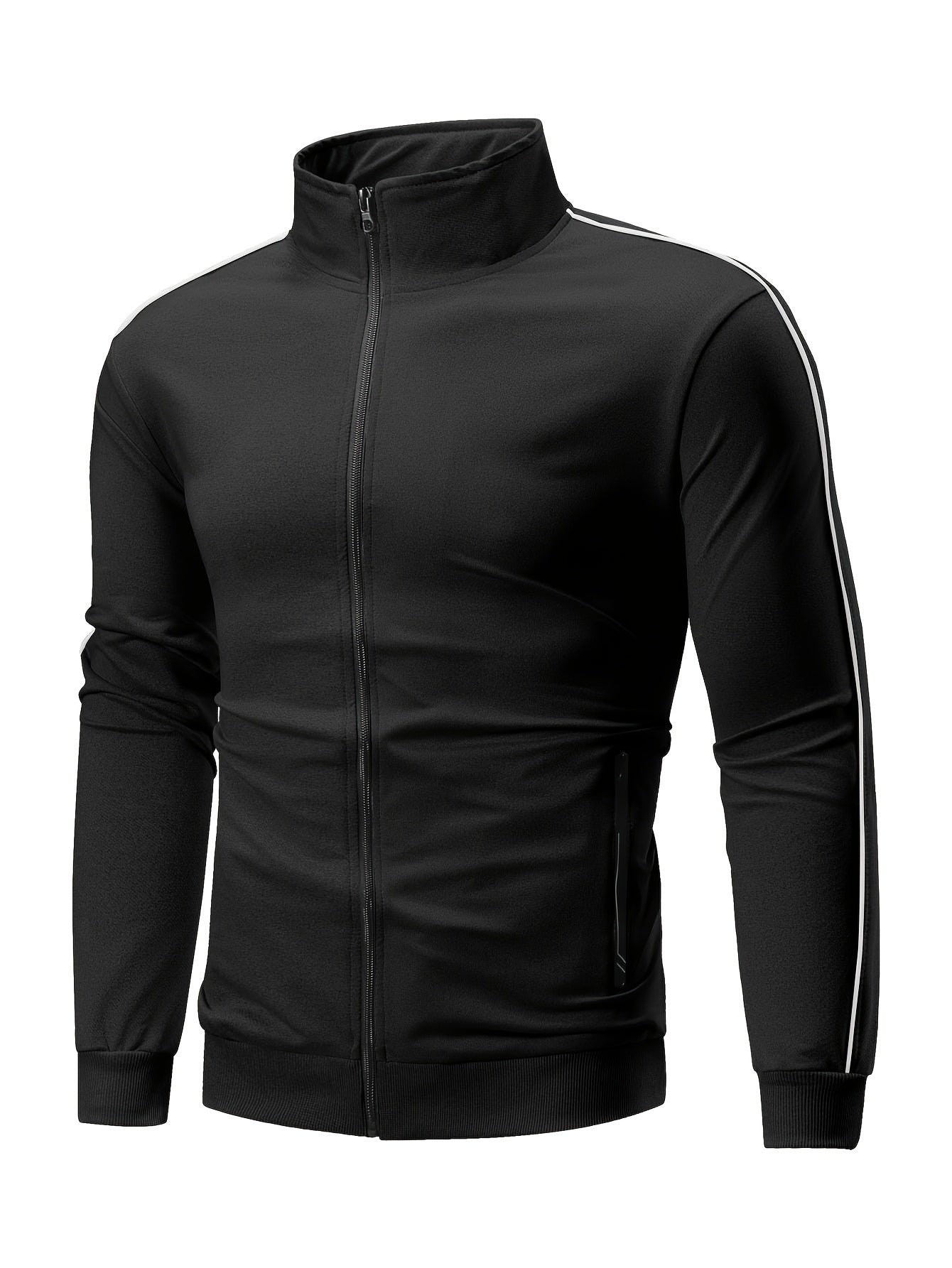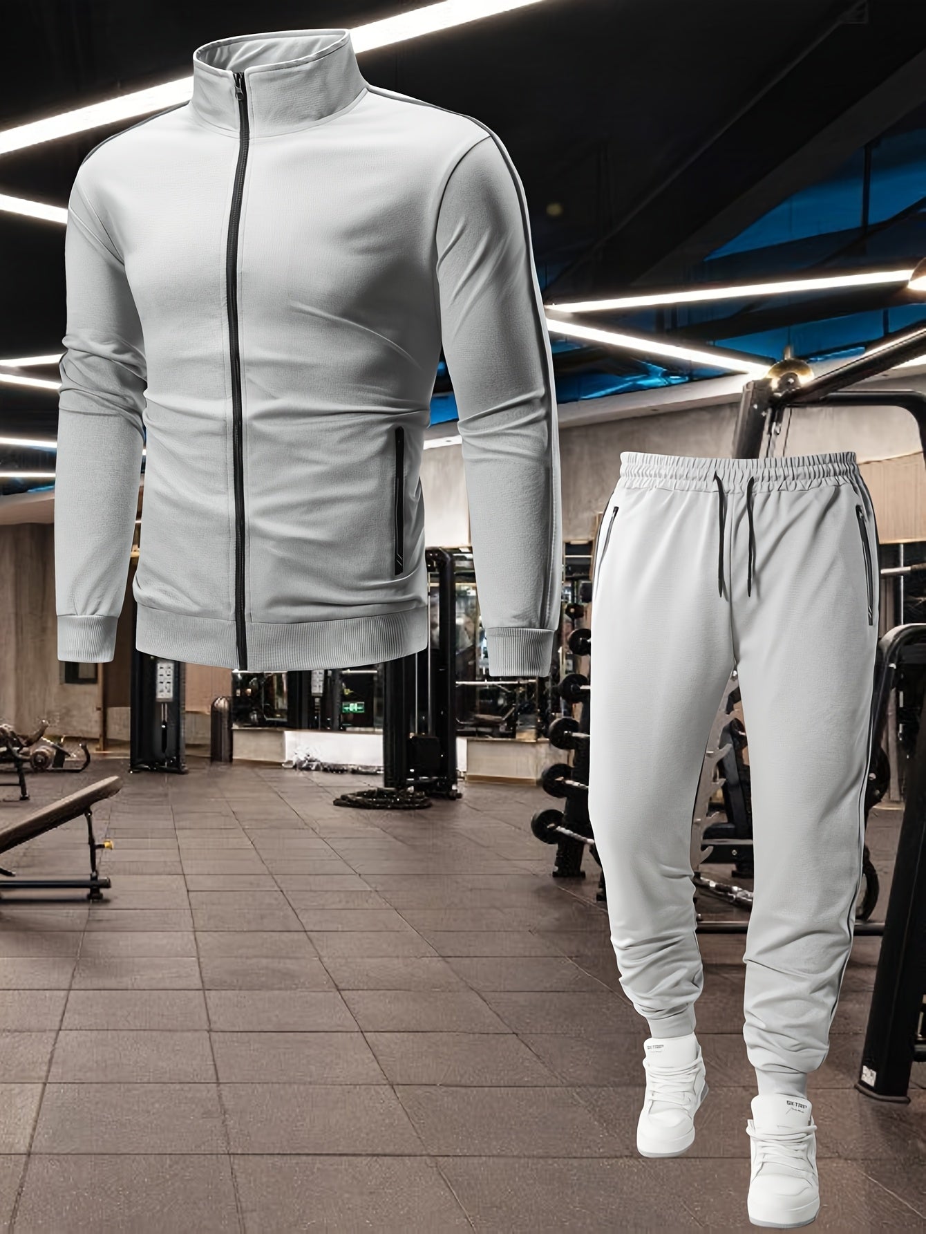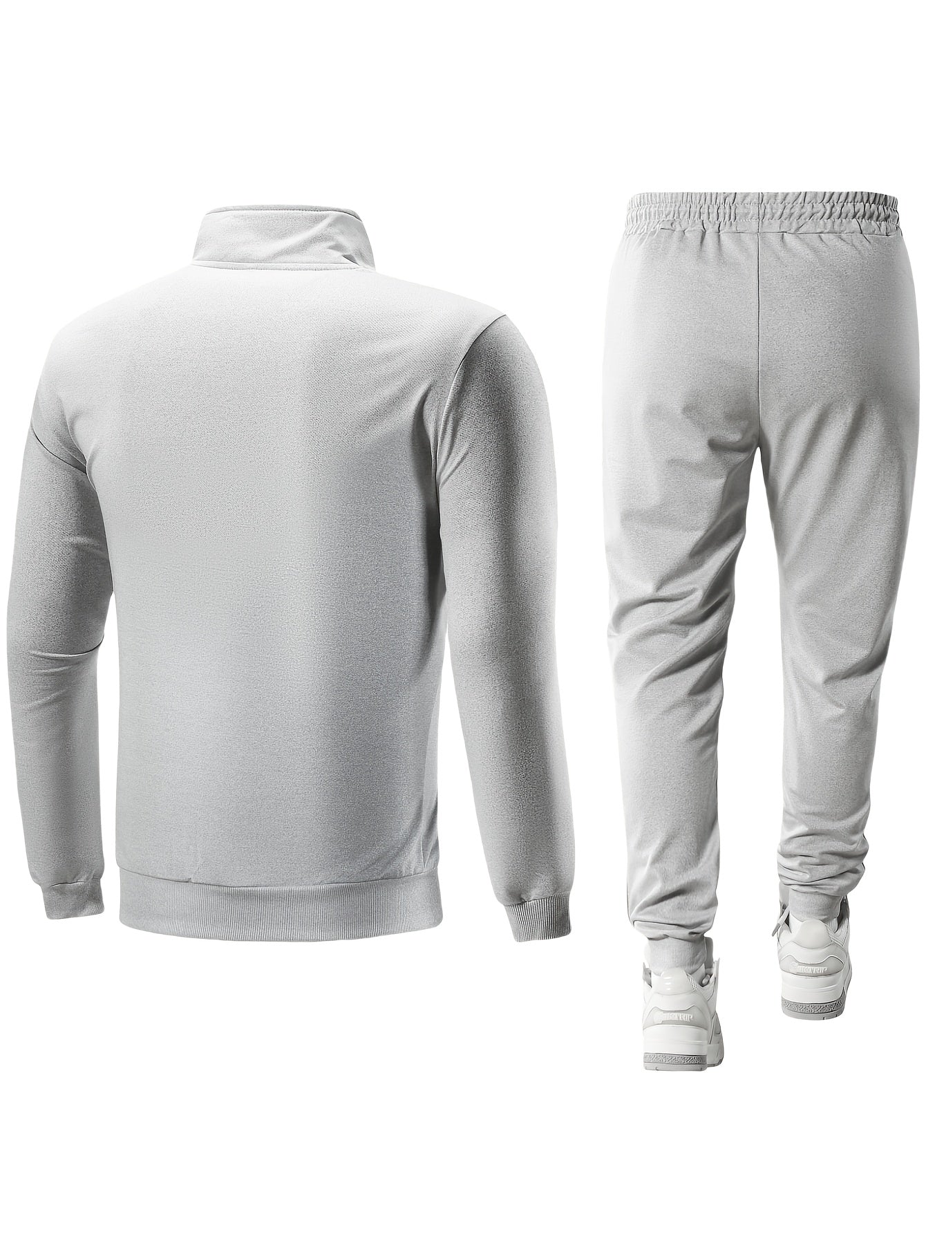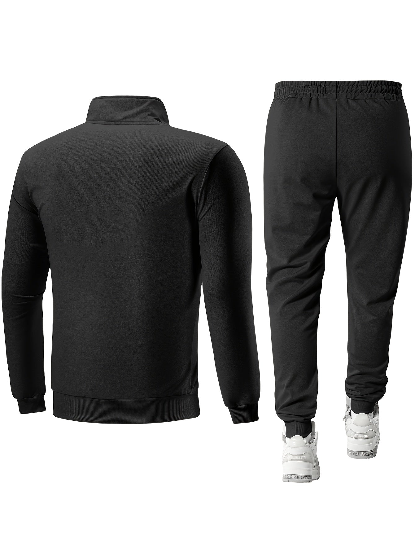 Men's Casual Sportswear Set: Spring/Autumn Stand Collar Jacket, Drawstring Elastic Waist Pants Two-Piece Set with Fashion Print, Men's Top and Bottom Outfit for Running Loungewear, Zipper Pocket Design
