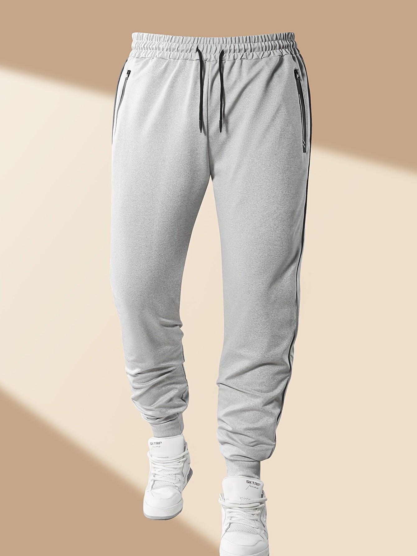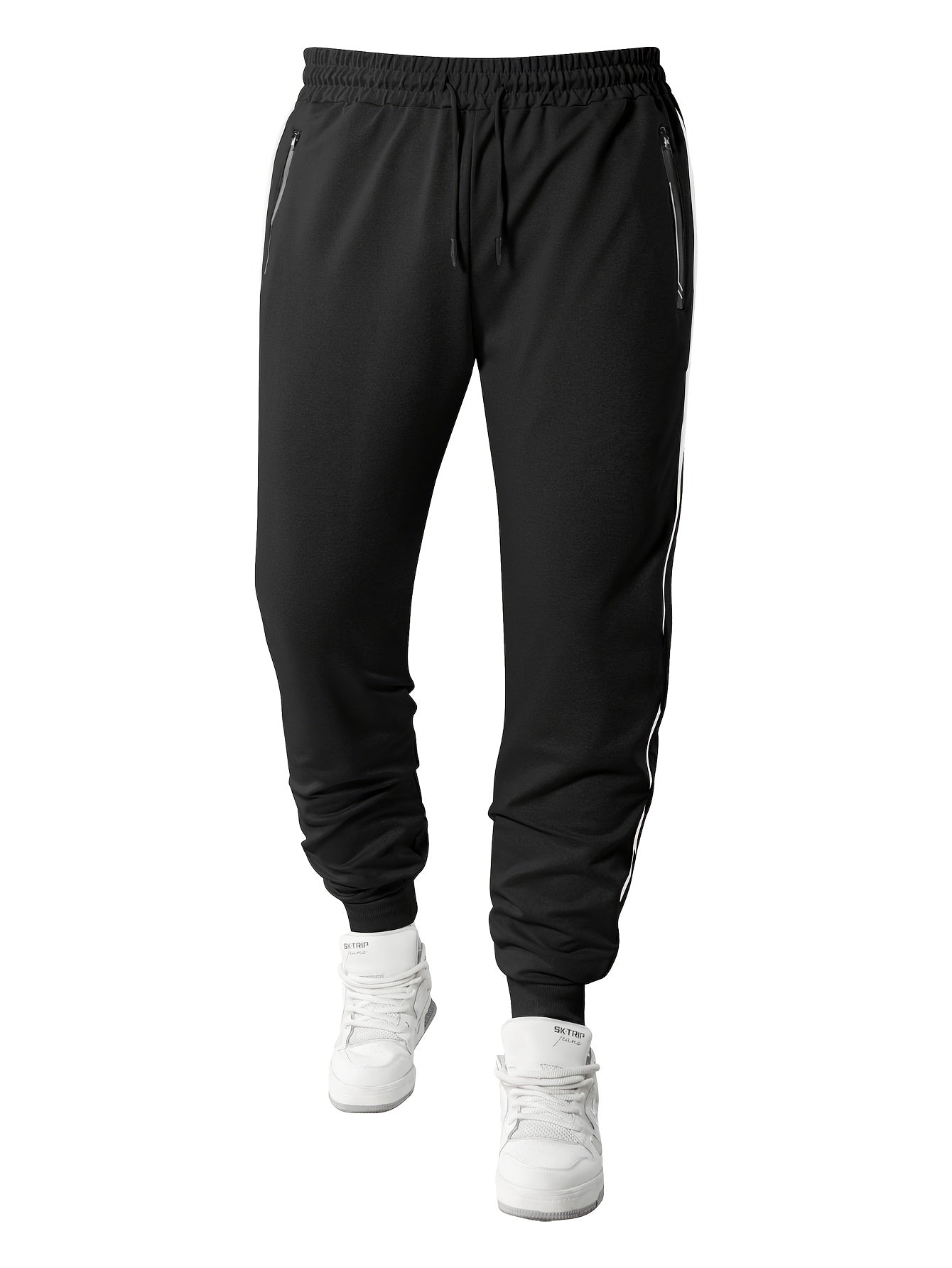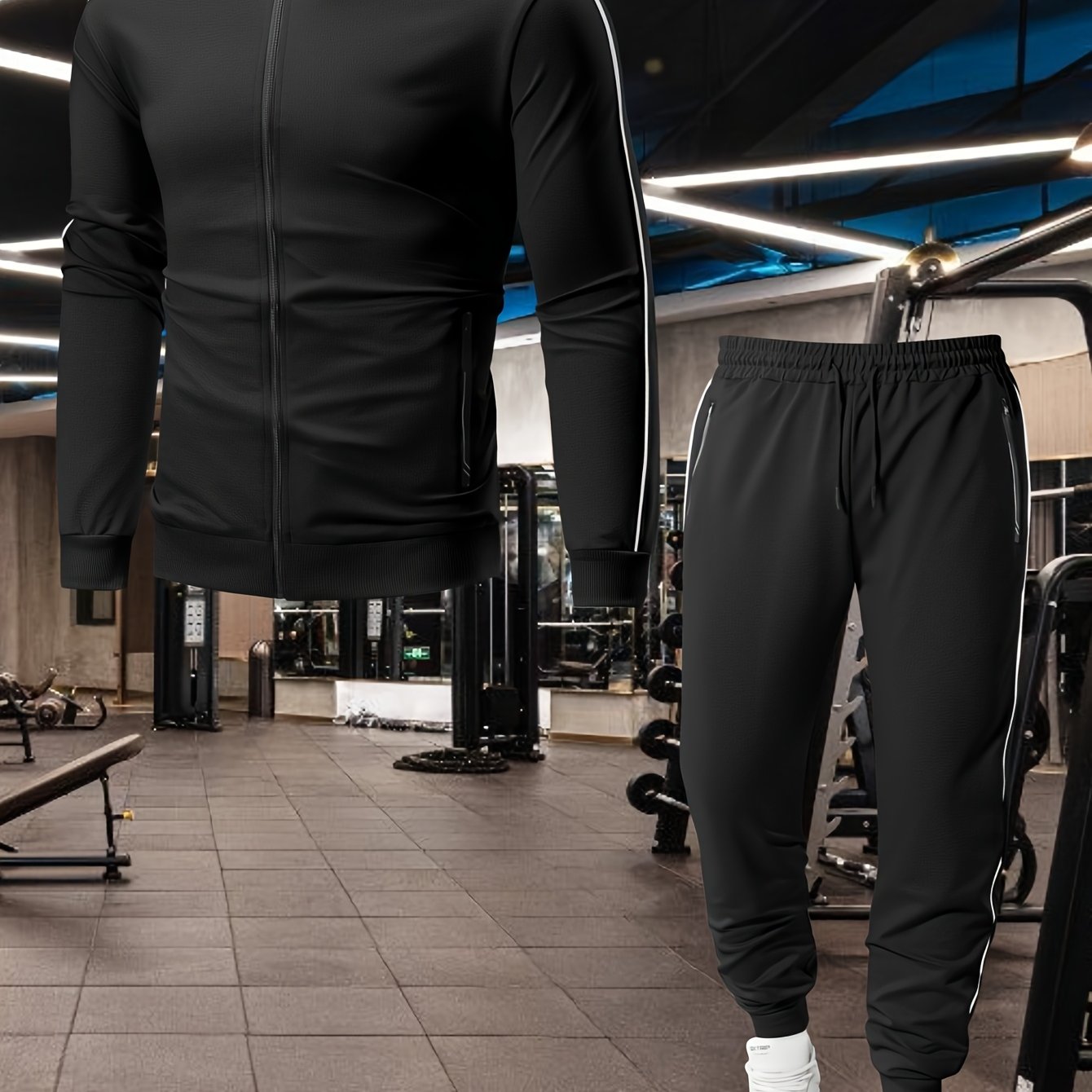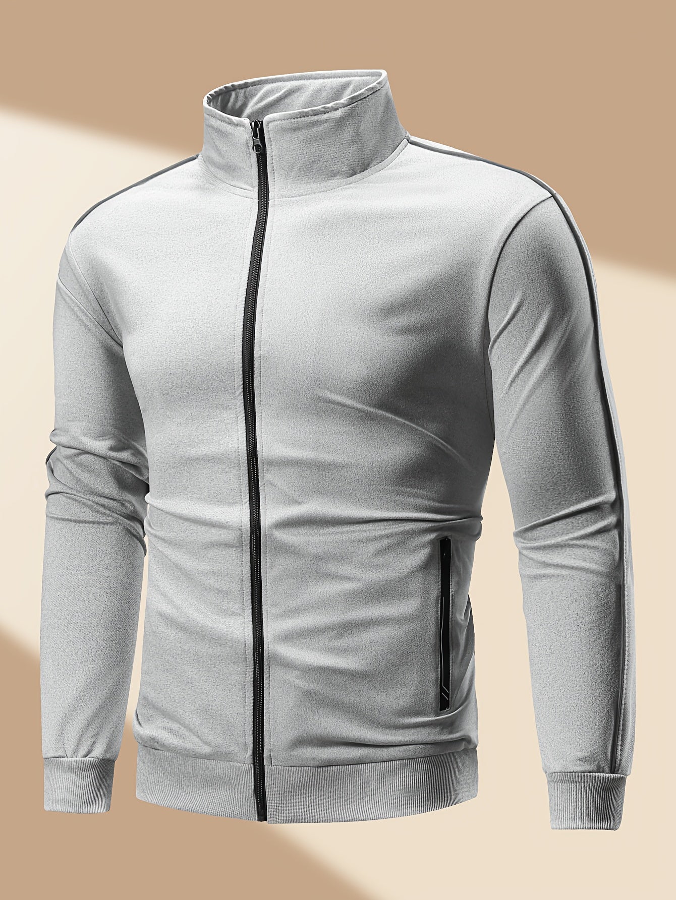 Men's Casual Sportswear Set: Spring/Autumn Stand Collar Jacket, Drawstring Elastic Waist Pants Two-Piece Set with Fashion Print, Men's Top and Bottom Outfit for Running Loungewear, Zipper Pocket Design