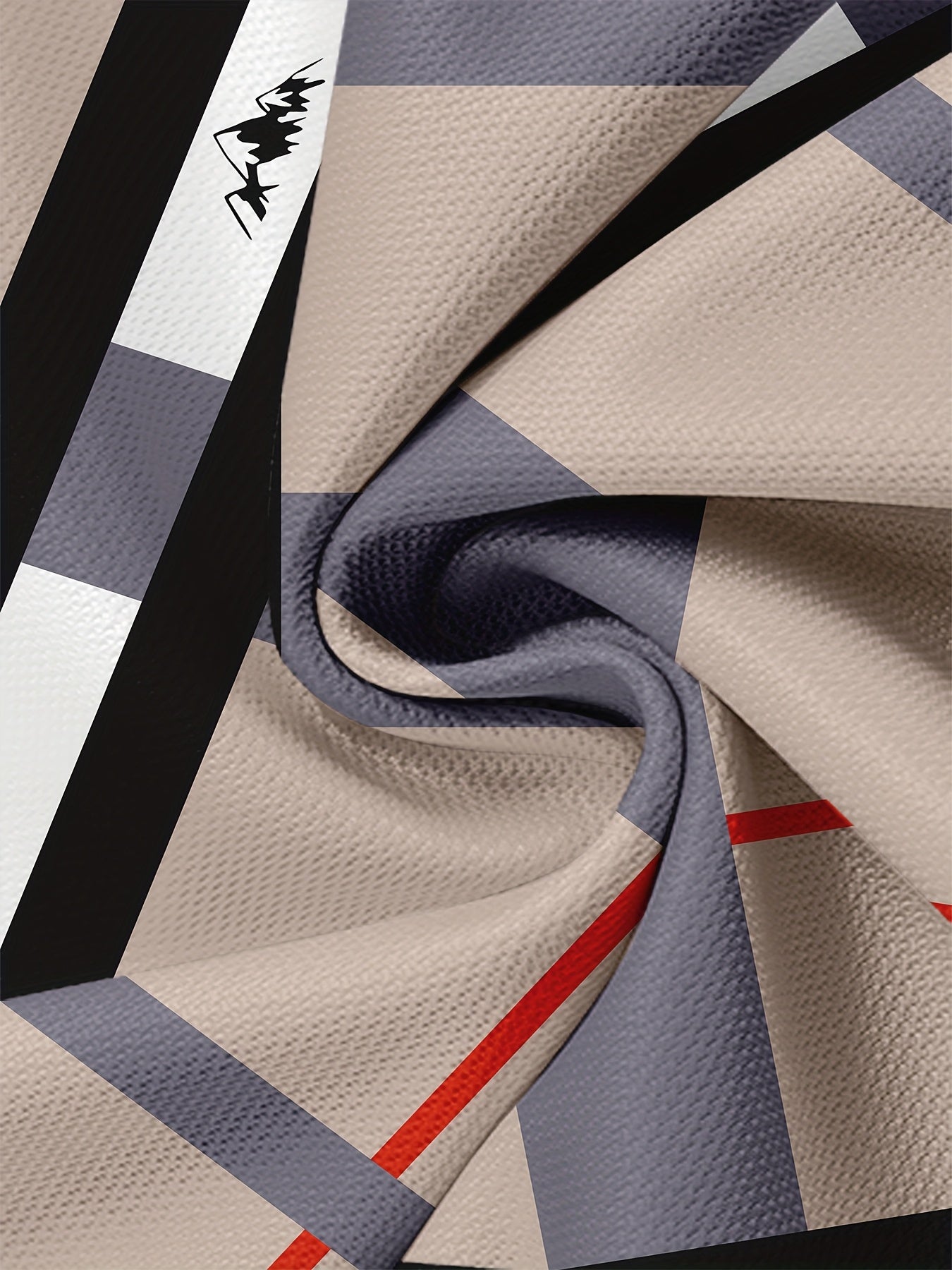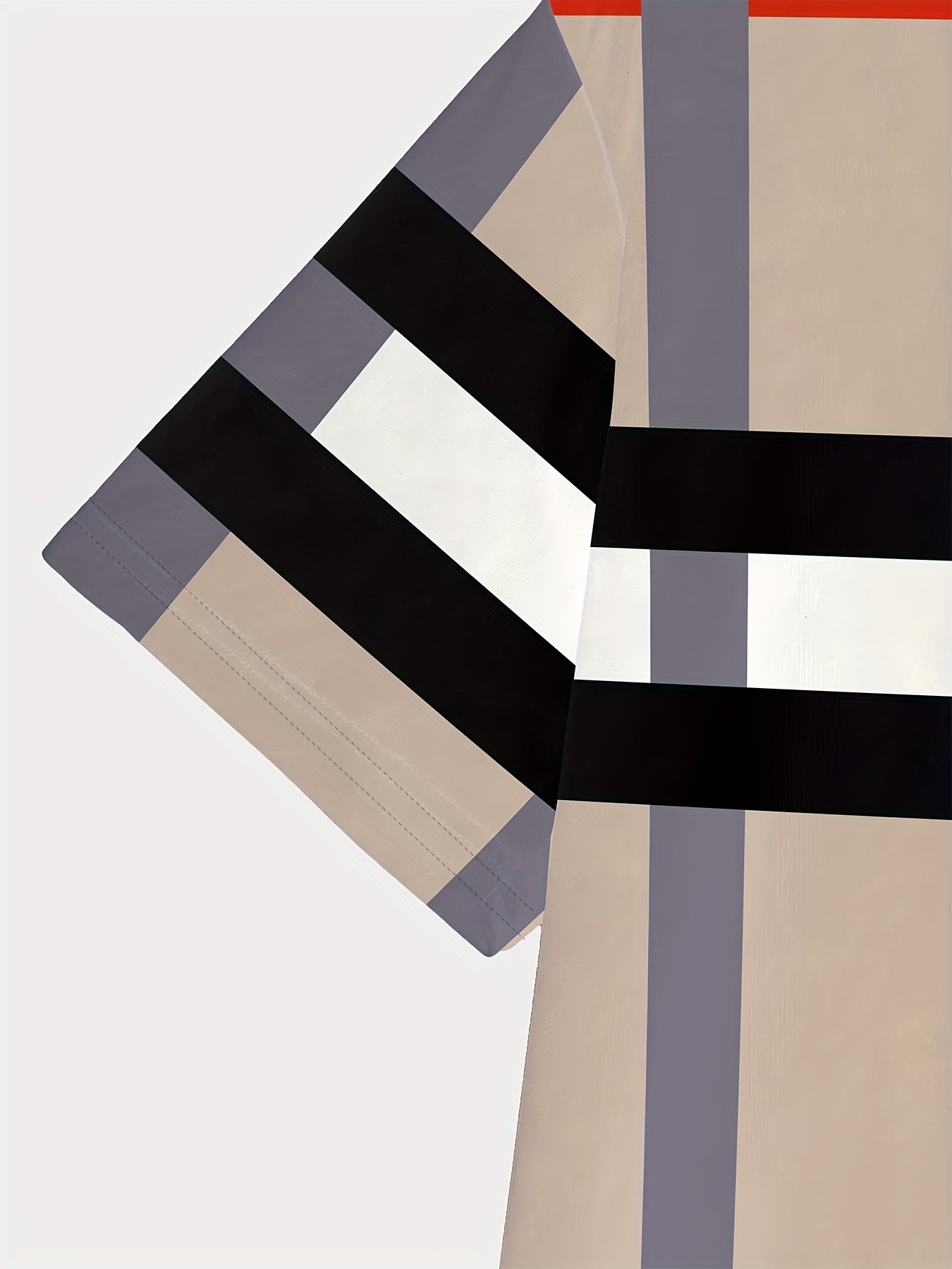 Men'S Casual Striped T-Shirt with Mountain Logo - Short Sleeve, Crew Neck, Lightweight Polyester, Summer Fashion, Casual Wear Striped Pattern Lightweight Fabric