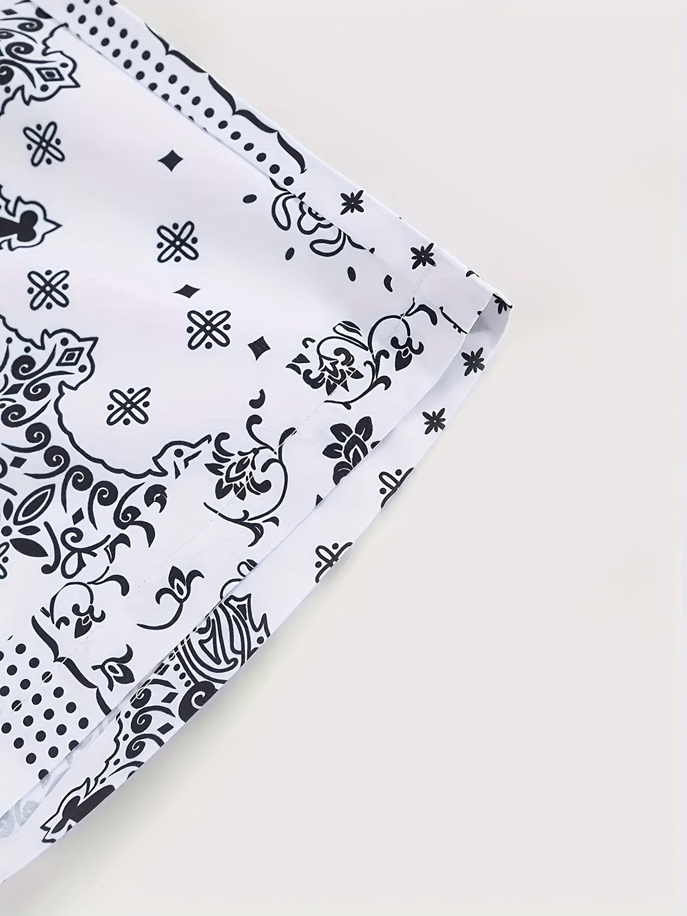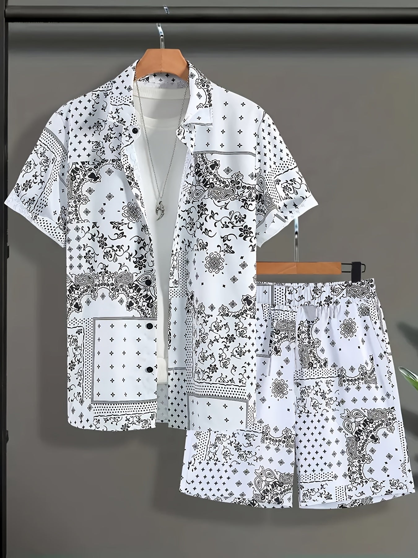 Men's Casual Suit Set with Short Sleeve Shirt and Printed Shorts